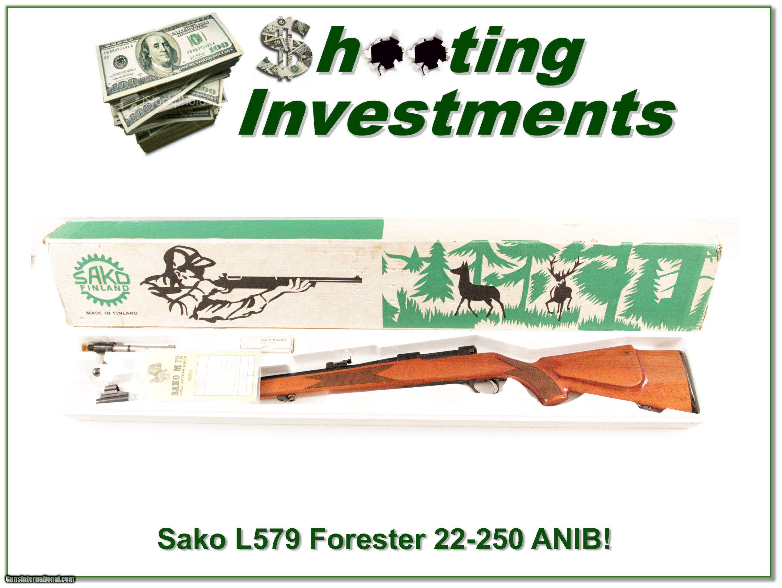 Description: This is a Sako L579 Forester 22-250. I looks to be unfired in original box with all paper and accessories including rings that are still in the box. There are a couple minor storage marks on the wood that would be easy to fix. The blue of course is perfect and new. Here a change to get a “new” 1972 made Sako in 22-250. You won’t get many chances at this! Shipping and insurance is $35 or $15 more if you want it shipped in a new Plano hard case. Please email me with any questions or larger pictures. (I now consign quality firearms only 10%! Let me know if you have any you would like to sell!) [16-0858] Payment: Payment is by Money Order, Cashiers Check or Personal Check. I can now also accept MasterCard and Visa with a 3% convenience fee. PayPal can be used for some items but never firearms. Please let us know if you would like to pay via PayPal. Shipping: The shipping charge will be listed in each description. It is $35 for most guns. Some heavy guns or those insured for over $2000 will be higher. Shipments to Alaska and Hawaii are higher because air shipment is required. Most firearms are shipped within 5 days of receipt of payment. We prefer shipping at the beginning of the week to avoid firearms in transit over weekends. We package all shipments carefully and insure them for the full purchase price, rounded up to the next $100. In the unlikely event that damage occurs, it is important that you save all packaging material for the claims process. Optics are shipped Priority Mail and most other non-firearm shipments are shipped First Class. Returns: Our return policy is simple. If for any reason you are not pleased with your purchase, you may return your item for a refund. The only exception is ammunition, it cannot be returned. It is important to us that you are happy. Guns cannot be fired or dissembled before returning them and must be returned in the same condition as received. Notification of a return must occur with-in 3 days of receipt at your dealer. Shipping, convenience and dealer fees are not refundable and are the responsibility of the buyer. Lay-a-way: If needed, we offer a 60 day lay-a-way option on most firearms. It is 1/3 now, 1/3 in 30 days and 1/3 in 60 days. Lay-a-way firearm sales are final. Consigning your firearms with Shooting Investments: We will help you get top dollar for your firearms. While most local guns shops charge 20% or more, our fee is only 10% with a minimum of $50. At your local gun shop it might take months to sell. Selling on-line provides instant access to thousands of interested buyers. You won’t find any other on-line dealer willing to sell your firearms for only 10% or listing every gun on 4 separate s. Selling through an House typically costs the seller 15% and the buyer an addition 15% (so 30%) and you have to wait several months to sell and longer to receive funds. If properly priced, we will sell your firearms in a week or two. Send us an email or give us a call and we’ll explain how easy it is for you to get top dollar. Trading: We collect guns and usually just trade for guns we want to add to our collections. We often sell guns for others wanting to purchase one of ours. We find this the most fair to both of us. Our Commission is only 10% and we hold the gun you want until yours sells. Please contact us if you want to sell one of yours to buy one of ours. Help for California Buyers: We are happy to ship to California. It is the buyer’s responsibility to make sure any item you buy is legal in your state. We are also happy to help with your purchase of a firearm from someone other than us. If you see a gun you would like to buy but the seller can’t or won’t ship to California we can help. You buy the gun and have it shipped to us. We’ll then ship it to your California dealer. The cost for this service is only $30 + shipping. Let me know if we can help! SOLD |