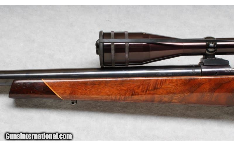 Description: Excellent condition, light wear, few small scratches and nicks. Beautifully crafted bolt action rifle with 24" bull barrel, slick action and crisp trigger. Premium wood, smooth forend with contrasting tip, right hand cheek rest and Fajen butt plate. A Burris 12x scope is installed. .243 Winchester SOLD Chambers: Bolt action Metal Condition: Excellent Wood Condition: Excellent Bore Condition: Bright Barrels: 24' Triggers: Factory Stock Dimensions: 13 1/2" LOP Fore End: Smooth with contrasting tip Butt Pad: Fajen butt plate Sights: Burris 12x scope Item Location: La Vista, NE |