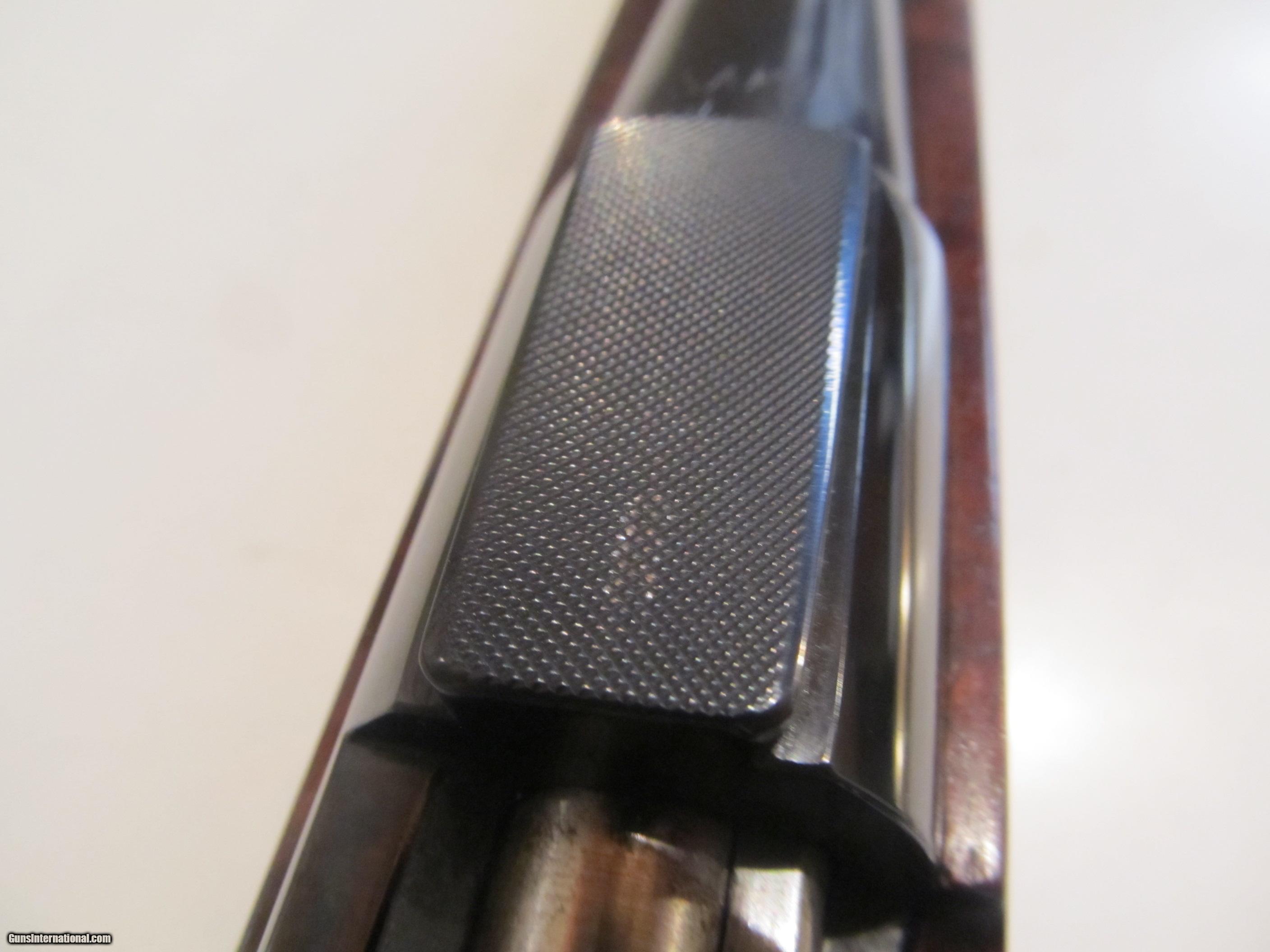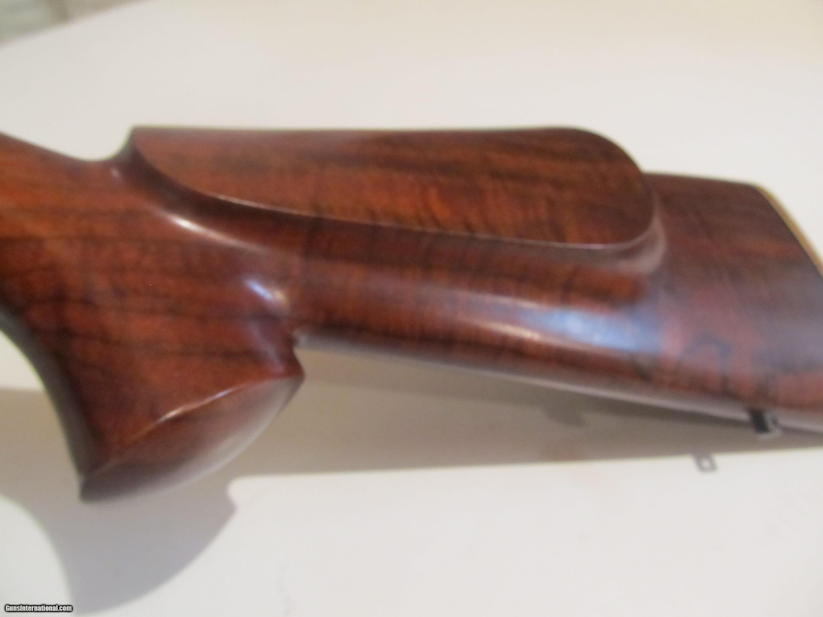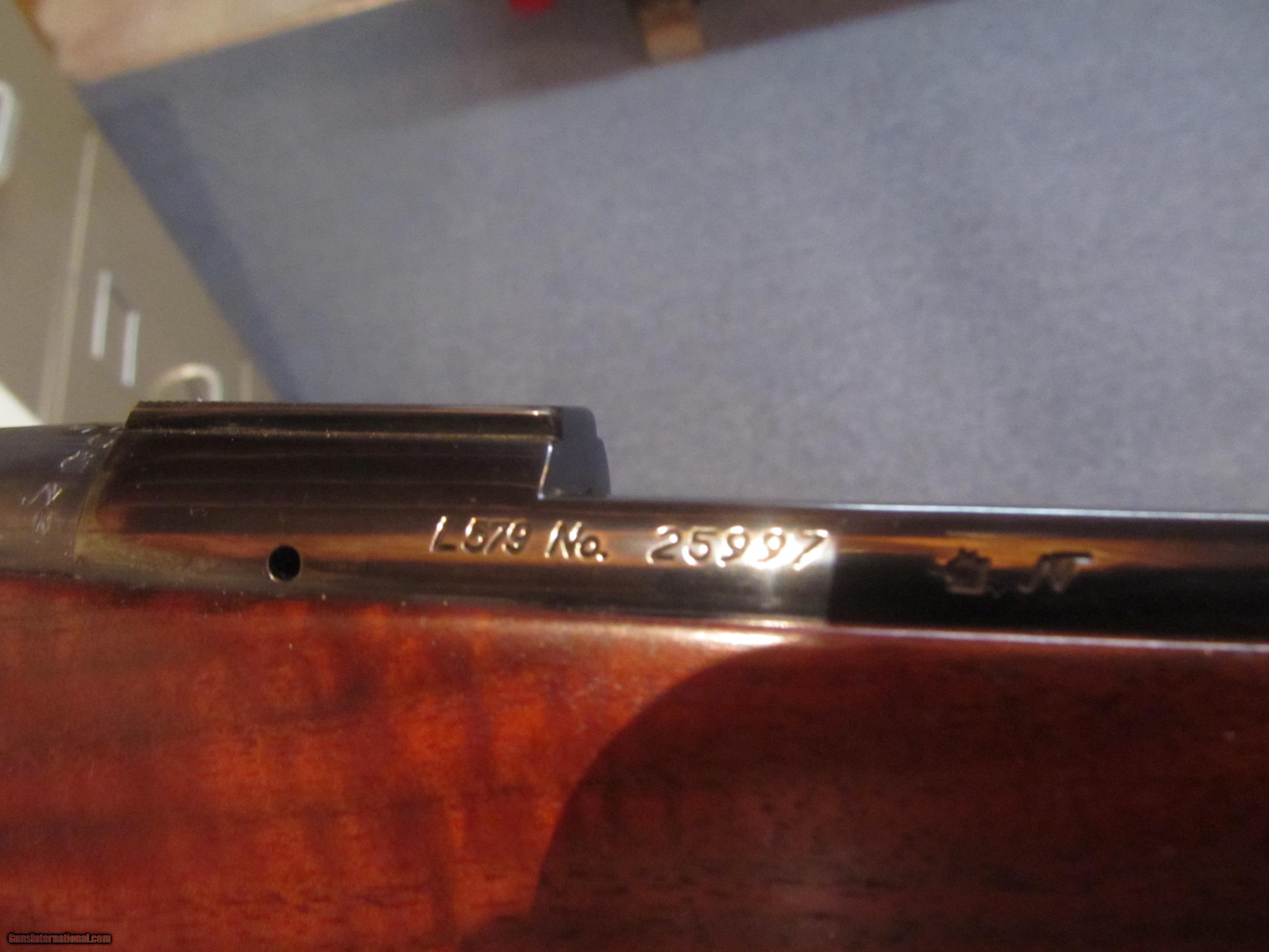 Description: Sako L579 Forester .243 Win as new Custom Pachmayr stock with very nice grain. The barreled action was bought by a Vietnam soldier in late 60's and sent it to Pachmayr to be stocked. He fired it one time (no sights) said he wanted to see if it would shoot and put it in closet. I traded for it 30 plus years ago and it has been in my gun room since unfired. Still has factory grease on bolt face. Bluing is 99.9% with a small mark on top of front scope block. See pic. Stock has a couple on very minor dings while stored. The barrel is marked Bofors steel and made in Finland. Pre 1972 model serial # 25997. Beautiful gun. Some years ago I bought a set of Redfied bases which are still new in the box for $20.00 which I would sell with the gun for $20.00. Never put them on the gun. $999.99 lowered to $875.00 Shipping $30.00 *Picture showing recoil pad is not damage just a shadow SOLD Manufacturer: Sako Model: L579 Serial Number: 25997 Caliber Info: .243 Condition: as new Barrels: 23 LOP: 13 ¾ |