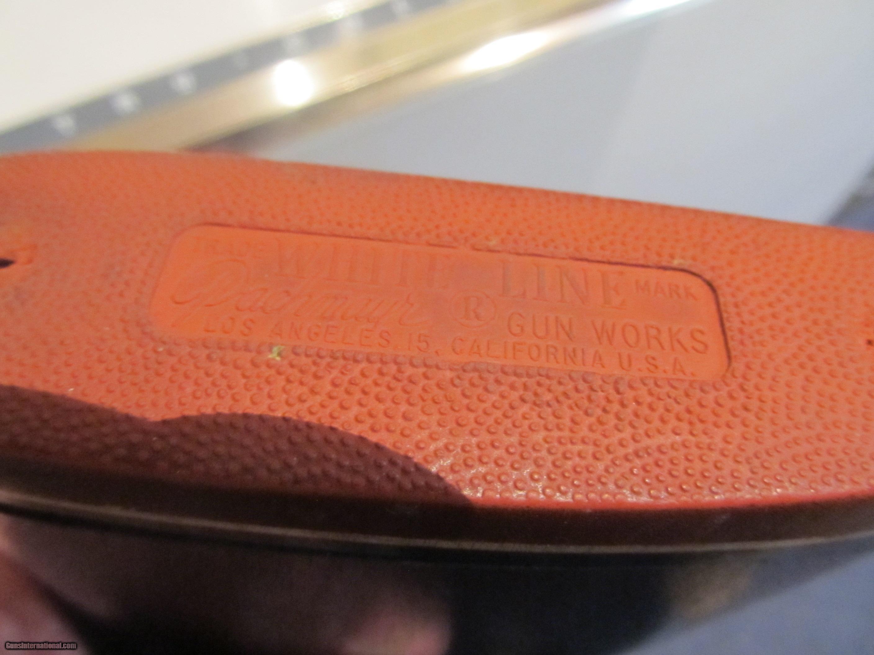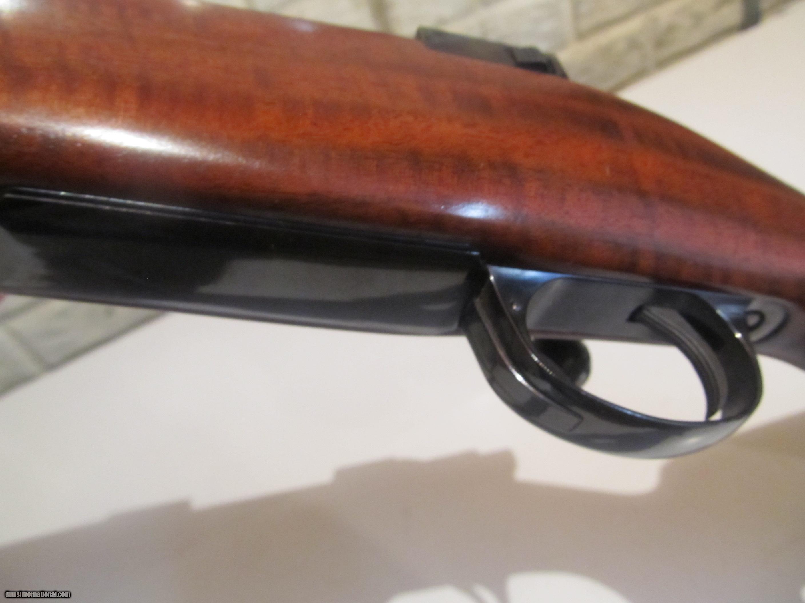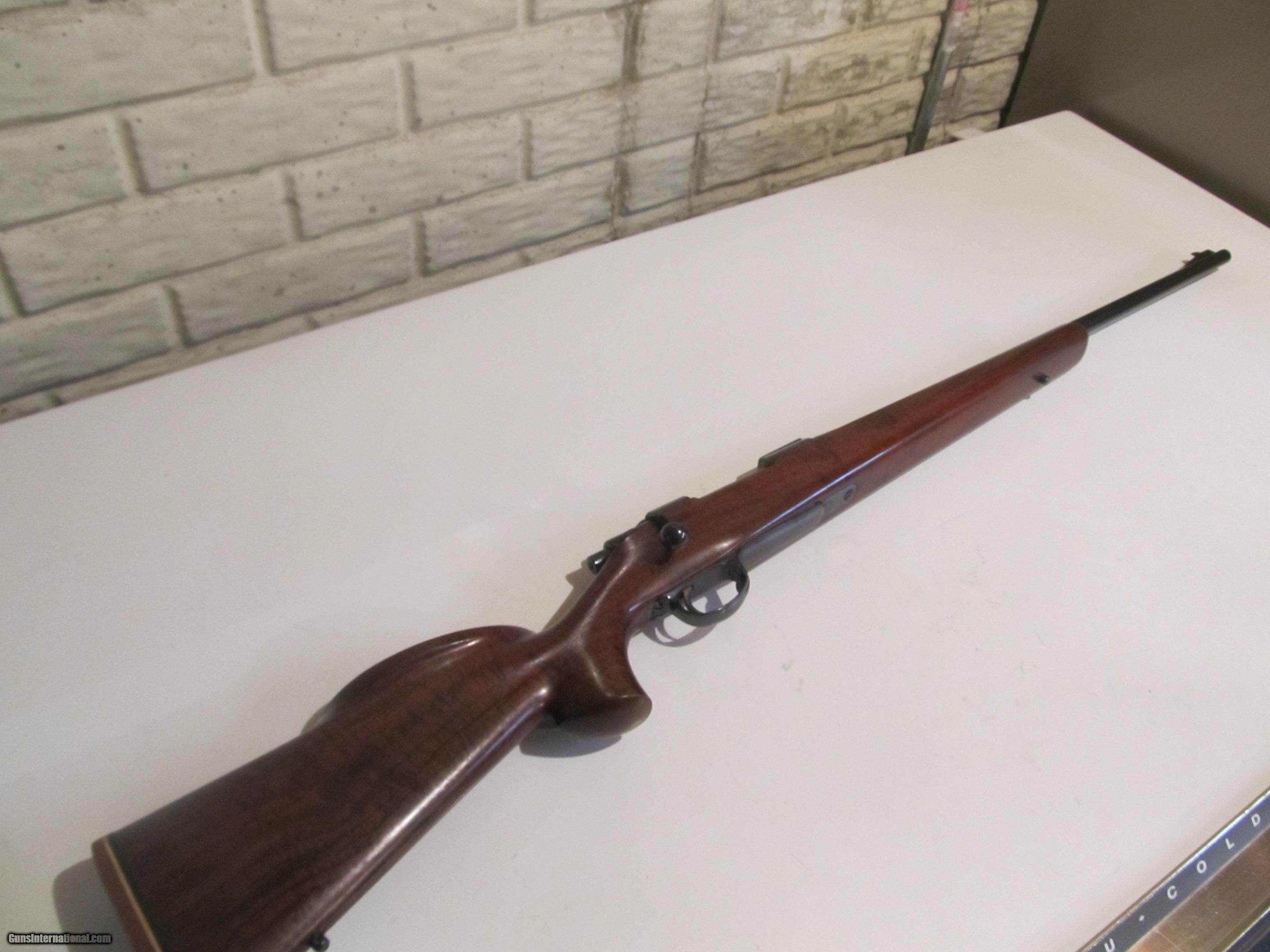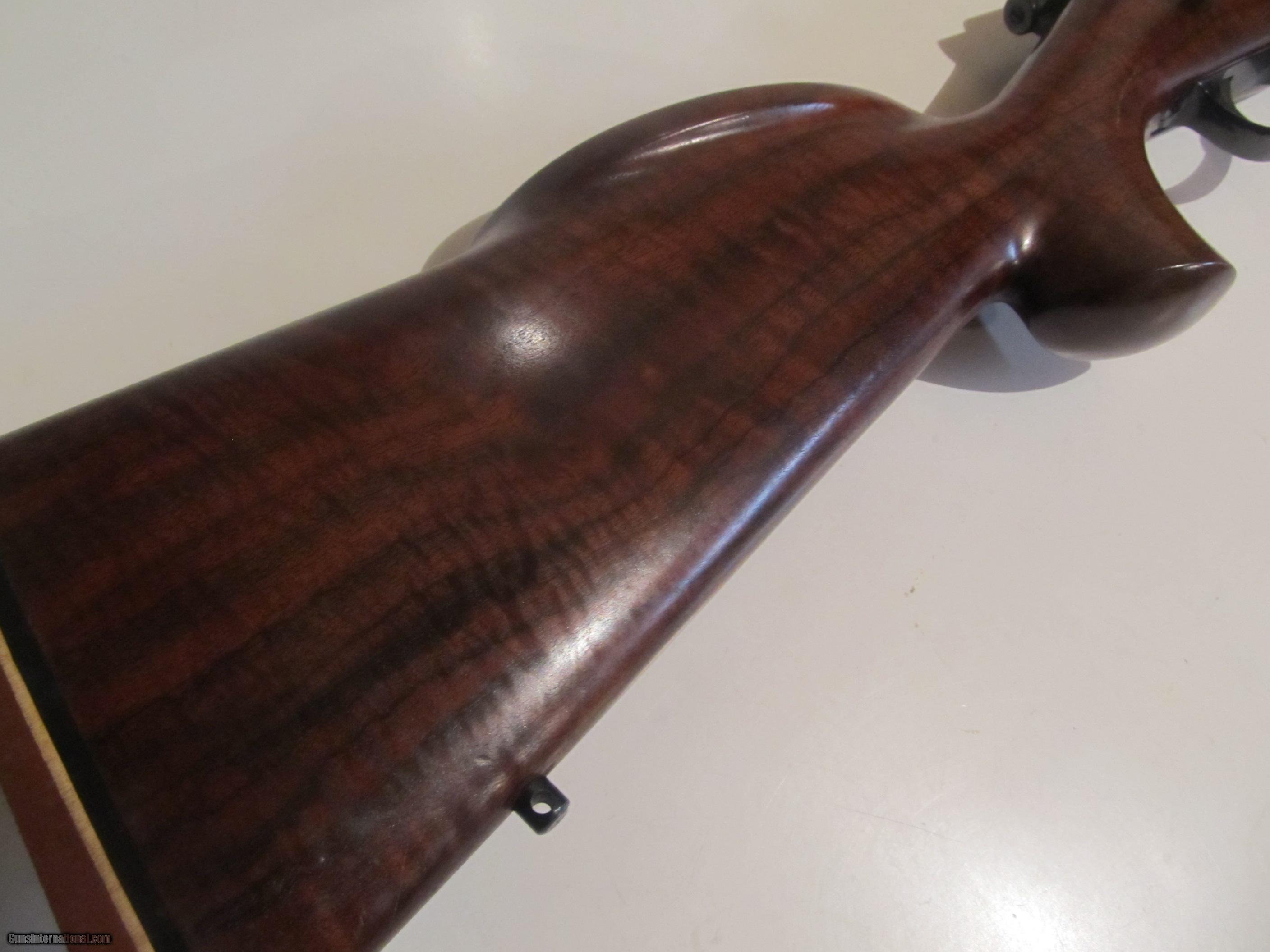 Description: Sako L579 Forester .243 Win as new Custom Pachmayr stock with very nice grain. The barreled action was bought by a Vietnam soldier in late 60's and sent it to Pachmayr to be stocked. He fired it one time (no sights) said he wanted to see if it would shoot and put it in closet. I traded for it 30 plus years ago and it has been in my gun room since unfired. Still has factory grease on bolt face. Bluing is 99.9% with a small mark on top of front scope block. See pic. Stock has a couple on very minor dings while stored. The barrel is marked Bofors steel and made in Finland. Pre 1972 model serial # 25997. Beautiful gun. Some years ago I bought a set of Redfied bases which are still new in the box for $20.00 which I would sell with the gun for $20.00. Never put them on the gun. $999.99 lowered to $875.00 Shipping $30.00 *Picture showing recoil pad is not damage just a shadow SOLD Manufacturer: Sako Model: L579 Serial Number: 25997 Caliber Info: .243 Condition: as new Barrels: 23 LOP: 13 ¾ |