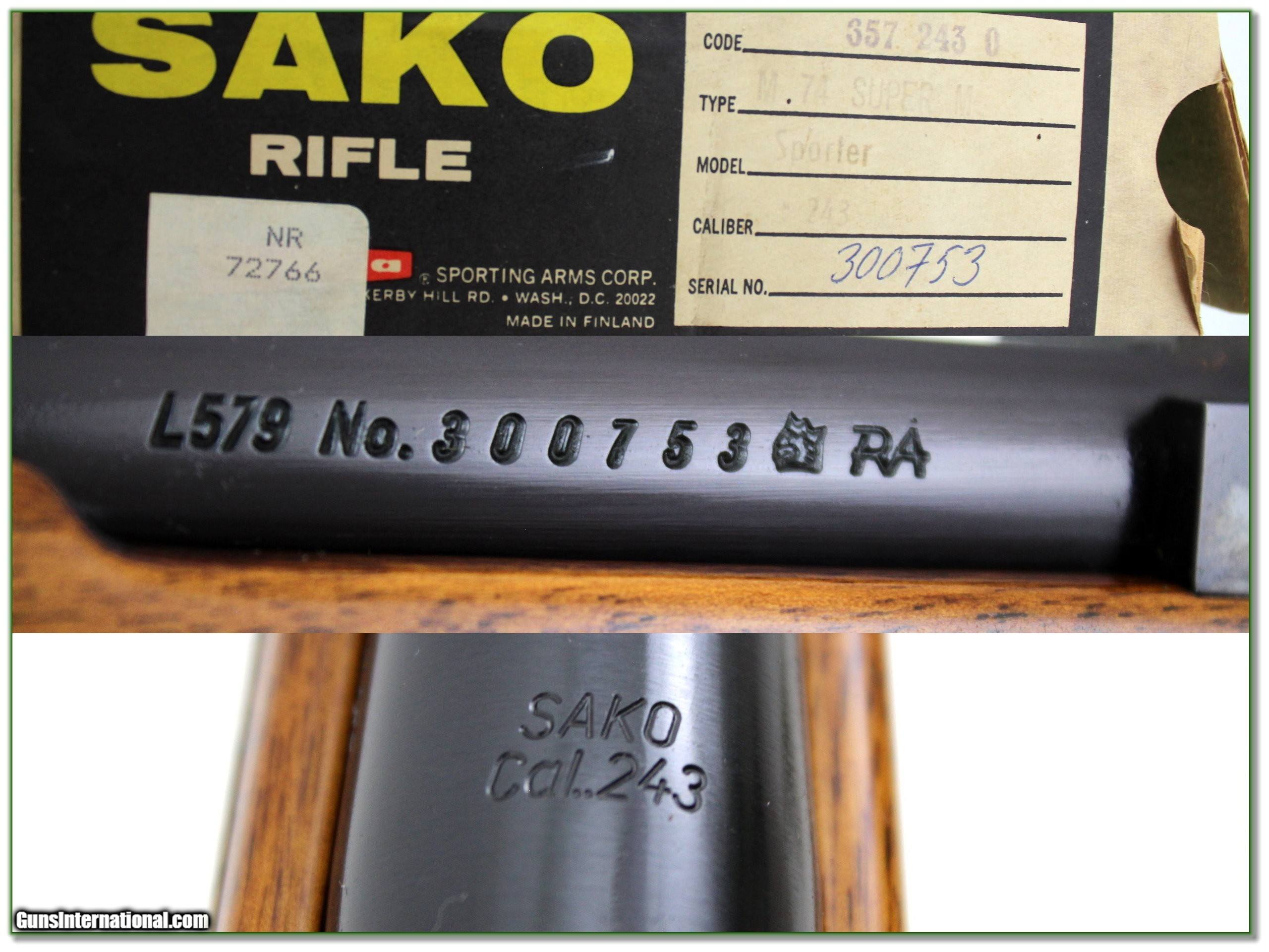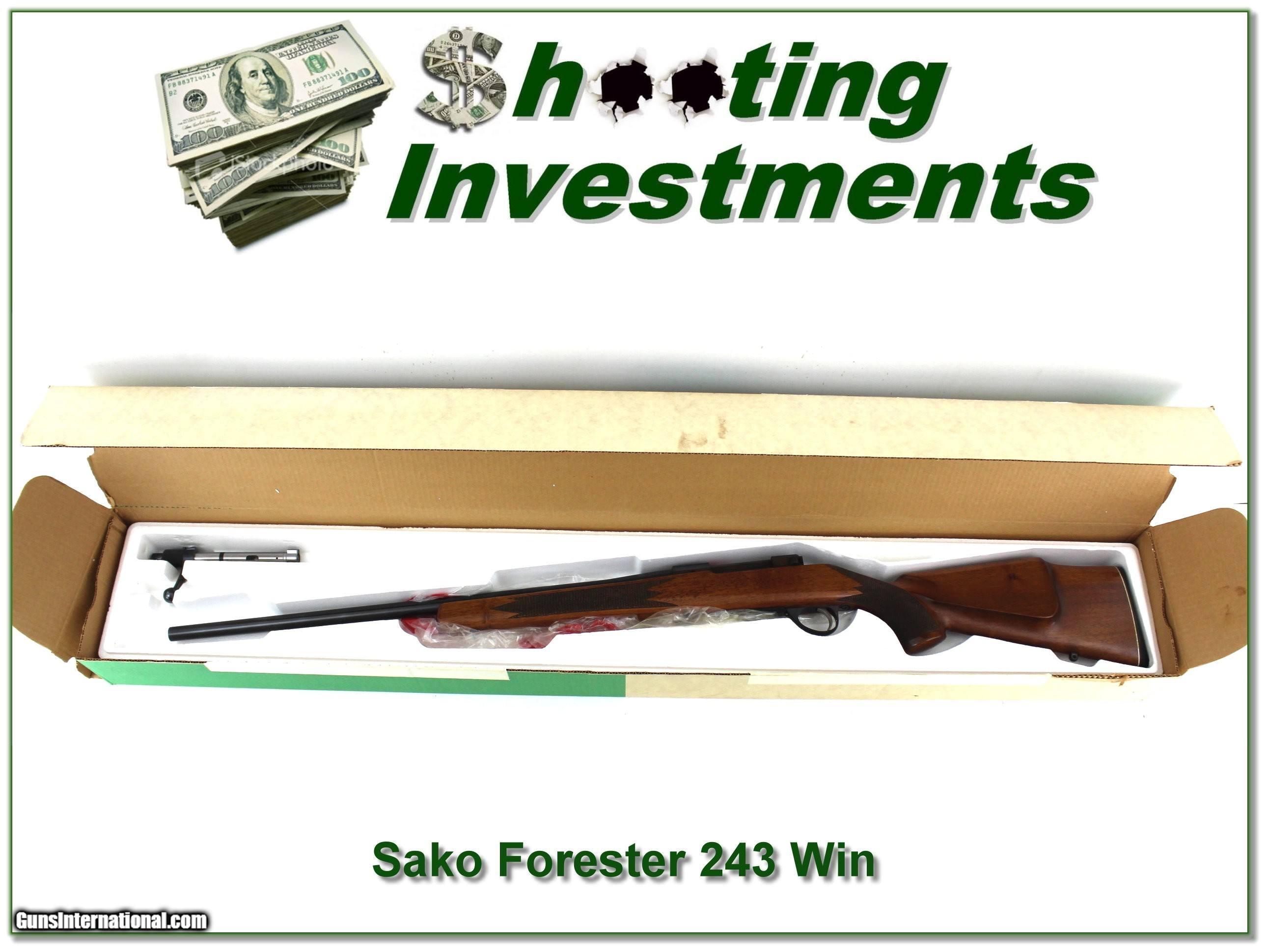 Description: Collectors and hunters, this is a near new condition Sako L579 Forester in 243 Winchester. From the bolt face it looks unfired! The metal is as new with a 23in barrel. The high gloss wood has just a just a couple storage marks. It comes as seen in original box! I am selling this one on consignment and as such lay-a-way can’t be used. It does of course have the standard 3-day inspection. Shipping and insurance is $49. Please email me with any questions or larger pictures. (Consign your quality firearms with Shooting Investments for only 12%! Let me know if you have any you would like to sell!) 24-0585 Payment: Payment is by Money Order, Cashier’s Check or Personal Check. I can now also accept Credit Cards (MasterCard, Visa, Discover & American Express) with a 3% convenience fee. Shipping: The shipping charge will be listed in each description. It is $49 for most firearms. Some heavy guns or those insured for over $2000 will be higher. Shipments to Alaska and Hawaii are higher because air shipment is required. Most firearms are shipped on Tuesday and Thursday and usually in 5 days of receipt of payment. We package all shipments carefully and insure them. Optics are shipped Priority Mail and most other non-firearm shipments are shipped First Class. Returns: Our return policy is simple. If for any reason you are not pleased with your purchase, you may return your item for a full refund of purchase price. Ammunition cannot be returned. It is important to us that you are happy. Guns cannot be fired or dissembled before returning them and they must be returned in the same condition as received. Notification of a return must occur within 3 days of receipt at your dealer. Shipping, convenience and dealer fees are not refundable and are the responsibility of the buyer. Lay-a-way: If needed, we offer a 60 day lay-a-way option on most firearms. It is 1/3 now, 1/3 in 30 days and 1/3 in 60 days. Lay-a-way firearm sales are final and cannot be returned. If a lay-a-way is not completed the first payment cannot be refunded. Consigning your firearms with Shooting Investments: We will help you get top dollar for your firearms. While most local guns shops charge 20% or more, our fee is only 12% with a minimum of $75. At your local gun shop it might take months to sell. Selling on-line provides instant access to thousands of interested buyers. You won’t find any other on-line dealer willing to sell your firearms for only 12% or listing every gun on 3 separate s. Selling through an House typically costs the seller 15% and the buyer an addition 15% (so 30%) and you have to wait several months to sell and longer to receive funds. If properly priced, we will sell your firearms within a few weeks. Send us an email or give us a call and we’ll explain how easy it is for you to get top dollar. Trading: Trading for us is really just buying your gun to re-sell. If you have a gun you want to trade, please email a picture and we will let you know what we can give for it. You will always get more if we sell it for you on consignment. SOLD |