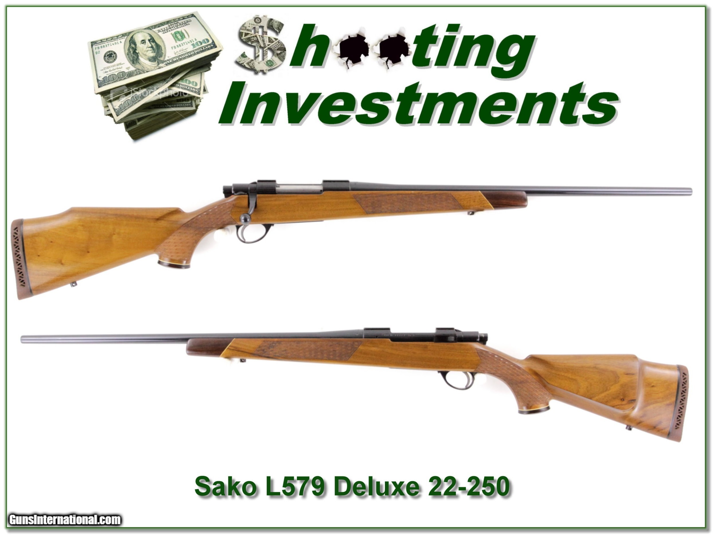 Description: This is a hard to find Sako L579 Deluxe is 22-250 Remington! It is excellent condition with just a few minor marks. It has a 23in barrel and will make an excellent high-end hunting gun or fine addition to your collection. Shipping with insurance is $39. Please email me with any questions or larger pictures. (Consign your quality firearms with Shooting Investments for only 12%! Let me know if you have any you would like to sell!) 19-0026 Payment: Payment is by Money Order, Cashiers Check or Personal Check. I can now also accept Credit Cards (MasterCard, Visa, Discover & American Express) with a 3% convenience fee. PayPal can be used for some items but never for firearms. Shipping: The shipping charge will be listed in each description. It is $39 for most firearms. Some heavy guns or those insured for over $2000 will be higher. Shipments to Alaska and Hawaii are higher because air shipment is required. Most firearms are shipped on Tuesday and Thursday and usually in 5 days of receipt of payment. We package all shipments carefully and insure them. Optics are shipped Priority Mail and most other non-firearm shipments are shipped First Class. Returns: Our return policy is simple. If for any reason you are not pleased with your purchase, you may return your item for a full refund of purchase price. Ammunition cannot be returned. It is important to us that you are happy. Guns cannot be fired or dissembled before returning them and they must be returned in the same condition as received. Notification of a return must occur with-in 3 days of receipt at your dealer. Shipping, convenience and dealer fees are not refundable and are the responsibility of the buyer. Lay-a-way: If needed, we offer a 60 day lay-a-way option on most firearms. It is 1/3 now, 1/3 in 30 days and 1/3 in 60 days. Lay-a-way firearm sales are final and if not completed the first payment cannot be returned. Consigning your firearms with Shooting Investments: We will help you get top dollar for your firearms. While most local guns shops charge 20% or more, our fee is only 12% with a minimum of $75. At your local gun shop it might take months to sell. Selling on-line provides instant access to thousands of interested buyers. You won’t find any other on-line dealer willing to sell your firearms for only 12% or listing every gun on 3 separate s. Selling through an House typically costs the seller 15% and the buyer an addition 15% (so 30%) and you have to wait several months to sell and longer to receive funds. If properly priced, we will sell your firearms in a few weeks. Send us an email or give us a call and we’ll explain how easy it is for you to get top dollar. Trading: Trading for use is really just buying your gun to re-sell. If you have a gun you want to trade, please email a picture and we will let you know what we can give or it. You will always get more if we sell it for you on consignment. Help for California Buyers: We are happy to ship to California. It is the buyer’s responsibility to make sure any item you buy is legal in your state. We are also happy to help with your purchase of a firearm from someone other than us. If you see a gun you would like to buy but the seller can’t or won’t ship to California they can ship to use and we’ll then ship it to your California dealer. The cost for this service is only $30 + shipping. Let us know if we can help! SOLD |