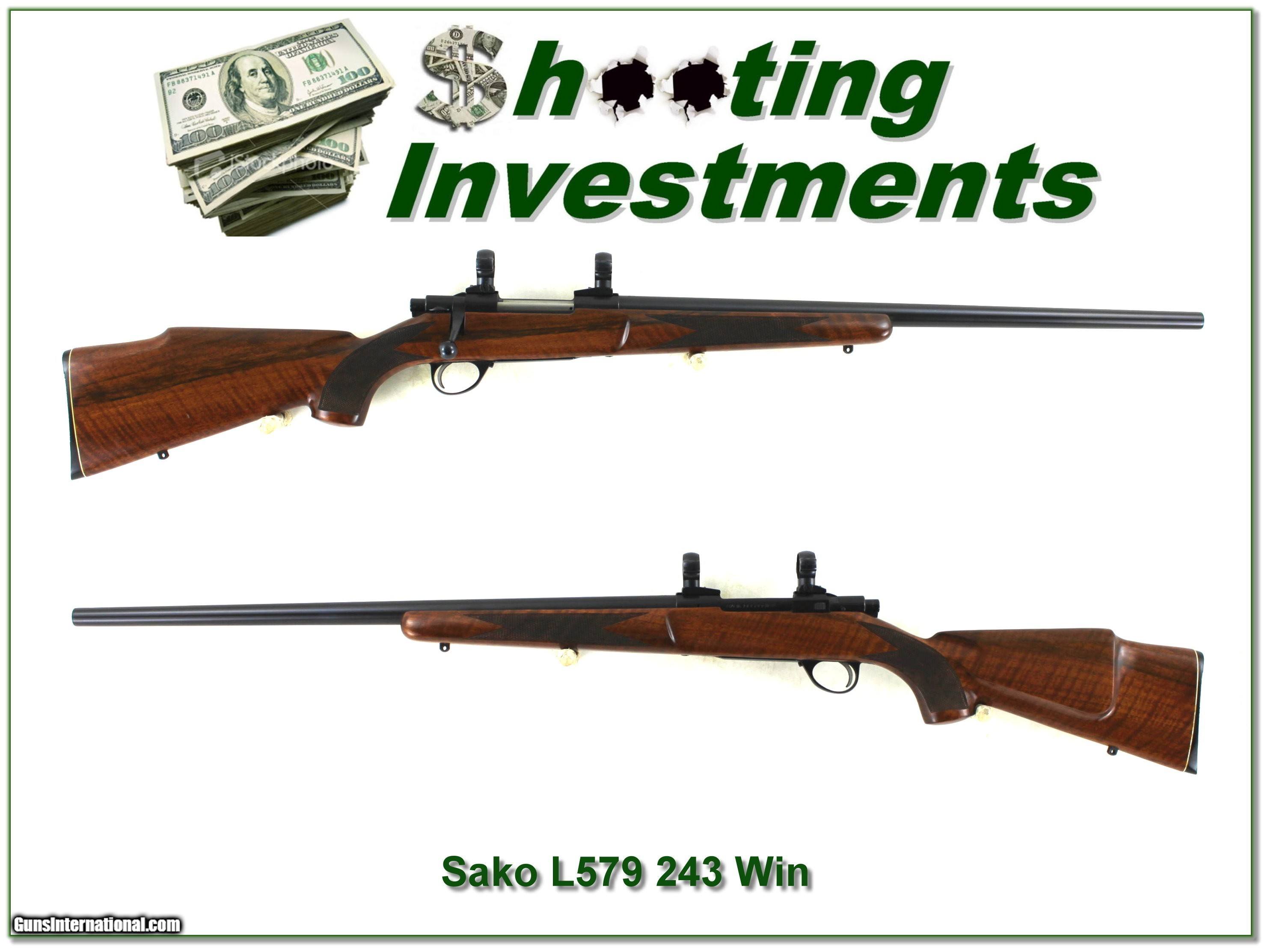 Description: Collectors, this is a top collector quality Sako L579 Varmint in 243 Winchester. It is outstanding and I don’t think you will EVER find nicer. The metal is as new and I’m sure only a few rounds fired. It has a 24in Heavy Varmint barrel and comes with bases and rings as seen. Buy it before I take this sone home! Shipping and insurance is $49. Please email me with any questions or larger pictures. (Consign your quality firearms with Shooting Investments for only 12%! Let me know if you have any you would like to sell!) 25-0231 Payment: Payment is by Money Order, Cashier’s Check or Personal Check. I can now also accept Credit Cards (MasterCard, Visa, Discover & American Express) with a 3% convenience fee. Shipping: The shipping charge will be listed in each description. It is $49 for most firearms. Some heavy guns or those insured for over $2000 will be higher. Shipments to Alaska and Hawaii are higher because air shipment is required. Most firearms are shipped on Tuesday and Thursday and usually in 5 days of receipt of payment. We package all shipments carefully and insure them. Optics are shipped Priority Mail and most other non-firearm shipments are shipped First Class. Returns: Our return policy is simple. If for any reason you are not pleased with your purchase, you may return your item for a full refund of purchase price. Ammunition cannot be returned. It is important to us that you are happy. Guns cannot be fired or dissembled before returning them and they must be returned in the same condition as received. Notification of a return must occur within 3 days of receipt at your dealer. Shipping, convenience and dealer fees are not refundable and are the responsibility of the buyer. Lay-a-way: If needed, we offer a 60 day lay-a-way option on most firearms. It is 1/3 now, 1/3 in 30 days and 1/3 in 60 days. Lay-a-way firearm sales are final and cannot be returned. If a lay-a-way is not completed the first payment cannot be refunded. Consigning your firearms with Shooting Investments: We will help you get top dollar for your firearms. While most local guns shops charge 20% or more, our fee is only 12% with a minimum of $100. At your local gun shop it might take months to sell. Selling on-line provides instant access to thousands of interested buyers. You won’t find any other on-line dealer willing to sell your firearms for only 12% or listing every gun on 3 separate s. Selling through an House typically costs the seller 15% and the buyer an addition 15% (so 30%) and you have to wait several months to sell and longer to receive funds. If properly priced, we will sell your firearms within a few weeks. Send us an email or give us a call and we’ll explain how easy it is for you to get top dollar. Trading: Trading for us is really just buying your gun to re-sell. If you have a gun you want to trade, please email a picture and we will let you know what we can give for it. You will always get more if we sell it for you on consignment. SOLD |