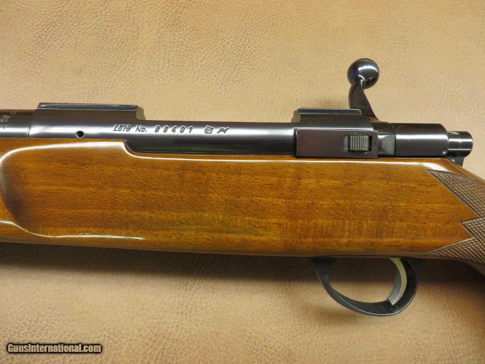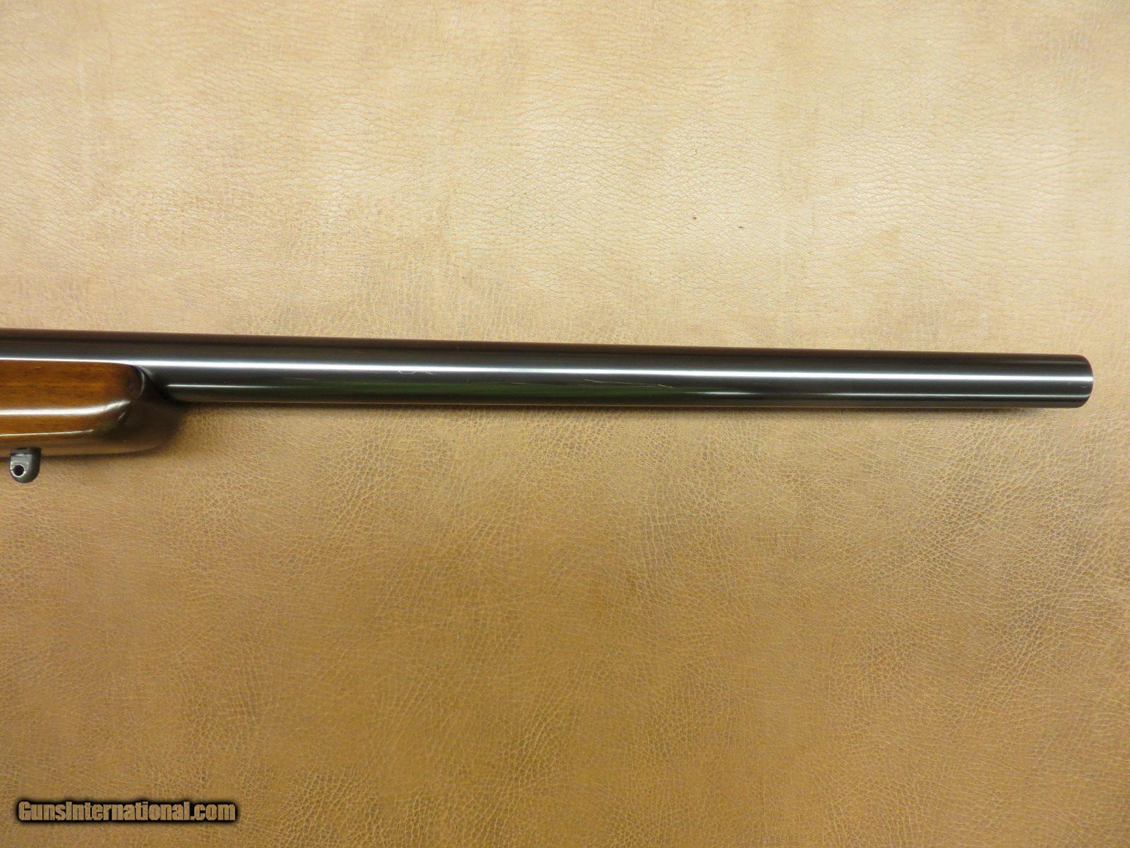 Description: 22-250 with 23 1/2 inch heavy barrel. Serial number 86xxx. Dovetailed receiver for scope mounting. High gloss checkered walnut stock has beavertail forend, cheekpiece, sling swivel studs, and original butt plate. Blue is 99% and the wood is 98%. Gun comes in correct vintage box but no end label. SOLD |