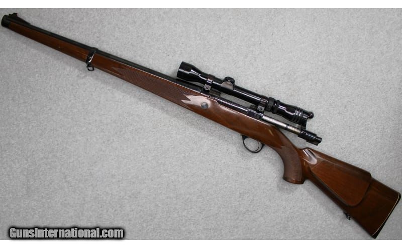 Description: Sako L579 Forester bolt-action rifle chambered in .308 Winchester. A rarer "Mannlicher Carbine" variant featuring a 20-inch barrel and full-length checkered stock. The serial number (100076) suggests that the rifle was produced in 1970. Comes with a mounted Redfield 2-7 variable power rifle scope. .308 Winchester SOLD Metal Condition: Very Good with Minor Handling Marks Wood Condition: Good with Handling Marks and Scratches Bore Condition: Bright And Clear with No Pitting Barrels: 20 inch Triggers: Adjustable Stock Dimensions: 14 inch LoP Fore End: Checkered Wood Butt Pad: Checkered Plastic Weight: 8 Lbs 1 oz Sights: Mounted Redfield 2-7x Variable Scope Item Location: Fort Worth, TX |