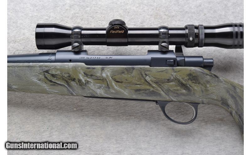 Description: This Sako Model L61R is a right-hand bolt action rifle in .30-06 Sprg. Cal. It has a 24 inch barrel. No iron sights. It is outfitted with a Redfield 2x-7x Scope. The butt stock is a camo polymer pistol grip with a raised cheek piece and right hand palm swell. The forearm is a checkered grip camo polymer. .30-06 Springfield SOLD Chambers: 4 round with a hinged floorplate. Metal Condition: Excellent. Bore Condition: Excellent. Barrels: 24 inch Bofors steel. Stock Dimensions: LOP 13 7/8 inches. Fore End: Checkered grip camo polymer. Butt Pad: LimbSaver rubber recoil pad. Weight: 8 lb. 4 oz. Sights: No iron sights. Redfield 2x-7x Scope. Item Location: Richfield, WI |
