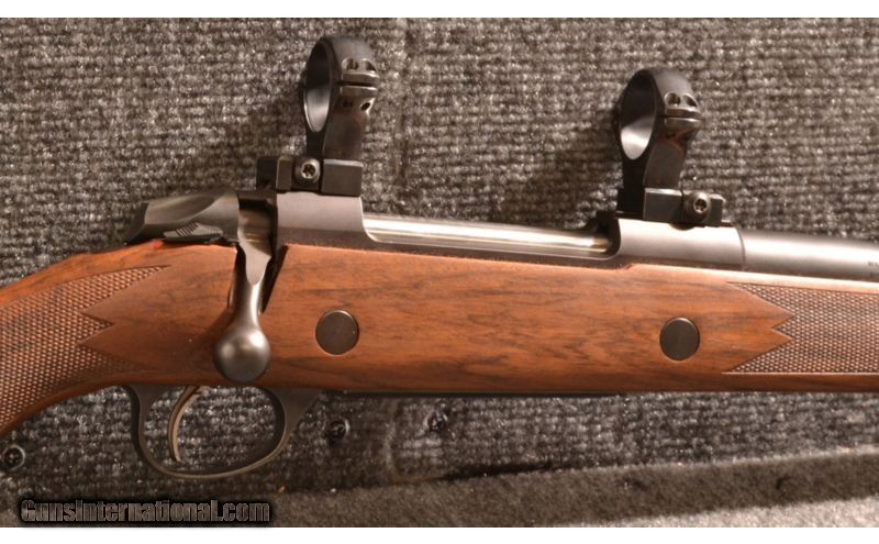 Description: Sako Finnbear L61R in great shape complete with 30mm rings and Sako bases. Finnbears are a hefty rifle known for their fit, finish and accuracy. Produced from 1962 - 1973 in great shape along with being a time tested caliber still reliable today. SOLD Caliber Info: .30-06 Sprg. Chambers: Bolt action repeater. Metal Condition: Very good slight pitting on barrel. Wood Condition: Excellent few small dents in butt. Bore Condition: Shiny. Barrels: 24 inch tapered barrel. Triggers: Single blued steel. Stock: Monte Carlo with checkered wood a pistol grip and swivel studs. Stock Dimensions: LOP: 14 inch. Fore End: Checkered wood. Butt Pad: Factory Sako red rubber. Weight: 8 lbs 8 oz. Sights: 30mm rings with Sako bases. Extras: Comes with a box, mag and the Sako 30mm rings. Item Location: Thornton, CO |