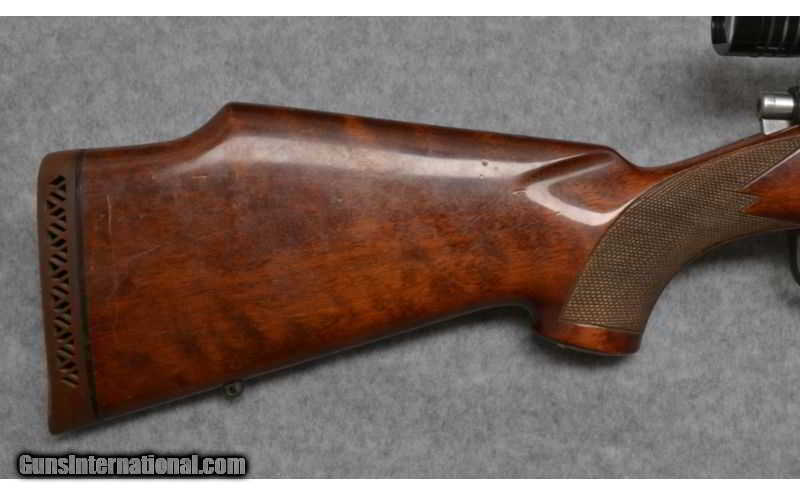 Description: This is a good example of a well maintained hunting rifle. It shows the character of a rifle that was used for it's intended purpose and shows that in the normal markings a working rifle attains while being hunted. SOLD Caliber Info: .300 Win Mag. Chambers: Internal magazine bolt action. Metal Condition: Good with light handling marks. Wood Condition: Usage and wear marks consistant with age. Bore Condition: Clean and bright with strong lands and grooves. Barrels: 24 1/4 In. parkerized. Triggers: Single. Stock: Walnut. Stock Dimensions: LOP 13 3/4 In. DAC 1 1/8 In. DAH 1 3/4 In. Fore End: Pressed checkering. Butt Pad: Ventilated red rubber, Sako marked. Weight: 9Lb. 5 Oz. Sights: Redfield Widefield 3x-9x. Item Location: Anchorage, AK |