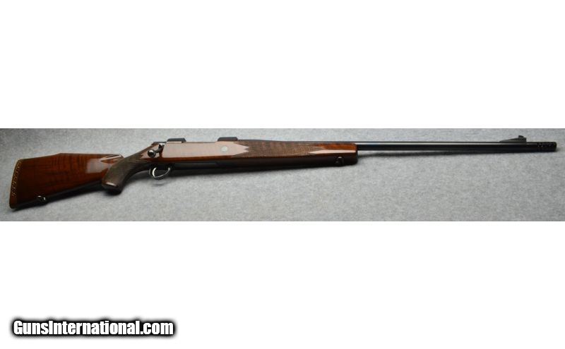 Description: SOLD Caliber Info: .375 H&H Mag Chambers: 4 Rounds Metal Condition: Excellent Wood Condition: Excellent with Small Handeling Marks Bore Condition: Excellent Barrels: 23 Inches with Muzzle Break Triggers: Factory Stock: Factory, Fancy Hard Wood with Checkering Fore End: Factory, Fancy Hard Wood with Checkering Butt Pad: Factory Weight: 8 Pounds 5 ounces Sights: Factory, Railes and Ramped Blade Fromt Item Location: Noblesville, IN |