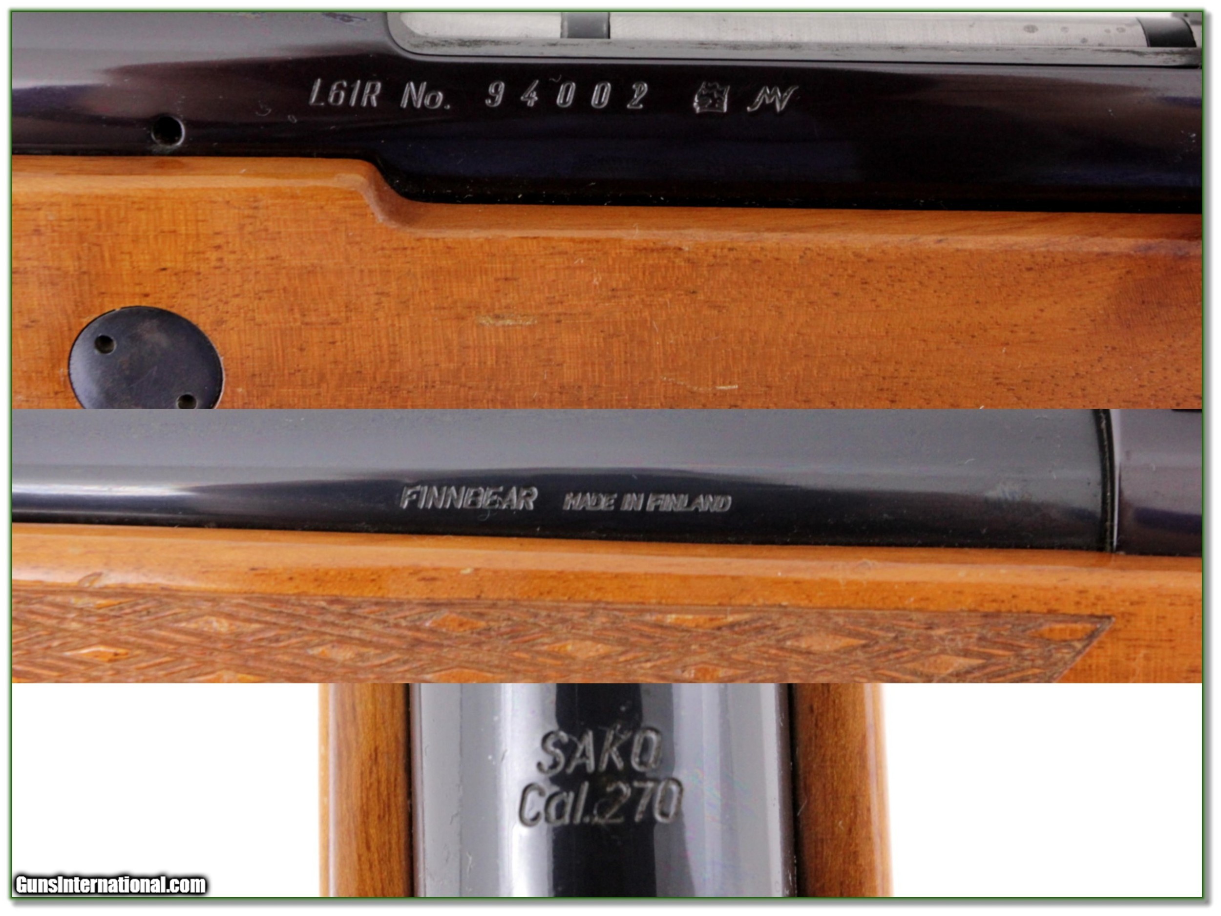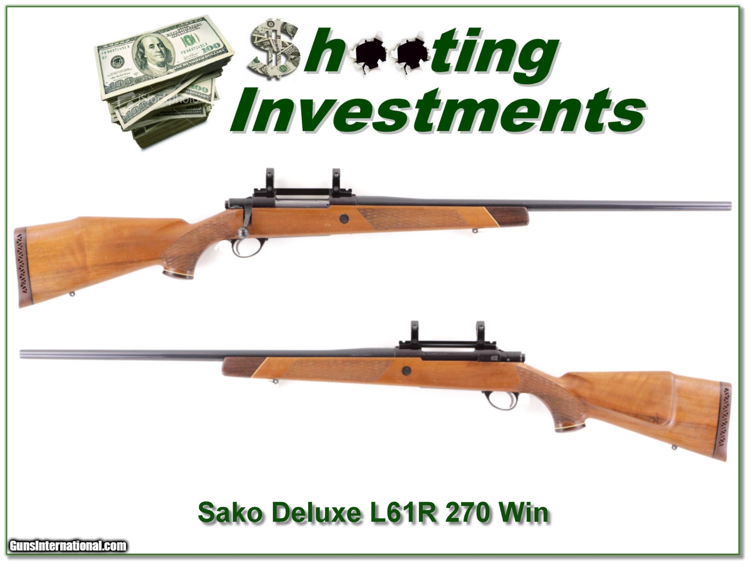Description: This is a high-end Sako L61R Deluxe in the harder to find 270 Winchester. It has some field use as seen and will make a classic hunting gun. These older Sakos are known for superior accuracy and have 24.5in barrels. This one comes with bases and rings as pictured. Shipping with insurance is $39. Please email me with any questions or larger pictures. (Consign your quality firearms with Shooting Investments for only 12%! Let me know if you have any you would like to sell!) 18-1188 Payment: Payment is by Money Order, Cashiers Check or Personal Check. I can now also accept MasterCard and Visa with a 3% convenience fee. PayPal can be used for some items but never firearms. Please let us know if you would like to pay via PayPal. Shipping: The shipping charge will be listed in each description. It is $39 for most long guns and $29 for most handguns. Some heavy guns or those insured for over $2000 will be higher. Shipments to Alaska and Hawaii are higher because air shipment is required. Most firearms are shipped on Tuesday and Thursday and usually in 5 days of receipt of payment. We package all shipments carefully and insure them. For long guns you can purchase a new Plano case for $19. They now cost us $22 when buying 100 at a time. Optics are shipped Priority Mail and most other non-firearm shipments are shipped First Class. Returns: Our return policy is simple. If for any reason you are not pleased with your purchase, you may return your item for a full refund of purchase price. Ammunition cannot be returned. It is important to us that you are happy. Guns cannot be fired or dissembled before returning them and they must be returned in the same condition as received. Notification of a return must occur with-in 3 days of receipt at your dealer. Shipping, convenience and dealer fees are not refundable and are the responsibility of the buyer. Lay-a-way: If needed, we offer a 60 day lay-a-way option on most firearms. It is 1/3 now, 1/3 in 30 days and 1/3 in 60 days. Lay-a-way firearm sales are final and if not completed the first payment cannot be returned. Consigning your firearms with Shooting Investments: We will help you get top dollar for your firearms. While most local guns shops charge 20% or more, our fee is only 12% with a minimum of $75. At your local gun shop it might take months to sell. Selling on-line provides instant access to thousands of interested buyers. You won’t find any other on-line dealer willing to sell your firearms for only 12% or listing every gun on 3 separate s. Selling through an House typically costs the seller 15% and the buyer an addition 15% (so 30%) and you have to wait several months to sell and longer to receive funds. If properly priced, we will sell your firearms in a few weeks. Send us an email or give us a call and we’ll explain how easy it is for you to get top dollar. Trading: Trading for use is really just buying your gun to re-sell. If you have a gun you want to trade, please email a picture and we will let you know what we can give or it. You will always get more if we sell it for you on consignment. Help for California Buyers: We are happy to ship to California. It is the buyer’s responsibility to make sure any item you buy is legal in your state. We are also happy to help with your purchase of a firearm from someone other than us. If you see a gun you would like to buy but the seller can’t or won’t ship to California they can ship to use and we’ll then ship it to your California dealer. The cost for this service is only $30 + shipping. Let us know if we can help! SOLD |