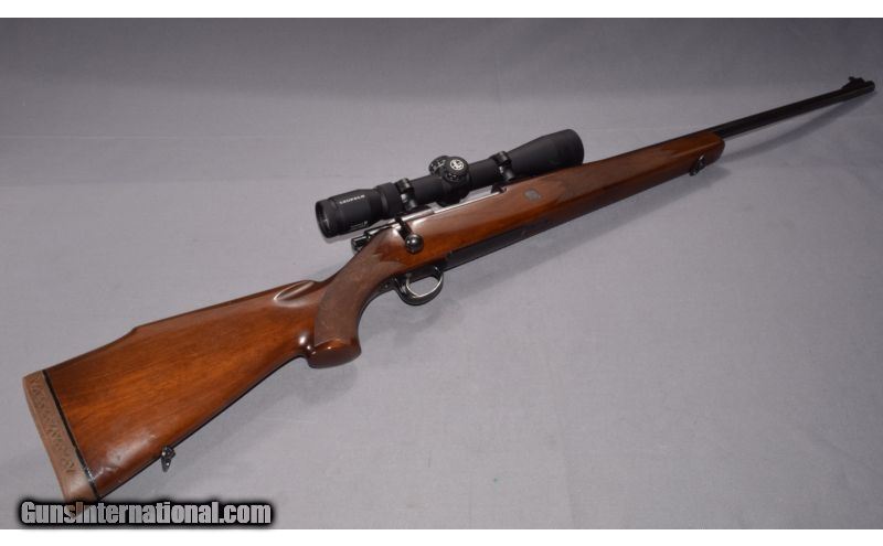 Description: SOLD Caliber Info: 300 Winchester Magnum Chambers: Bolt action Repeater Metal Condition: Good - minor scrathes minor handling marks Wood Condition: Good - minor scrathes minor handling marks Bore Condition: Good - bright with lite rifiling Barrels: 24 inch Blue sporter Triggers: Single Stock Dimensions: 13.75 inch LOP, 44 inch Overall Fore End: Side Checekering - Nice and crisp Butt Pad: Factory Recoil Reducing Sights: Leupold 3-9x40 VXR Patrol , missing rear iron, has front iron Item Location: Chesterfield, MI |