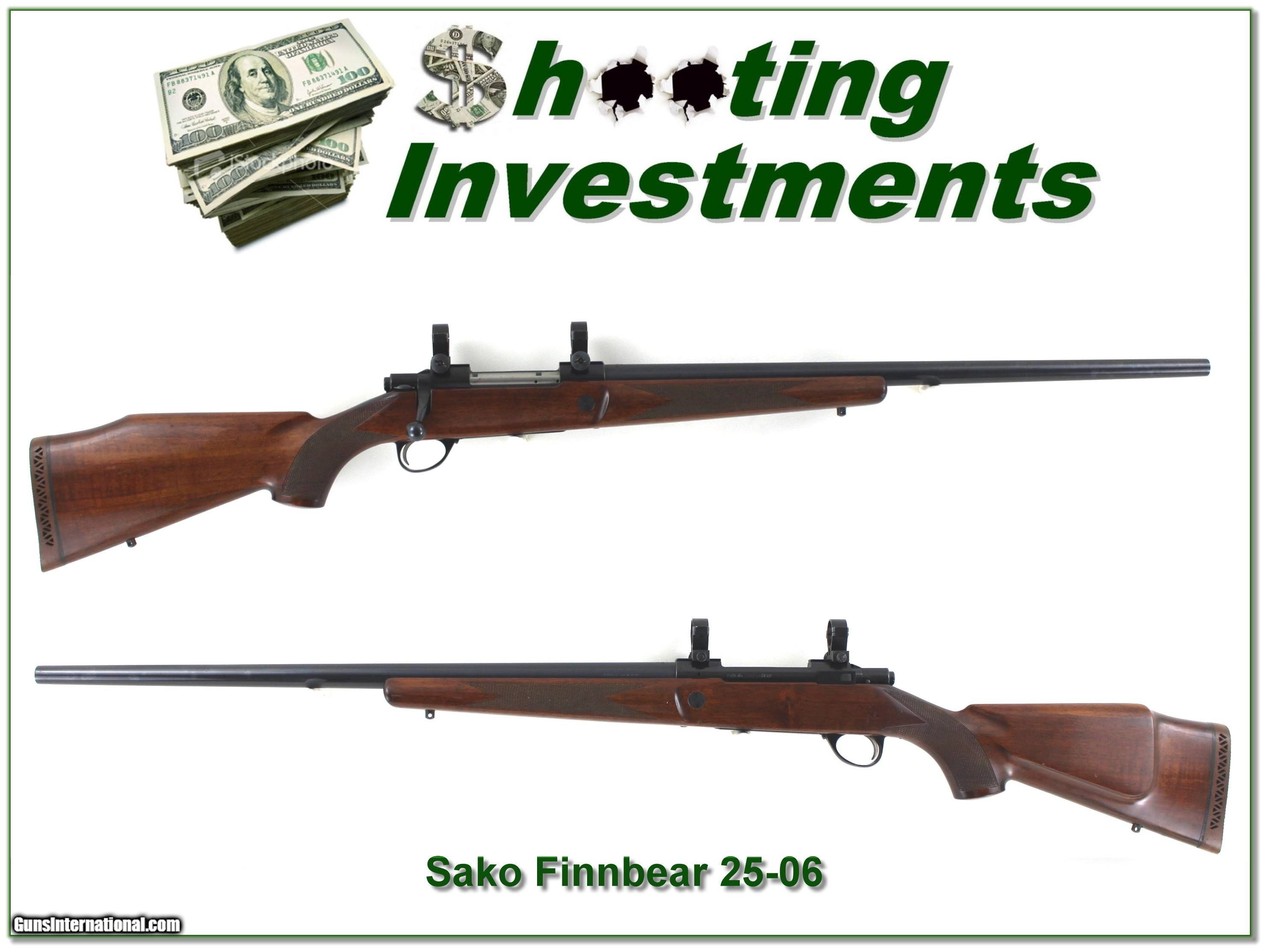 Description: Collectors, hunters and shooters, this is a very rare Sako Varmint Barrel L61R Finnbear in 25-06 Remington. From the bolt I’m sure not many rounds fired. It has a 24.5in Heavy barrel and the bore is bright, shiny and sharp! The wood as just a few minor marks and aside from a few spots on the outside of the barrel with blue is near new. It will make a classic hunting or even target gun. It’s a real Shooting Investment! Shipping and insurance is $49. Please email me with any questions or larger pictures. (Consign your quality firearms with Shooting Investments for only 12%! Let me know if you have any you would like to sell!) 25-0539 Payment: Payment is by Money Order, Cashier’s Check or Personal Check. I can now also accept Credit Cards (MasterCard, Visa, Discover & American Express) with a 3% convenience fee. Shipping: The shipping charge will be listed in each description. It is $49 for most firearms. Some heavy guns or those insured for over $2000 will be higher. Shipments to Alaska and Hawaii are higher because air shipment is required. Most firearms are shipped on Tuesday and Thursday and usually in 5 days of receipt of payment. We package all shipments carefully and insure them. Optics are shipped Priority Mail and most other non-firearm shipments are shipped First Class. Returns: Our return policy is simple. If for any reason you are not pleased with your purchase, you may return your item for a full refund of purchase price. Ammunition cannot be returned. It is important to us that you are happy. Guns cannot be fired or dissembled before returning them and they must be returned in the same condition as received. Notification of a return must occur within 3 days of receipt at your dealer. Shipping, convenience and dealer fees are not refundable and are the responsibility of the buyer. Lay-a-way: If needed, we offer a 60 day lay-a-way option on most firearms. It is 1/3 now, 1/3 in 30 days and 1/3 in 60 days. Lay-a-way firearm sales are final and cannot be returned. If a lay-a-way is not completed the first payment cannot be refunded. Consigning your firearms with Shooting Investments: We will help you get top dollar for your firearms. While most local guns shops charge 20% or more, our fee is only 12% with a minimum of $100. At your local gun shop it might take months to sell. Selling on-line provides instant access to thousands of interested buyers. You won’t find any other on-line dealer willing to sell your firearms for only 12% or listing every gun on 3 separate s. Selling through an House typically costs the seller 15% and the buyer an addition 15% (so 30%) and you have to wait several months to sell and longer to receive funds. If properly priced, we will sell your firearms within a few weeks. Send us an email or give us a call and we’ll explain how easy it is for you to get top dollar. Trading: Trading for us is really just buying your gun to re-sell. If you have a gun you want to trade, please email a picture and we will let you know what we can give for it. You will always get more if we sell it for you on consignment. SOLD |