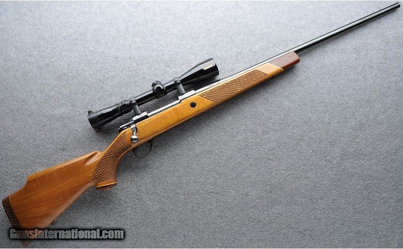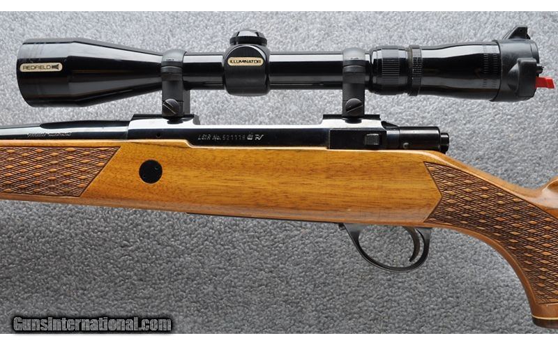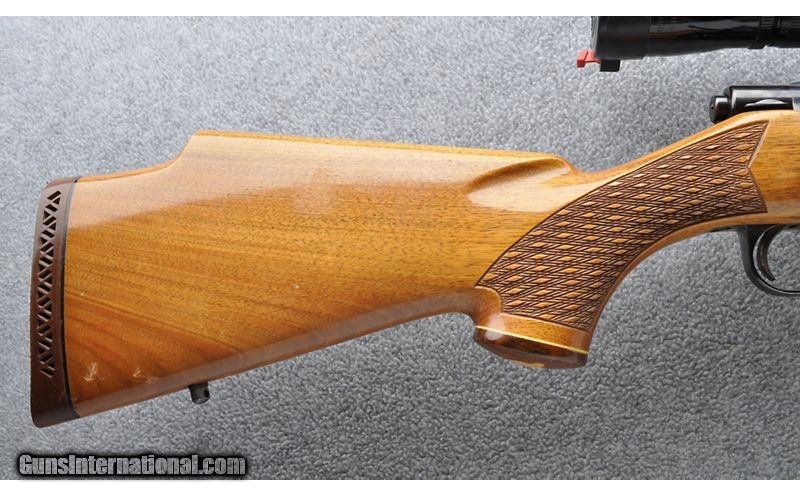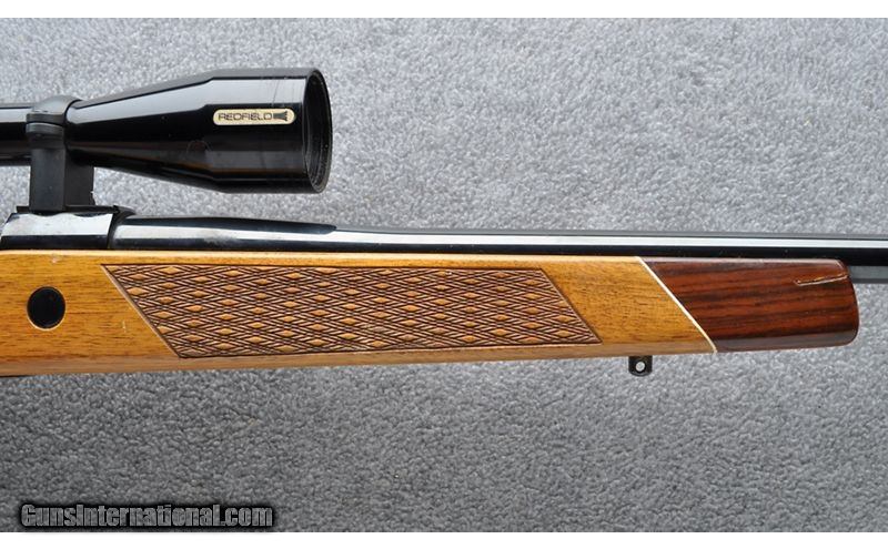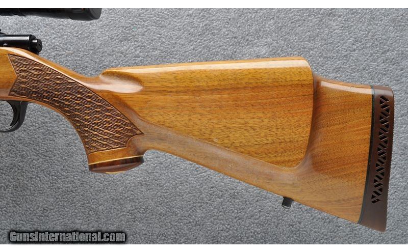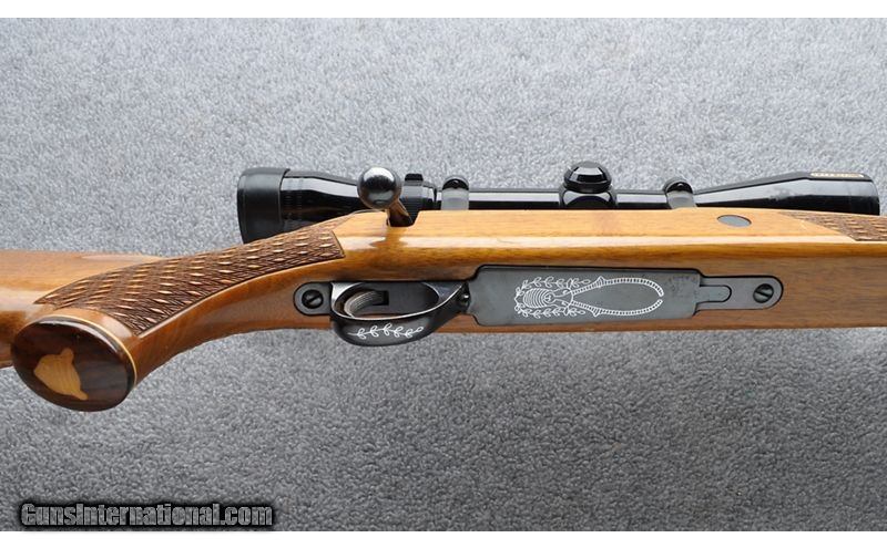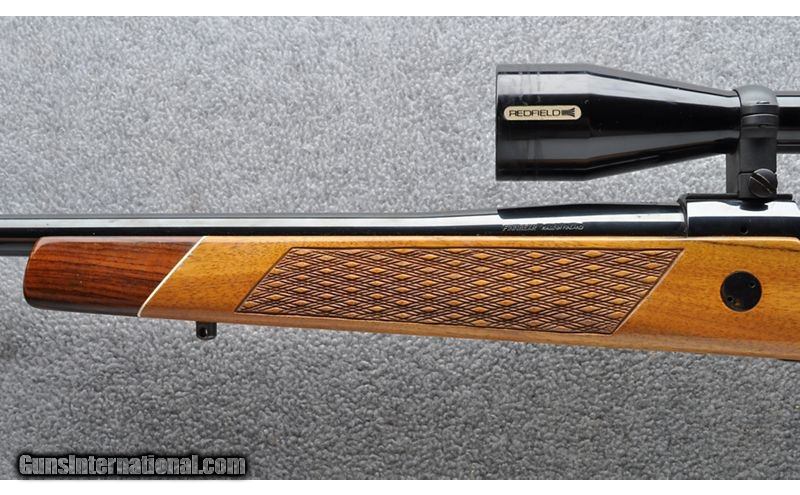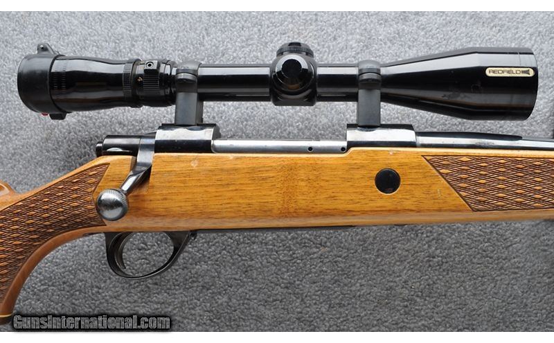 Description: In production from 1962 to 1972, the L61R Finnbear is a robust bolt action rifle known for their fit, finish and accuracy. .270 Winchester SOLD Chambers: .270 Winchester Metal Condition: Very good with the exception of a small patch of blue loss & rust at the muzzle Wood Condition: Scattered small dents from field use and a small gash on the fore end tip right side. Some crazing of the finish is visible mostly on the left side of the stock. Bore Condition: Very good with crisp rifling Barrels: 24 1/2 Triggers: Grooved Stock Dimensions: 13 3/4" LOP Fore End: Skipline checkered with rosewood fore end tip and sling stud Butt Pad: Sako vented rubber Weight: 9 lbs. 6 oz. Sights: "No sights, fitted with a Redfield Illuminator 3-9 Wideview scope Item Location: Grand Junction, CO |