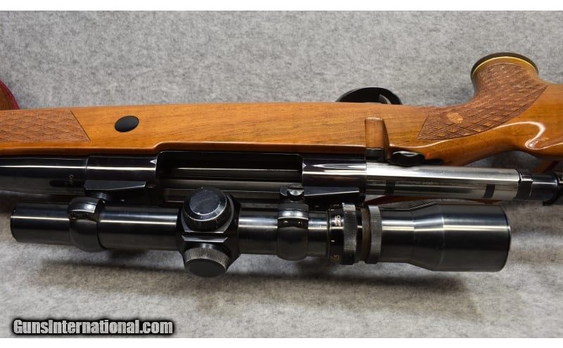 Description: This Sako L61R Finnbear .375 Magnum is in outstanding condition. Made in Finland, the ported barrel has two or three very small scratches. The stock and fore end have maybe five small indentations. Very nice looking gun at a good price. .375 Magnum SOLD Chambers: .375 with 4 round magazine Metal Condition: Very Good Wood Condition: Very Good Bore Condition: Very Good Barrels: 24 1/2" Ported Fore End: Wood Butt Pad: Rubber Weight: 8 Sights: Micro-Trac Scope Item Location: Kansas City, KS |