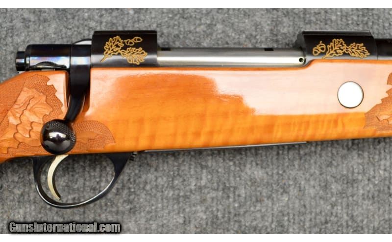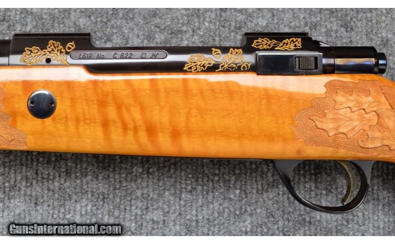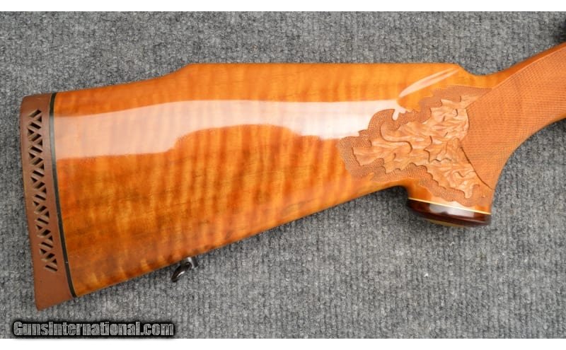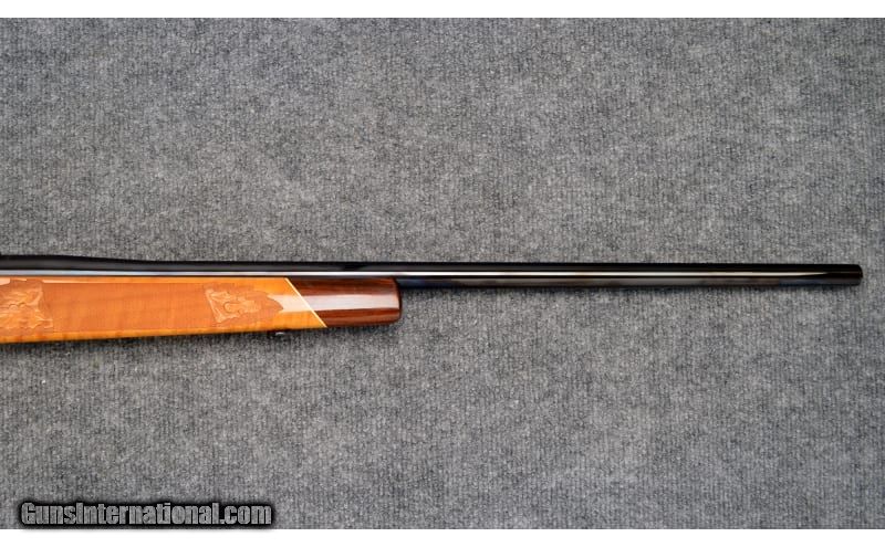 Description: For your consideration, a Sako L61R Finnbear chambered in 7mm Remington Magnum. This piece is a commemorative celebrating the 50 year, or golden, anniversary of the 1921 founding of Sako. Its bottom metal and action are embellished with gold lacquer filled oak leaves. The checkered portions of this piece's stock have been bookended by hand carved with oak leaves against beaded backgrounds. 7mm Remington Magnum SOLD Metal Condition: Excellent Wood Condition: Excellent Bore Condition: Excellent Barrels: 25 Triggers: Serrated Stock Dimensions: 13.75" LOP Fore End: Checkered Butt Pad: Rubber Weight: 8.25 lbs Sights: None Item Location: Hamburg, PA |