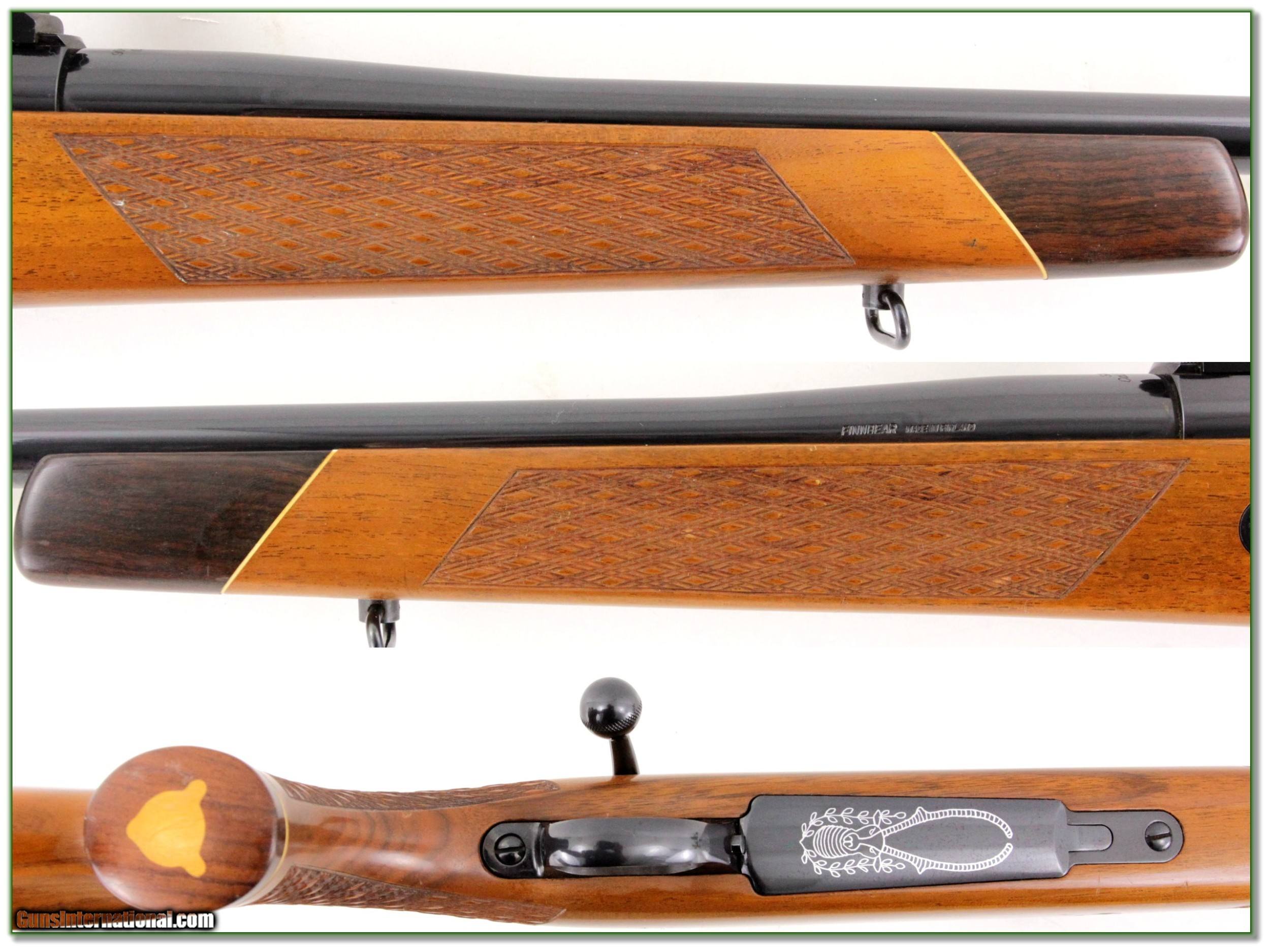 Description: This is a beautiful SAKO Finnbear Deluxe L61R. From the bolt face I believe unfired! It is a 30-06 with 24.5in barrel and beautiful honey blond wood. Aside from some light freckles on the floorplate and a couple insignificant storage marks on the wood this one looks as new. It comes with bases and rings as seen. It will make a classic high-end hunting gun and these Sako’s are known for superior accuracy. Shipping with insurance is $39. Please email me with any questions or larger pictures. (Consign your quality firearms with Shooting Investments for only 12%! Let me know if you have any you would like to sell!) 19-1155 Payment: Payment is by Money Order, Cashiers Check or Personal Check. I can now also accept Credit Cards (MasterCard, Visa, Discover & American Express) with a 3% convenience fee. PayPal can be used for some items but never for firearms. Shipping: The shipping charge will be listed in each description. It is $39 for most firearms. Some heavy guns or those insured for over $2000 will be higher. Shipments to Alaska and Hawaii are higher because air shipment is required. Most firearms are shipped on Tuesday and Thursday and usually in 5 days of receipt of payment. We package all shipments carefully and insure them. Optics are shipped Priority Mail and most other non-firearm shipments are shipped First Class. Returns: Our return policy is simple. If for any reason you are not pleased with your purchase, you may return your item for a full refund of purchase price. Ammunition cannot be returned. It is important to us that you are happy. Guns cannot be fired or dissembled before returning them and they must be returned in the same condition as received. Notification of a return must occur with-in 3 days of receipt at your dealer. Shipping, convenience and dealer fees are not refundable and are the responsibility of the buyer. Lay-a-way: If needed, we offer a 60 day lay-a-way option on most firearms. It is 1/3 now, 1/3 in 30 days and 1/3 in 60 days. Lay-a-way firearm sales are final and if not completed the first payment cannot be returned. Consigning your firearms with Shooting Investments: We will help you get top dollar for your firearms. While most local guns shops charge 20% or more, our fee is only 12% with a minimum of $75. At your local gun shop it might take months to sell. Selling on-line provides instant access to thousands of interested buyers. You won’t find any other on-line dealer willing to sell your firearms for only 12% or listing every gun on 3 separate s. Selling through an House typically costs the seller 15% and the buyer an addition 15% (so 30%) and you have to wait several months to sell and longer to receive funds. If properly priced, we will sell your firearms in a few weeks. Send us an email or give us a call and we’ll explain how easy it is for you to get top dollar. Trading: Trading for use is really just buying your gun to re-sell. If you have a gun you want to trade, please email a picture and we will let you know what we can give or it. You will always get more if we sell it for you on consignment. Help for California Buyers: We are happy to ship to California. It is the buyer’s responsibility to make sure any item you buy is legal in your state. We are also happy to help with your purchase of a firearm from someone other than us. If you see a gun you would like to buy but the seller can’t or won’t ship to California they can ship to use and we’ll then ship it to your California dealer. The cost for this service is only $30 + shipping. Let us know if we can help! SOLD |