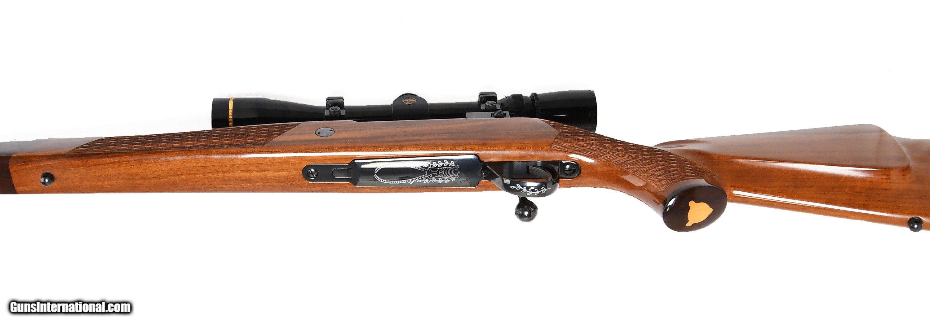 Description: Sako L61R AIII bolt action rifle chambered in 7mm Remington Magnum. Made in the 1980’s and imported by Stoeger this beautiful Finnbear Deluxe is in amazing original condition. The metal is 98-99% original blue and the stock finish is 97-98% original with the small deduction for some light handling marks. Original Sako scope mounts holding a Leupold VX III 3.5-10x40 scope with duplex reticle. 8 lbs. 12 oz. including scope $2295.00 SN: 543850 SOLD |