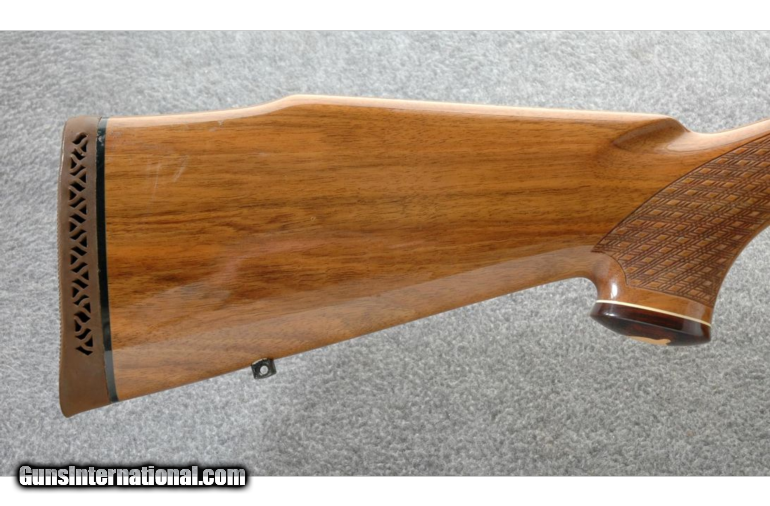 Description: SOLD Manufacturer: 1970-71 Caliber Info: 7mm Rem. Mag. Metal Condition: Very good with a few fine scratches and tiny nicks in the finish Wood Condition: Good with some small dents and scratches Bore Condition: Excellent, sharp and bright Barrels: 24 1/2 inch fluted barrel Stock: Walnut Monte Carlo stock with cheek piece and skip line checkering Stock Dimensions: 13 3/4 inch LOP Butt Pad: Rubber pad Weight: 9 lbs. 3 oz. with scope Sights: Redfield 3-12x scope Item Location: Lehi, UT |