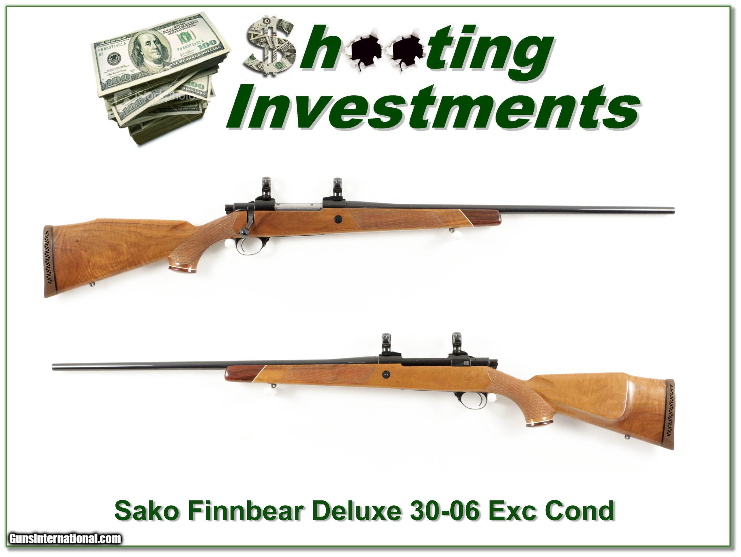 Description: Collectors, hunters and shooters, this is a Sako Finnbear Deluxe in the 30-06 with 24 in barrel. It has beautiful blond wood. The blue is excellent showing little use. The wood has beautiful figure and only a few light marks from use. These Sako’s are known for superior accuracy and this one will make a classic high-end hunting gun that sure to increase in value over time. That’s what I call a Shooting Investment! Shipping and insurance is $35 or $15 more if you want it shipped in a new Plano hard case. Please email me with any questions or larger pictures. (Consign your quality firearms with Shooting Investments for only 10%! Let me know if you have any you would like to sell!) 17-0612 Payment: Payment is by Money Order, Cashiers Check or Personal Check. I can now also accept MasterCard and Visa with a 3% convenience fee. PayPal can be used for some items but never firearms. Please let us know if you would like to pay via PayPal. Shipping: The shipping charge will be listed in each description. It is $35 for most guns. Some heavy guns or those insured for over $2000 will be higher. Shipments to Alaska and Hawaii are higher because air shipment is required. Most firearms are shipped within 5 days of receipt of payment. We prefer shipping at the beginning of the week to avoid firearms in transit over weekends. We package all shipments carefully and insure them for the full purchase price, rounded up to the next $100. In the unlikely event that damage occurs, it is important that you save all packaging material for the claims process. Optics are shipped Priority Mail and most other non-firearm shipments are shipped First Class. Returns: Our return policy is simple. If for any reason you are not pleased with your purchase, you may return your item for a refund. The only exception is ammunition, it cannot be returned. It is important to us that you are happy. Guns cannot be fired or dissembled before returning them and must be returned in the same condition as received. Notification of a return must occur with-in 3 days of receipt at your dealer. Shipping, convenience and dealer fees are not refundable and are the responsibility of the buyer. Lay-a-way: If needed, we offer a 60 day lay-a-way option on most firearms. It is 1/3 now, 1/3 in 30 days and 1/3 in 60 days. Lay-a-way firearm sales are final. Consigning your firearms with Shooting Investments: We will help you get top dollar for your firearms. While most local guns shops charge 20% or more, our fee is only 10% with a minimum of $50. At your local gun shop it might take months to sell. Selling on-line provides instant access to thousands of interested buyers. You won’t find any other on-line dealer willing to sell your firearms for only 10% or listing every gun on 4 separate s. Selling through an House typically costs the seller 15% and the buyer an addition 15% (so 30%) and you have to wait several months to sell and longer to receive funds. If properly priced, we will sell your firearms in a week or two. Send us an email or give us a call and we’ll explain how easy it is for you to get top dollar. Trading: We collect guns and usually just trade for guns we want to add to our collections. We often sell guns for others wanting to purchase one of ours. We find this the most fair to both of us. Our Commission is only 10% and we hold the gun you want until yours sells. Please contact us if you want to sell one of yours to buy one of ours. Help for California Buyers: We are happy to ship to California. It is the buyer’s responsibility to make sure any item you buy is legal in your state. We are also happy to help with your purchase of a firearm from someone other than us. If you see a gun you would like to buy but the seller can’t or won’t ship to California we can help. You buy the gun and have it shipped to us. We’ll then ship it to your California dealer. The cost for this service is only $30 + shipping. Let me know if we can help! SOLD |