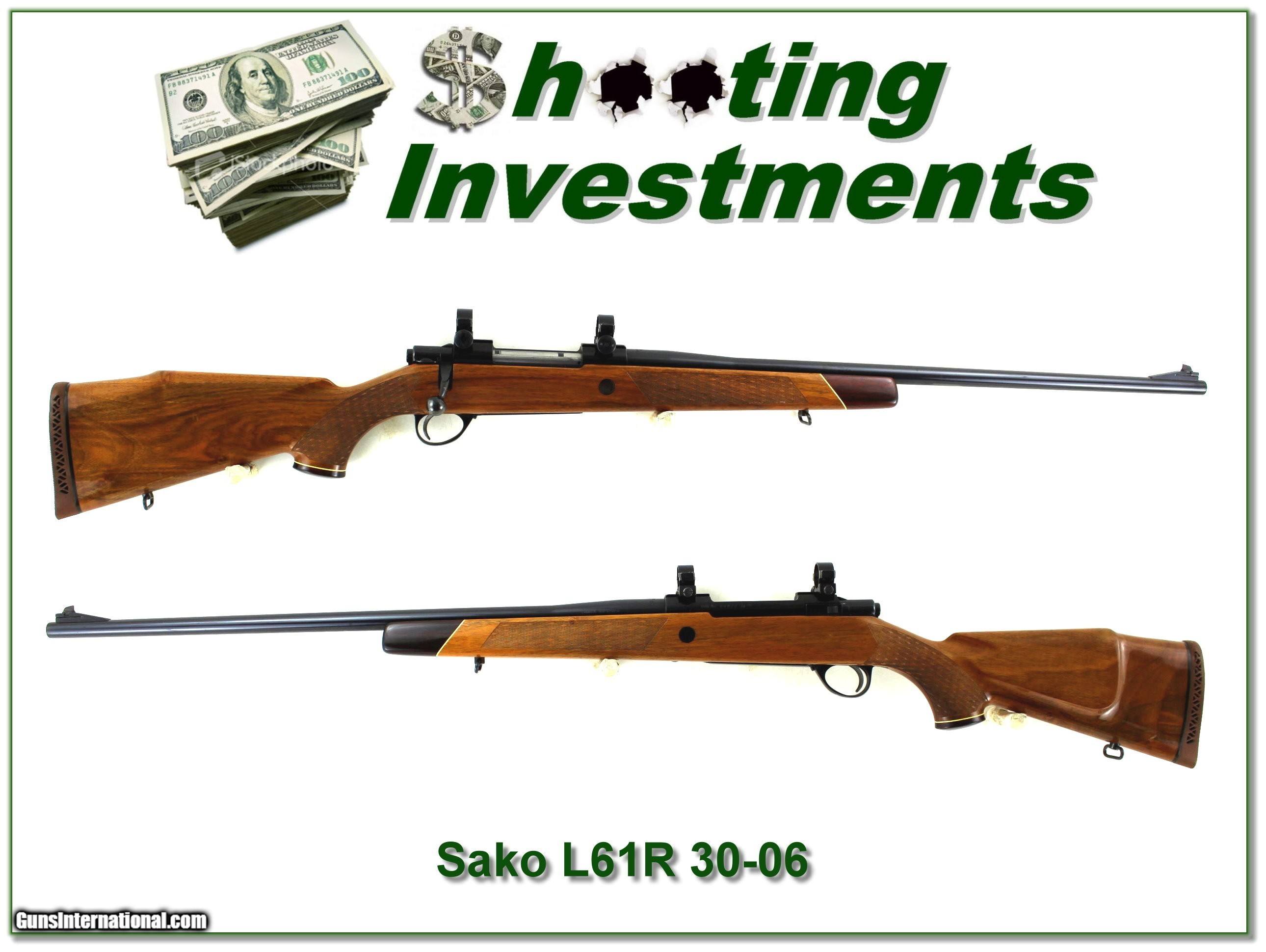 Description: This is a high-end Sako L61R Deluxe in 30-06. The metal is excellent and it has a 24in barrel with factory rings. The wood has beautiful colors and figure with some marks as seen. It will make a high-end hunting gun and these older Sako’s are known for superior accuracy! It call it a Shooting Investment. Shipping and insurance is $49. Please email me with any questions or larger pictures. (Consign your quality firearms with Shooting Investments for only 12%! Let me know if you have any you would like to sell!) 23-0900 Payment: Payment is by Money Order, Cashier’s Check or Personal Check. I can now also accept Credit Cards (MasterCard, Visa, Discover & American Express) with a 3% convenience fee. Shipping: The shipping charge will be listed in each description. It is $49 for most firearms. Some heavy guns or those insured for over $2000 will be higher. Shipments to Alaska and Hawaii are higher because air shipment is required. Most firearms are shipped on Tuesday and Thursday and usually in 5 days of receipt of payment. We package all shipments carefully and insure them. Optics are shipped Priority Mail and most other non-firearm shipments are shipped First Class. Returns: Our return policy is simple. If for any reason you are not pleased with your purchase, you may return your item for a full refund of purchase price. Ammunition cannot be returned. It is important to us that you are happy. Guns cannot be fired or dissembled before returning them and they must be returned in the same condition as received. Notification of a return must occur within 3 days of receipt at your dealer. Shipping, convenience and dealer fees are not refundable and are the responsibility of the buyer. Lay-a-way: If needed, we offer a 60 day lay-a-way option on most firearms. It is 1/3 now, 1/3 in 30 days and 1/3 in 60 days. Lay-a-way firearm sales are final and cannot be returned. If a lay-a-way is not completed the first payment cannot be refunded. Consigning your firearms with Shooting Investments: We will help you get top dollar for your firearms. While most local guns shops charge 20% or more, our fee is only 12% with a minimum of $75. At your local gun shop it might take months to sell. Selling on-line provides instant access to thousands of interested buyers. You won’t find any other on-line dealer willing to sell your firearms for only 12% or listing every gun on 3 separate s. Selling through an House typically costs the seller 15% and the buyer an addition 15% (so 30%) and you have to wait several months to sell and longer to receive funds. If properly priced, we will sell your firearms within a few weeks. Send us an email or give us a call and we’ll explain how easy it is for you to get top dollar. Trading: Trading for us is really just buying your gun to re-sell. If you have a gun you want to trade, please email a picture and we will let you know what we can give for it. You will always get more if we sell it for you on consignment. SOLD |