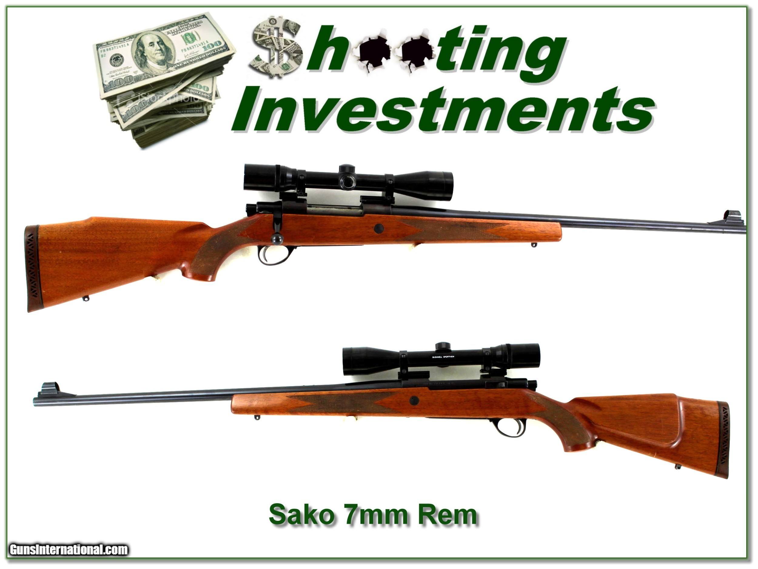 Description: Shooters and hunters, this is a Sako L61R Finnbear in the flat shooting 7mm Remington Magnum. It is in very good condition with scattered light marks from some use. The bore is bright and shiny, and it has an older Japan made Bushnell Gloss 4X scope. It will make a classic long rang big game gun and these older Sako’s are know for superior accuracy! I am selling this one on consignment and as such lay-a-way can’t be used. It does of course have the standard 3-day inspection. Shipping and insurance is $49. Please email me with any questions or larger pictures. (Consign your quality firearms with Shooting Investments for only 12%! Let me know if you have any you would like to sell!) 22-0932 Payment: Payment is by Money Order, Cashiers Check or Personal Check. I can now also accept Credit Cards (MasterCard, Visa, Discover & American Express) with a 3% convenience fee. Shipping: The shipping charge will be listed in each description. It is $49 for most long guns. Some heavy guns, over 48in boxes or those insured for over $2000 will be higher. Shipments to Alaska and Hawaii are higher because air shipment is required. Most firearms are shipped on Tuesday and Thursday and usually in 5 days of receipt of payment. We package all shipments carefully and insure them. Optics are shipped Priority Mail and most other non-firearm shipments are shipped First Class. Returns: Our return policy is simple. If for any reason you are not pleased with your purchase, you may return your item for a full refund of purchase price. Ammunition cannot be returned. It is important to us that you are happy. Guns cannot be fired or dissembled before returning them and they must be returned in the same condition as received. Notification of a return must occur with-in 3 days of receipt at your dealer. Shipping, convenience and dealer fees are not refundable and are the responsibility of the buyer. Lay-a-way: If needed, we offer a 60 day lay-a-way option on most firearms. It is 1/3 now, 1/3 in 30 days and 1/3 in 60 days. Lay-a-way firearm sales are final and if not completed the first payment cannot be returned. Consigning your firearms with Shooting Investments: We will help you get top dollar for your firearms. While most local guns shops charge 20% or more, our fee is only 12% with a minimum of $75. At your local gun shop it might take months to sell. Selling on-line provides instant access to thousands of interested buyers. You won’t find any other on-line dealer willing to sell your firearms for only 12% or listing every gun on 3 separate s. Selling through an House typically costs the seller 15% and the buyer an addition 15% (so 30%) and you have to wait several months to sell and longer to receive funds. If properly priced, we will sell your firearms in a few weeks. Send us an email or give us a call and we’ll explain how easy it is for you to get top dollar. Trading: Trading for use is really just buying your gun to re-sell. If you have a gun you want to trade, please email a picture and we will let you know what we can give or it. You will always get more if we sell it for you on consignment. Help for California Buyers: We are happy to ship to California. It is the buyer’s responsibility to make sure any item you buy is legal in your state. We are also happy to help with your purchase of a firearm from someone other than us. If you see a gun you would like to buy but the seller can’t or won’t ship to California they can ship to use and we’ll then ship it to your California dealer. The cost for this service is only $30 + shipping. Let us know if we can help! SOLD |