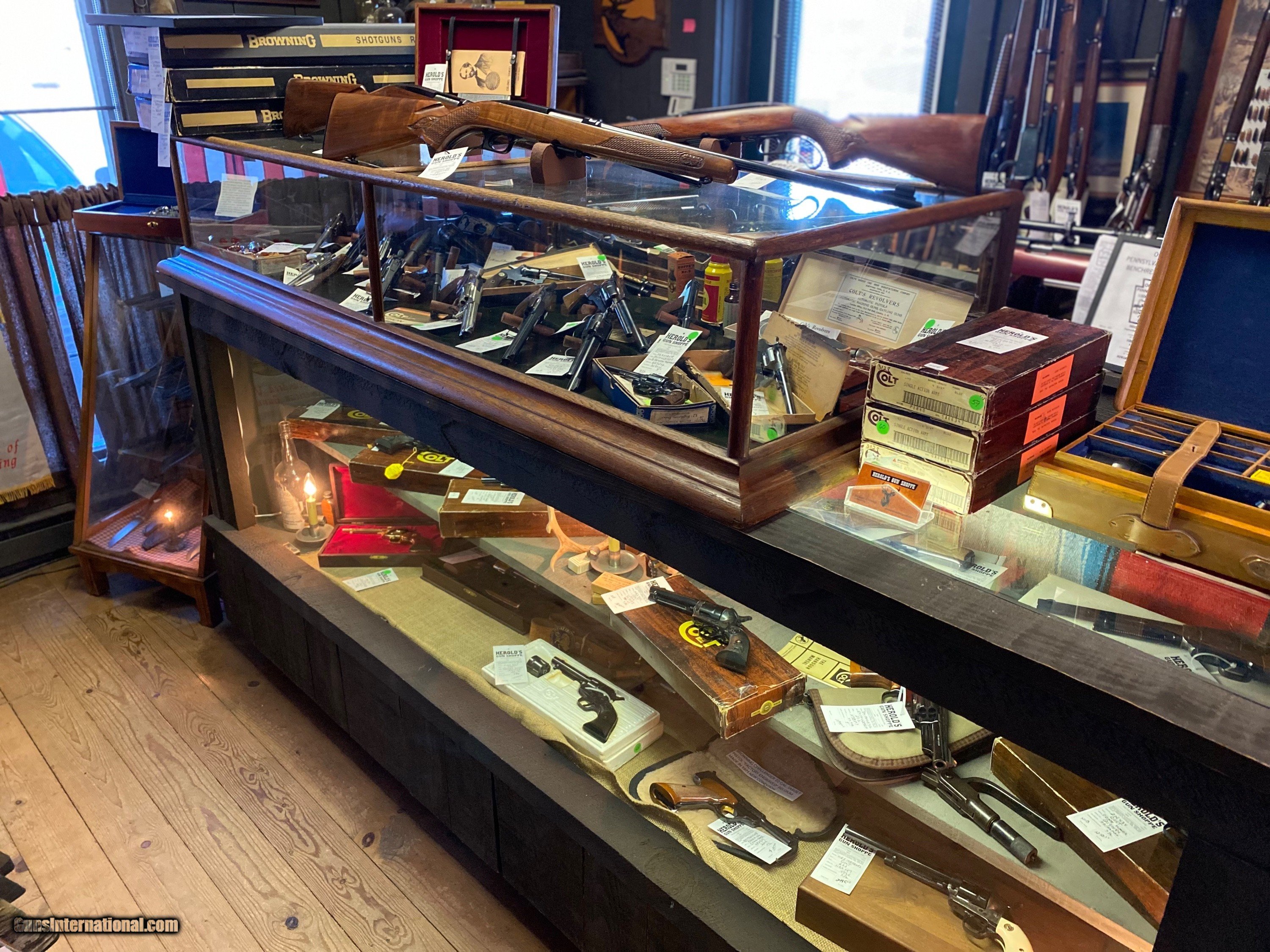 About Us: We are an “Old School” gun store with a vintage Western style. We do carry various modern pistols, revolvers and long guns. However, our specialty is vintage firearms including bolt action, lever action and semi automatic rifles. For example, we usually have at least two or three M-1 Garand rifles at any given moment. Other times we may have one or two Springfield 1903 rifles. Also in stock are a few dozen lever action rifles available in different calibers & barrel lengths. Lastly, we have a wide variety of Colt Single Action Army revolvers in different calibers and barrel lengths. (NOTE: we try & remove items from Guns International ASAP if they are sold through our retail location, but there may be a slight delay in doing so)