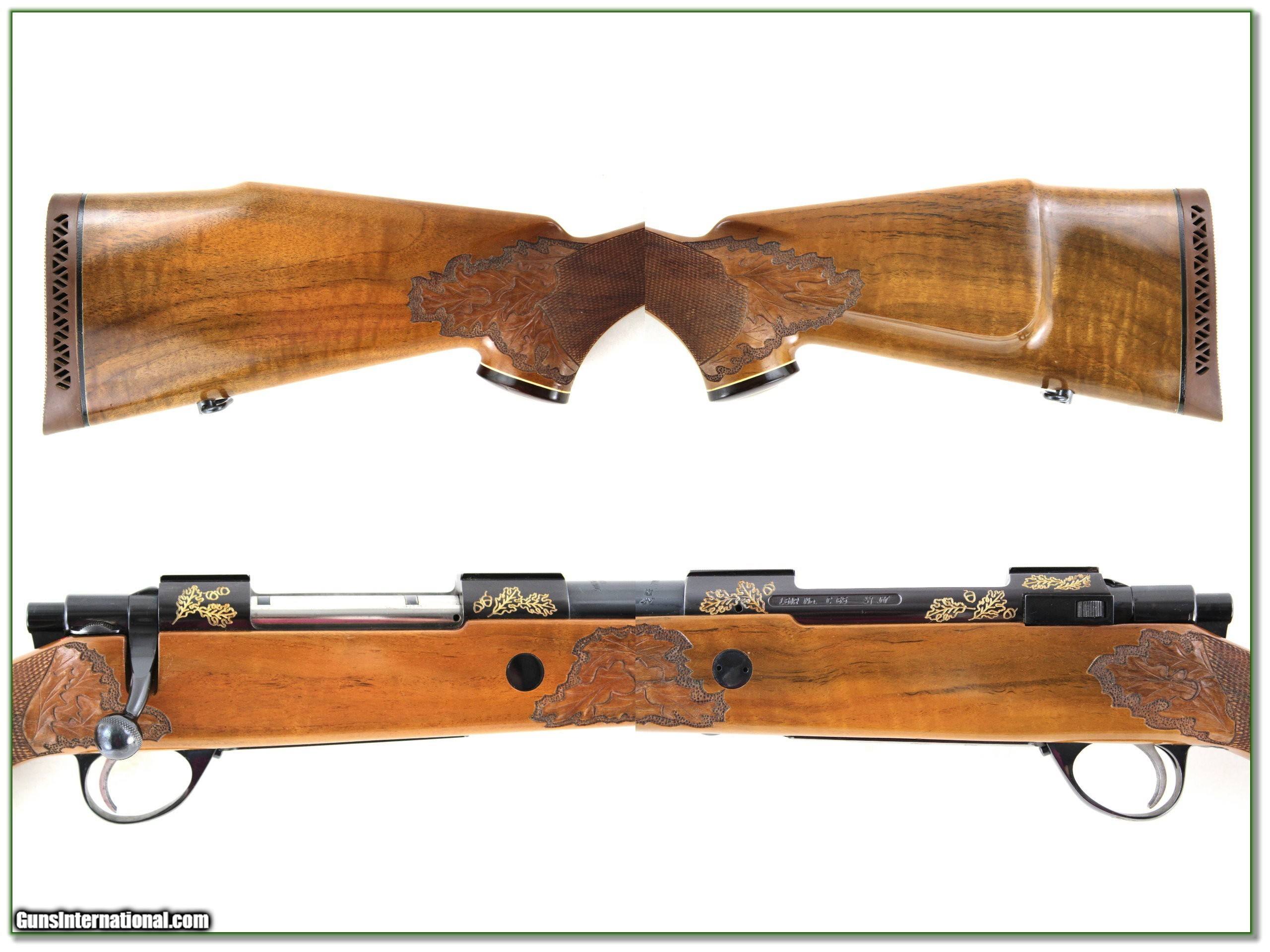 Description: Collectors and hunters, this is a beautiful Sako Super Deluxe 7mm Remington Magnum. It is the Golden Anniversary model with engraved receiver and Anniversary floorplate. The wood is honey blond with nice figure and factory carving. The blue is excellent and from the bolt face it looks unfired. I find a few marks on the wood I expect more from storage than use. It will make a nice addition to your collection or be a high-end hunting gun! Shipping and insurance is $59. Please email me with any questions or larger pictures. (Consign your quality firearms with Shooting Investments for only 12%! Let me know if you have any you would like to sell!) 24-0834 Payment: Payment is by Money Order, Cashier’s Check or Personal Check. I can now also accept Credit Cards (MasterCard, Visa, Discover & American Express) with a 3% convenience fee. Shipping: The shipping charge will be listed in each description. It is $49 for most firearms. Some heavy guns or those insured for over $2000 will be higher. Shipments to Alaska and Hawaii are higher because air shipment is required. Most firearms are shipped on Tuesday and Thursday and usually in 5 days of receipt of payment. We package all shipments carefully and insure them. Optics are shipped Priority Mail and most other non-firearm shipments are shipped First Class. Returns: Our return policy is simple. If for any reason you are not pleased with your purchase, you may return your item for a full refund of purchase price. Ammunition cannot be returned. It is important to us that you are happy. Guns cannot be fired or dissembled before returning them and they must be returned in the same condition as received. Notification of a return must occur within 3 days of receipt at your dealer. Shipping, convenience and dealer fees are not refundable and are the responsibility of the buyer. Lay-a-way: If needed, we offer a 60 day lay-a-way option on most firearms. It is 1/3 now, 1/3 in 30 days and 1/3 in 60 days. Lay-a-way firearm sales are final and cannot be returned. If a lay-a-way is not completed the first payment cannot be refunded. Consigning your firearms with Shooting Investments: We will help you get top dollar for your firearms. While most local guns shops charge 20% or more, our fee is only 12% with a minimum of $75. At your local gun shop it might take months to sell. Selling on-line provides instant access to thousands of interested buyers. You won’t find any other on-line dealer willing to sell your firearms for only 12% or listing every gun on 3 separate s. Selling through an House typically costs the seller 15% and the buyer an addition 15% (so 30%) and you have to wait several months to sell and longer to receive funds. If properly priced, we will sell your firearms within a few weeks. Send us an email or give us a call and we’ll explain how easy it is for you to get top dollar. Trading: Trading for us is really just buying your gun to re-sell. If you have a gun you want to trade, please email a picture and we will let you know what we can give for it. You will always get more if we sell it for you on consignment. SOLD |