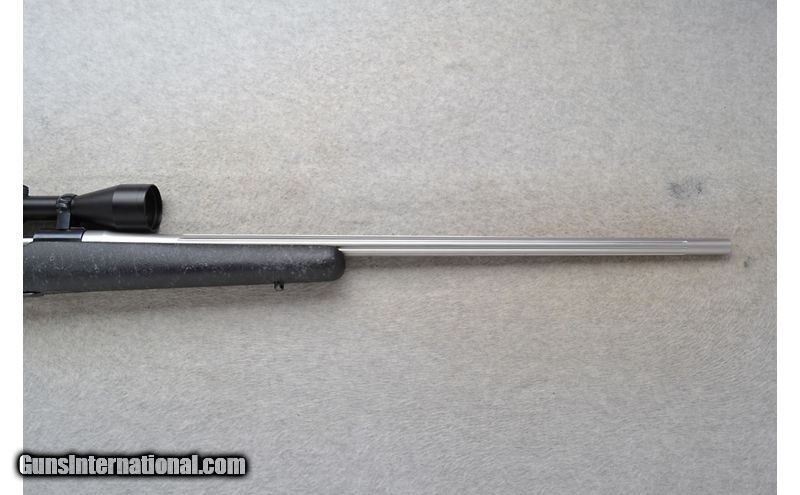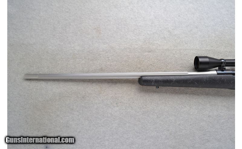 Description: This Sako Model L691 is a right hand bolt action rifle in .300 Win. Mag Cal. It has a 26 inch fluted stainless steel barrel. It is outfitted with a Kahles 3-9x42 Scope. No iron sights. The butt stock is a textured grip black polymer pistol grip with grey webbing and a raised cheekpiece. The forearm is a textured grip black polymer with grey webbing. It has a grooved trigger. .300 Winchester Magnum SOLD Chambers: Internal magazine with a hinged floorplate. Metal Condition: Very good. Bore Condition: Excellent. Barrels: 26 inch fluted stainless steel. Triggers: Grooved. Stock Dimensions: LOP 13 5/8 inches. Fore End: Textured grip black polymer with grey webbing. Butt Pad: H-S Precision black rubber recoil pad. Weight: 9 lb. 6 oz. Sights: Kahles 3-9x42 Scope. No iron sights. Item Location: Richfield, WI |
