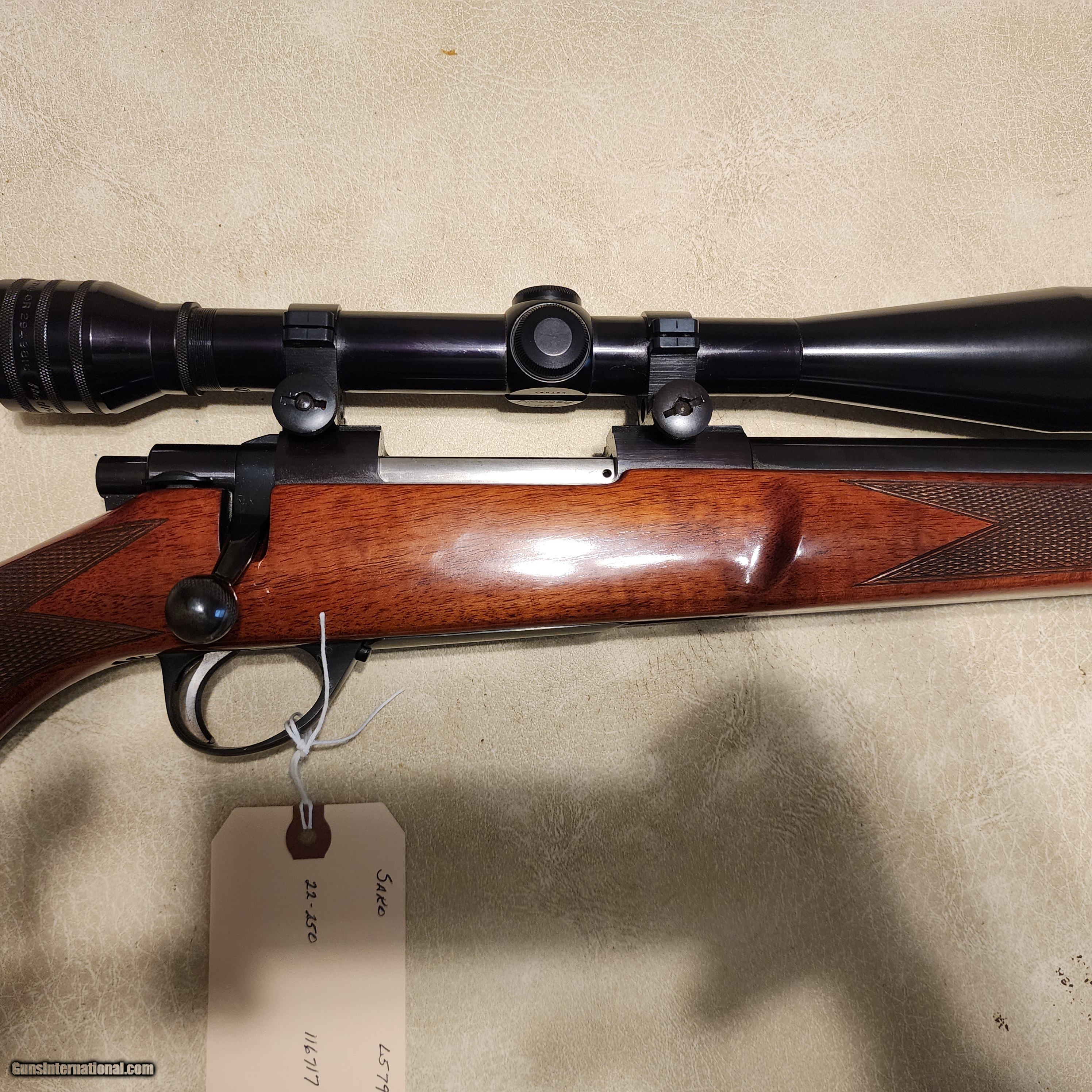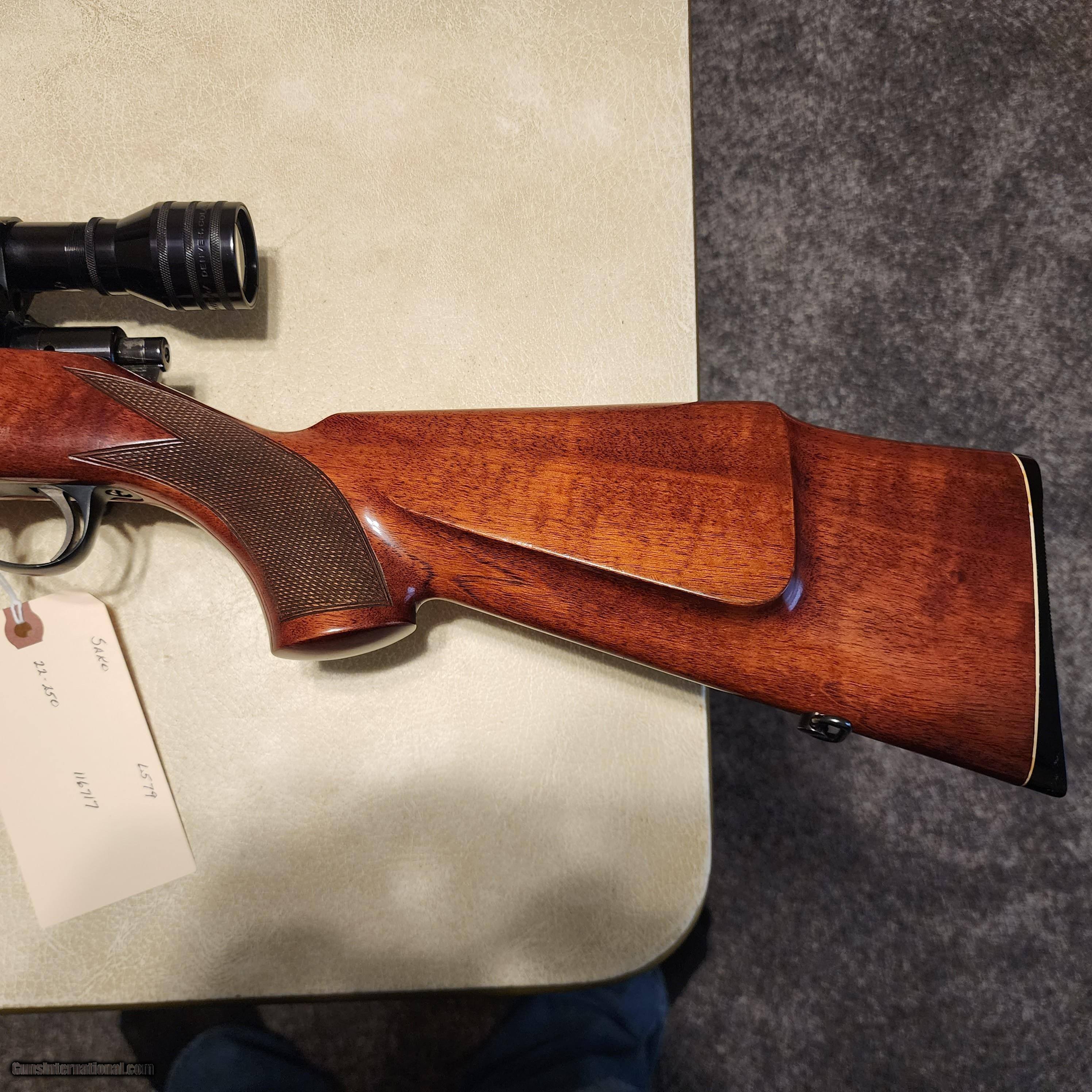 Description: In very good condition. Has a scope. Heavy bull barrel. Please add $75 for shipping and insurance. SOLD Rifle Caliber: .22-250 Remington Manufacturer: Sako Model: LS579 Condition: Very good Metal Condition: Very good Wood Condition: Very good Bore Condition: Very good Action: Bolt Action |