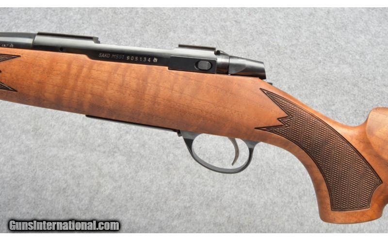 Description: Sako M591 Carbine with Mannlicher stock. Excellent Stoeger Import. SOLD Caliber Info: 308 Winchester Metal Condition: Excellent Wood Condition: Scratch forward the forearm band on the right otherwise , excellent. Bore Condition: Bright and Sharp Barrels: 18.5 Inch Stock: Square Knob Pistol Grip , Checkered Walnut Stock Dimensions: 14 " LOP Fore End: Full length forearm Butt Pad: Sako Recoil Pad Weight: 7 Lbs 13 Ozs Sights: Open Sights Extras: Factory Carton Item Location: Buda, TX |