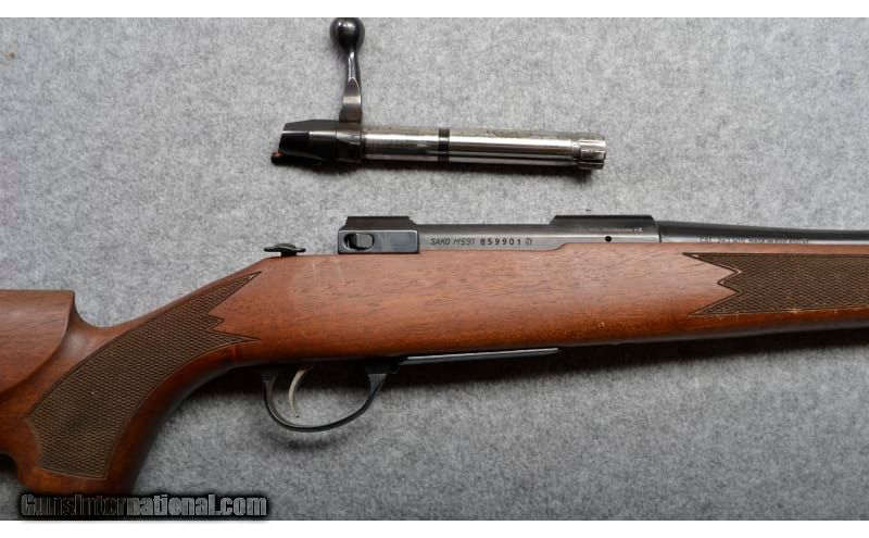 Description: Pre-owned Sako M591 Left Handed bolt action rifle chambered in .243 Winchester, 22" barrel, internal box magazine w/hinged floor plate, wood stock w/checkered pistol grip and forearm. .243 Winchester SOLD Metal Condition: Excellent Condition Wood Condition: Excellent Condition Bore Condition: Bright and shiny with excellent rifling Barrels: 22 Inches. Stock Dimensions: LOP 14 Weight: 7 lbs. Item Location: Springfield, OR |