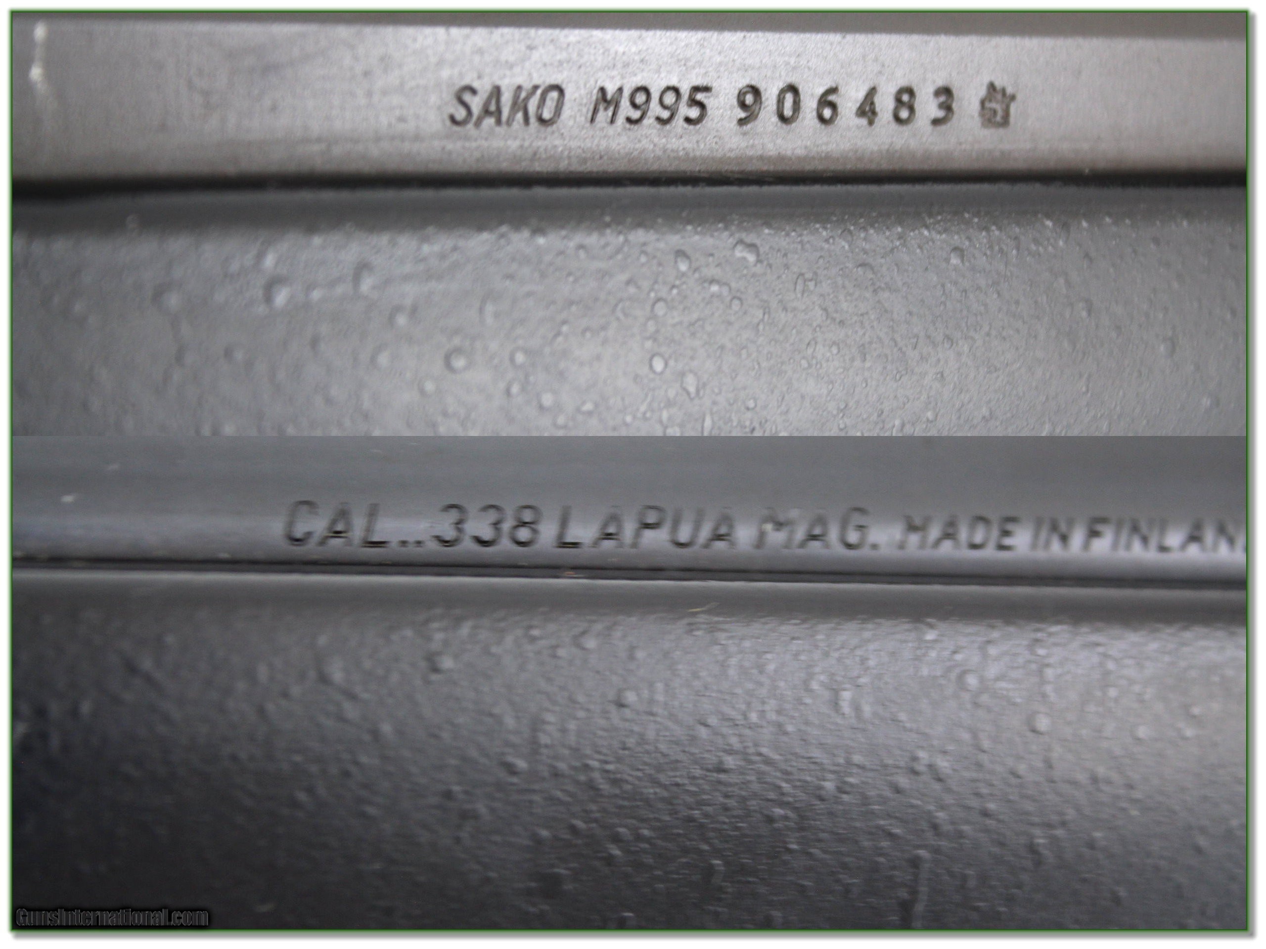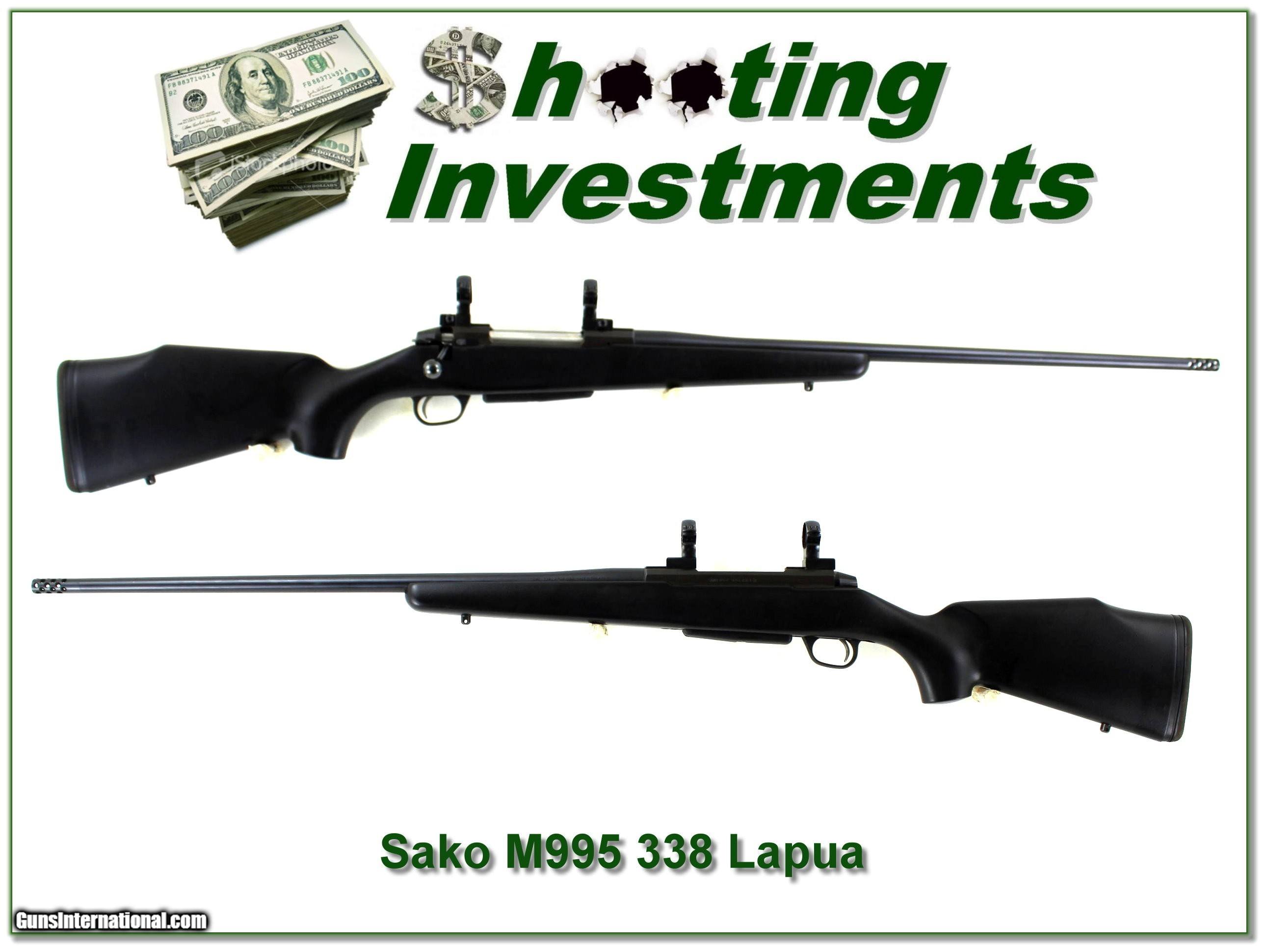 Description: This is an excellent condition Sako M995 in 338 Lapua Magnum. It has a 26in barrel including the break. It will make an excellent extreme long range hunting gun. It is a real Shooting Investment. Shipping and insurance is $49. Please email me with any questions or larger pictures. (Consign your quality firearms with Shooting Investments for only 12%! Let me know if you have any you would like to sell!) 23-0544 Payment:Payment is by Money Order, Cashier’s Check or Personal Check. I can now also accept Credit Cards (MasterCard, Visa, Discover & American Express) with a 3% convenience fee. Shipping: The shipping charge will be listed in each description. It is $49 for most firearms. Some heavy guns or those insured for over $2000 will be higher. Shipments to Alaska and Hawaii are higher because air shipment is required. Most firearms are shipped on Tuesday and Thursday and usually in 5 days of receipt of payment. We package all shipments carefully and insure them. Optics are shipped Priority Mail and most other non-firearm shipments are shipped First Class. Returns: Our return policy is simple. If for any reason you are not pleased with your purchase, you may return your item for a full refund of purchase price. Ammunition cannot be returned. It is important to us that you are happy. Guns cannot be fired or dissembled before returning them and they must be returned in the same condition as received. Notification of a return must occur within 3 days of receipt at your dealer. Shipping, convenience and dealer fees are not refundable and are the responsibility of the buyer. Lay-a-way: If needed, we offer a 60 day lay-a-way option on most firearms. It is 1/3 now, 1/3 in 30 days and 1/3 in 60 days. Lay-a-way firearm sales are final and cannot be returned. If a lay-a-way is not completed the first payment cannot be refunded. Consigning your firearms with Shooting Investments: We will help you get top dollar for your firearms. While most local guns shops charge 20% or more, our fee is only 12% with a minimum of $75. At your local gun shop it might take months to sell. Selling on-line provides instant access to thousands of interested buyers. You won’t find any other on-line dealer willing to sell your firearms for only 12% or listing every gun on 3 separate s. Selling through an House typically costs the seller 15% and the buyer an addition 15% (so 30%) and you have to wait several months to sell and longer to receive funds. If properly priced, we will sell your firearms within a few weeks. Send us an email or give us a call and we’ll explain how easy it is for you to get top dollar. Trading: Trading for us is really just buying your gun to re-sell. If you have a gun you want to trade, please email a picture and we will let you know what we can give for it. You will always get more if we sell it for you on consignment. SOLD |
