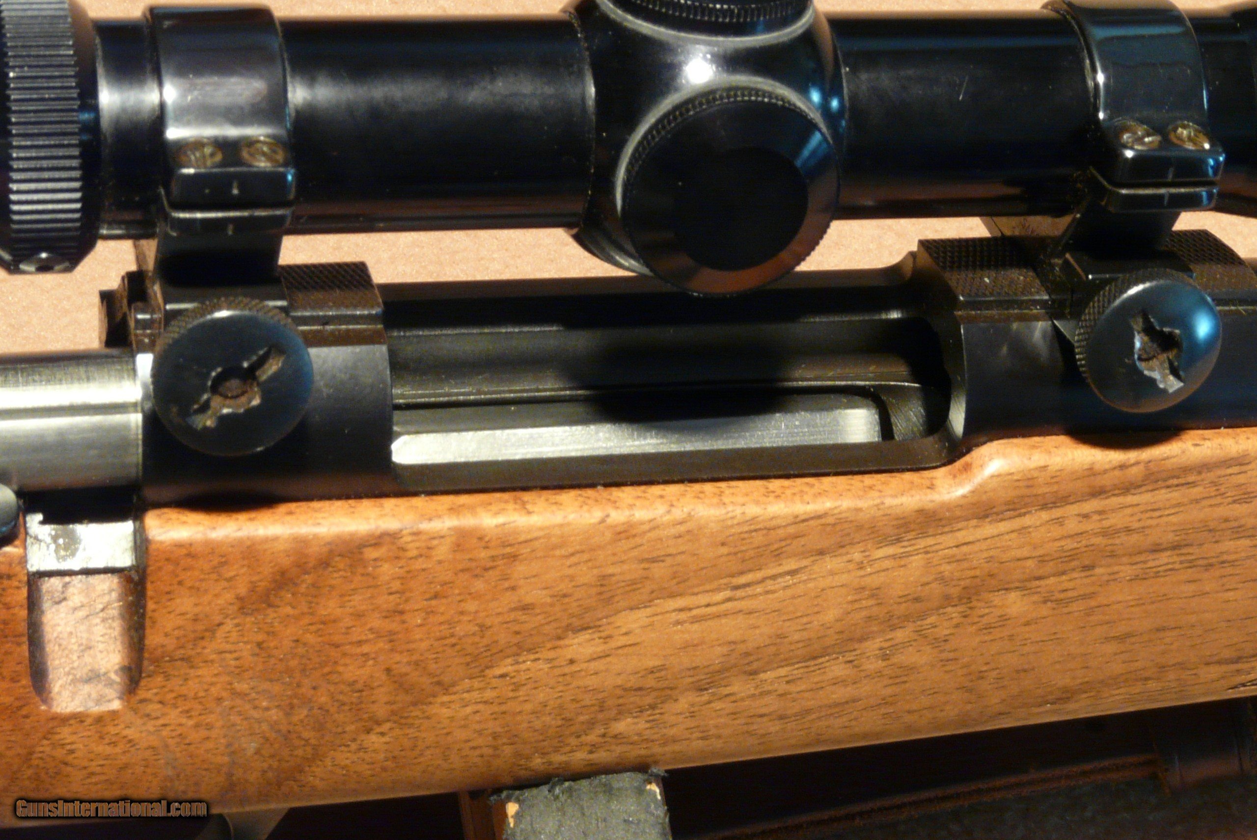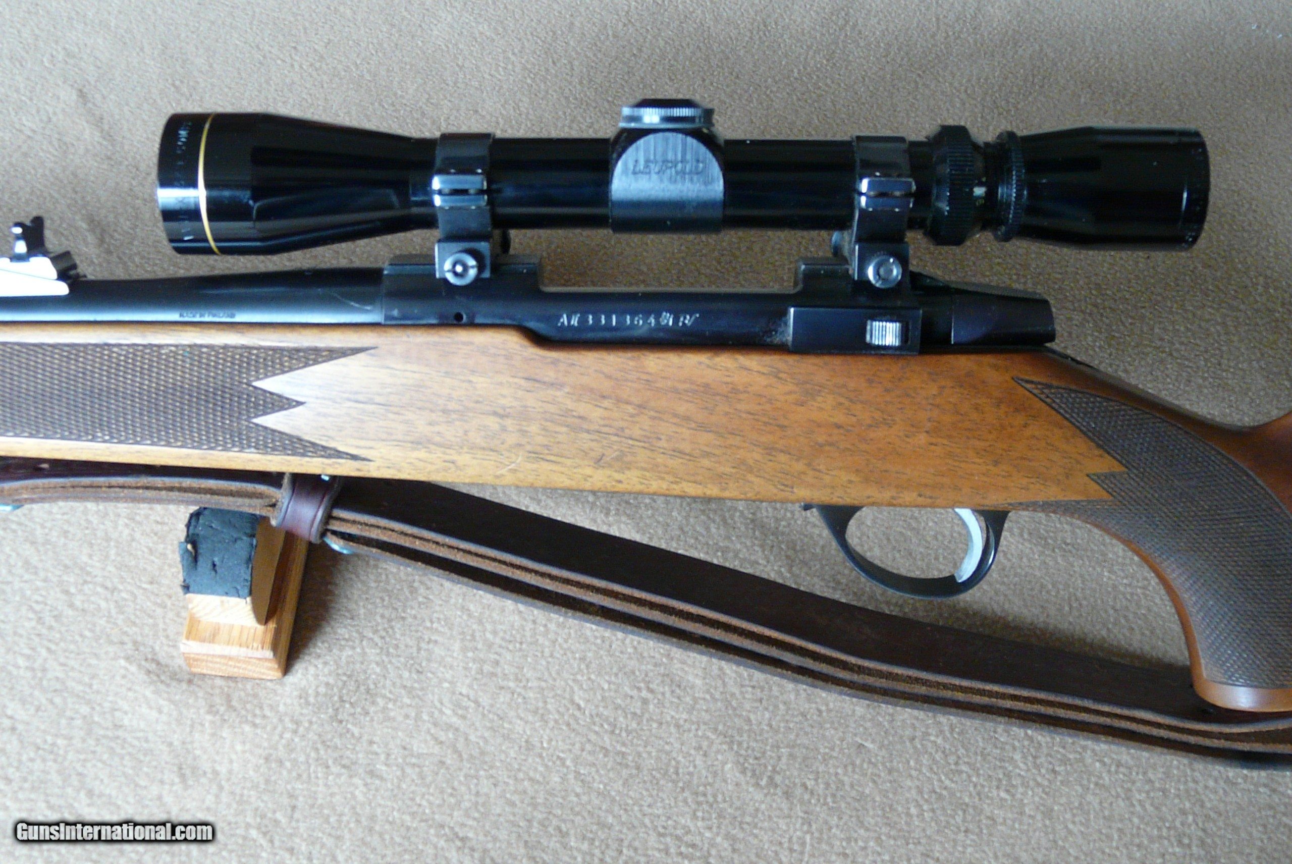 Description: With 20" Barrel and full length stock, in 243 caliber, in perfect condition, looks never hunted, with Leupold 3X9 compact, perfect combo all set up! Check the pics, perfect bolt face, may be unfired ? A great Handling rifle for deer sized game, hard to find like this! A great collector also. Shipped in Hard case in Box, $75.00 ! SOLD |