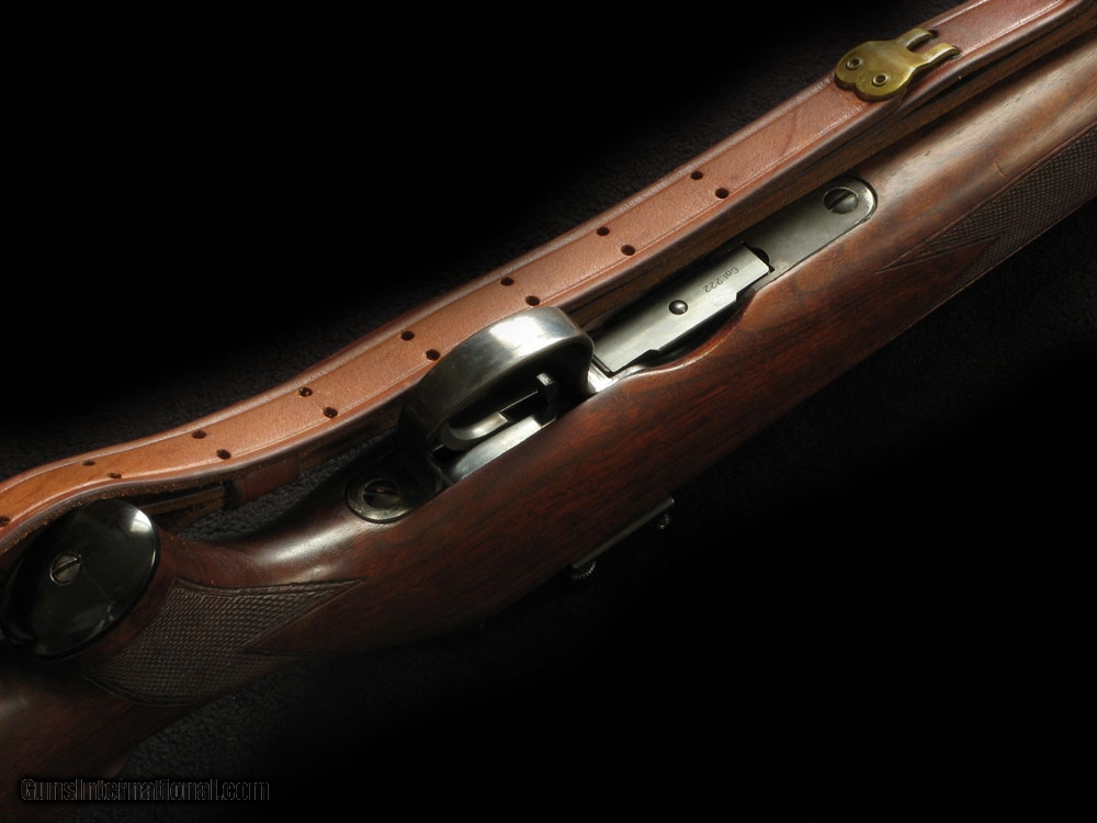 Description: Top rifle in photos. Rare early Riihimaki sold by Marlin as the 322 model, with custom unsighted 24" extra heavy barrel good bore no d&t. Very good overall condition. Made in the 50s. Stock looks like a Winchester 43 delux pattern but it's the correct Marlin with the bullseye and Marlin plate, very nicely oil refinished. Good quality sling fitted Crisp trigger. These rifles are known for superb accuracy. 9lbs SOLD |