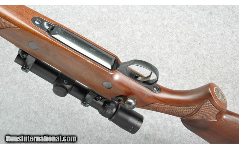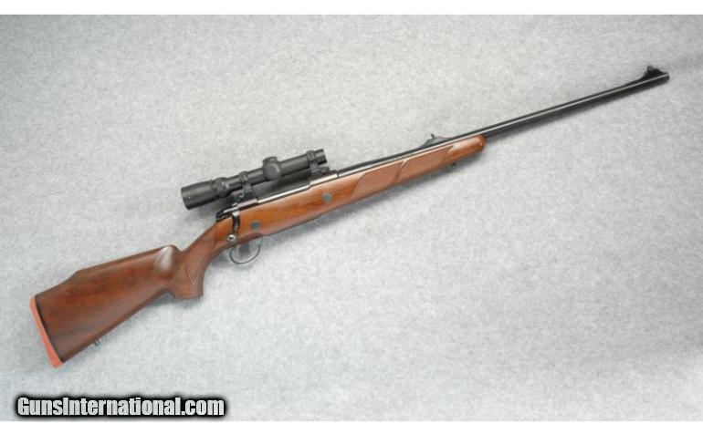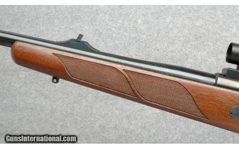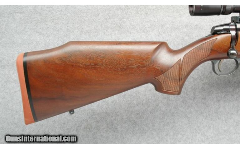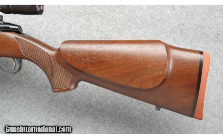 Description: SOLD Caliber Info: 375 H&H Metal Condition: Freckling on the magazine floorplate otherwise excellent bluing Wood Condition: Couple minor handling marks Bore Condition: Bright, Sharp Barrels: 25 Inch Stock: Checkered pistol grip with raised cheek and right palm swell Stock Dimensions: 14 " LOP Butt Pad: Rubber recoil pad Weight: 9 Lbs 4 Ozs Sights: Open Rear Sight, Ramped Front, Leupold Mk IV, 1.5-5X 20mm Item Location: Buda, TX |