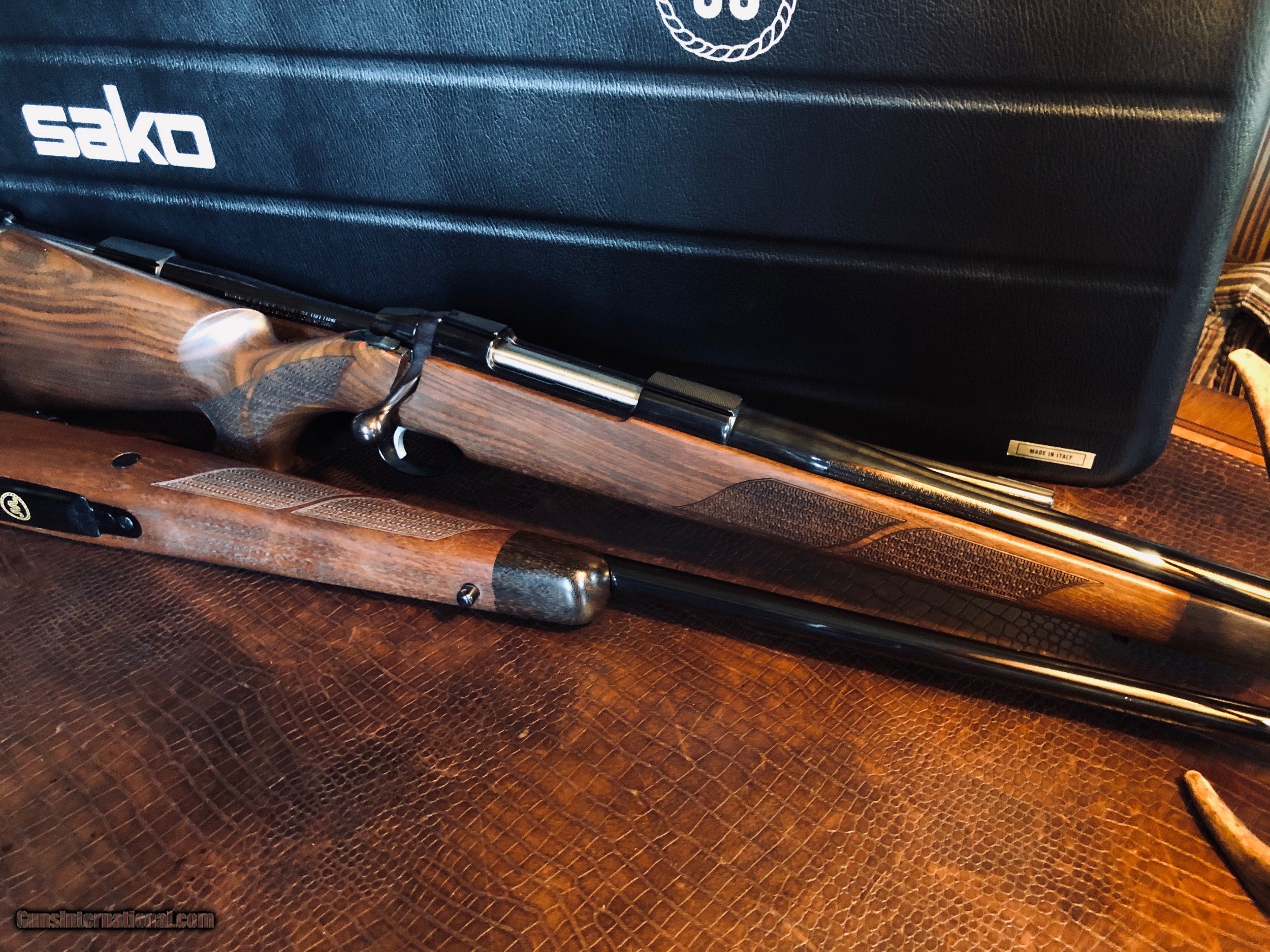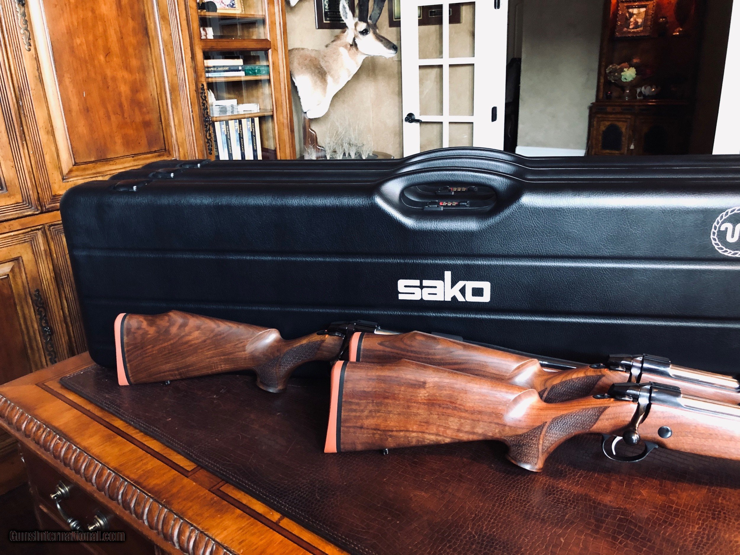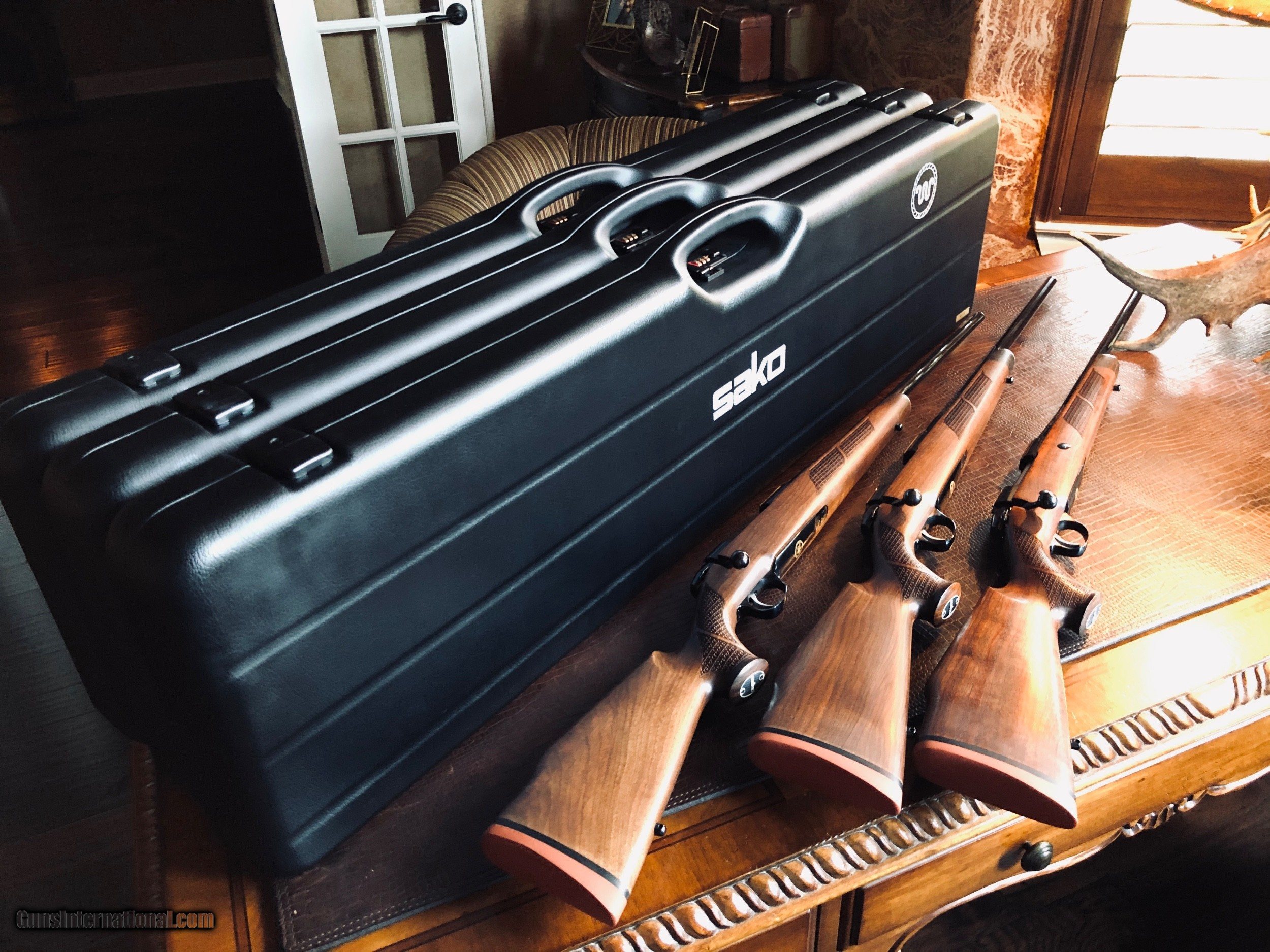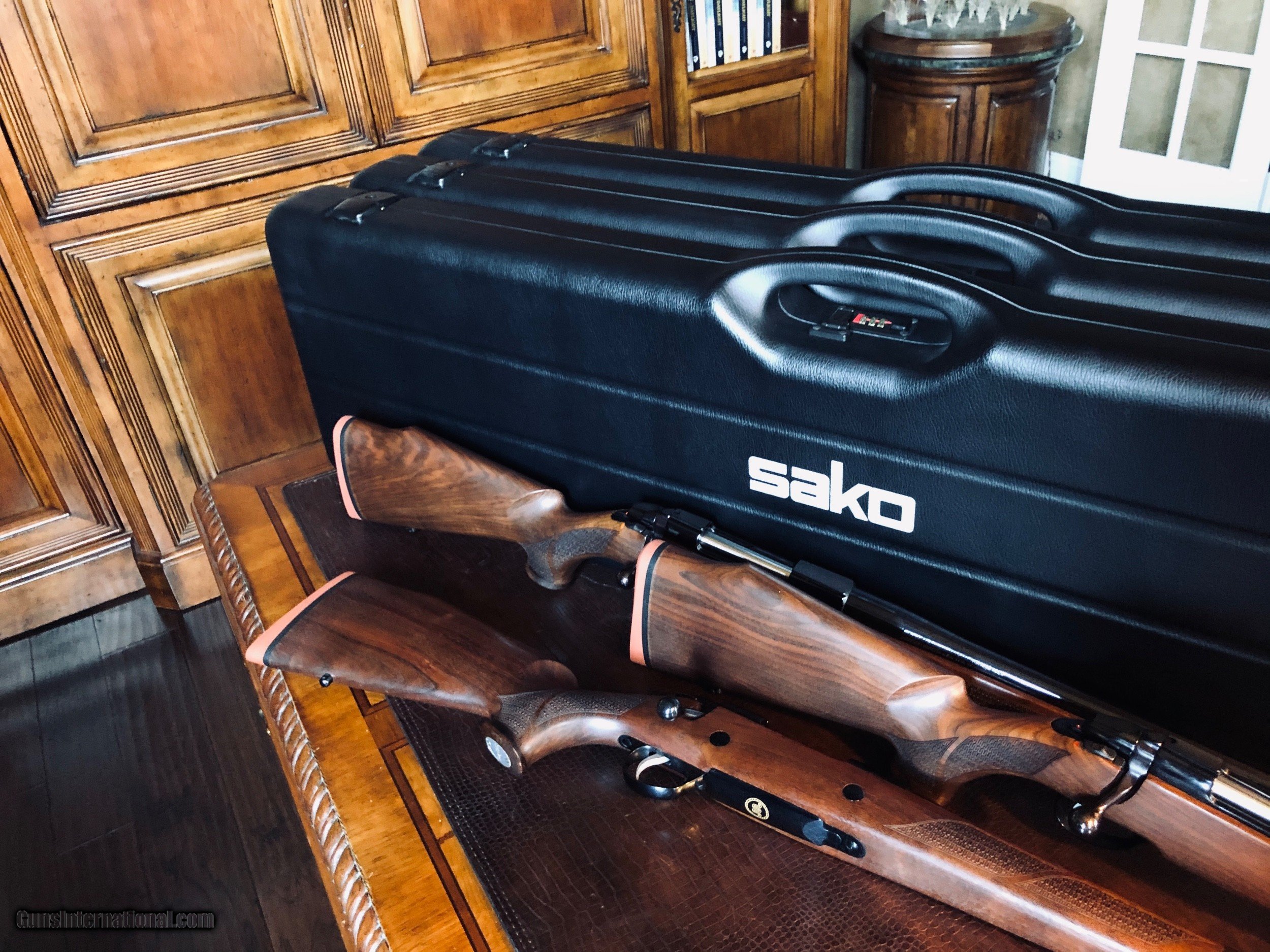 Description: SAKO Model 75 - King Ranch Edition Trio Set - 30-06, 270 Win - 300 WSM - Cases - Boxes - UNFIRED NEW - All Paperwork - Little Tiny Running W King Ranch Checkering - VERY COOL - these guns would look amazing in a gun room - finished by Beretta and added to their King Ranch lineup of guns (King Ranch Shotguns) - I have never seen another set of these rifles much less in new unfired condition. The pictures do these guns no justice -they're are super cool in the right calibers in the right condition. King Ranch Logos on Floorplate and Cases - the checkering is my favorite thing... *****SPECIAL NOTE***** 1. I am a reasonable man – I encourage you to make reasonable offers on my listings. At times, there is some flexibility in pricing – other times there is not. I have been collecting guns since 1988 – so I have amassed quite a covey of what I consider to be some very fine guns and some utility guns. Feel free to call me, unlike most gun dealers – I am easy to talk to and will answer the phone on weekends and late evenings (not after 9PM CST). 2. I DO NOT ACCEPT TRADES 3. I do provide LAY-A-WAY plan, please inquire about my terms if you have a need – glad to do it when I can. 4. My collection consists of many guns that were bought from individuals – that means **I BUY GUNS** but I only buy clean used guns with collectibility. In particular - **I BUY SHOTGUNS** 5. ALL OF MY TRANSACTIONS ARE DONE THROUGH MY FFL with whom I have a very solid relationship. If you buy a guns from me, you’ll pay them, they will ship to your FFL of choice and all dealings will be with them post receipt of funds. They are a high end boutique gun dealer in the Texas Hill Country and can accommodate the entire transaction. If you live in Texas and want to drive to see one of my guns, reach out to me to discuss making an appointment with my FFL – I do not show guns at my home nor do I meet guys at public locations for viewings or sales. ALL GUNS ARE LEGALLY TRANSFERRED through my FFL – there are NO EXCEPTIONS. 6. Certified funds are preferred – if you send a personal check for payment the FFL ships one week after receipt. Certified funds payments – shipments are done next business day. NO CREDIT CARD payments are accepted. 7. I encourage you to shoot the guns you buy from me – so during your 3 day inspection – shoot the gun. Make sure it is operating in the manner you expected. If you are not happy – return the gun for a full refund except shipping costs. SOLD |