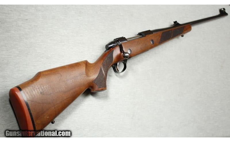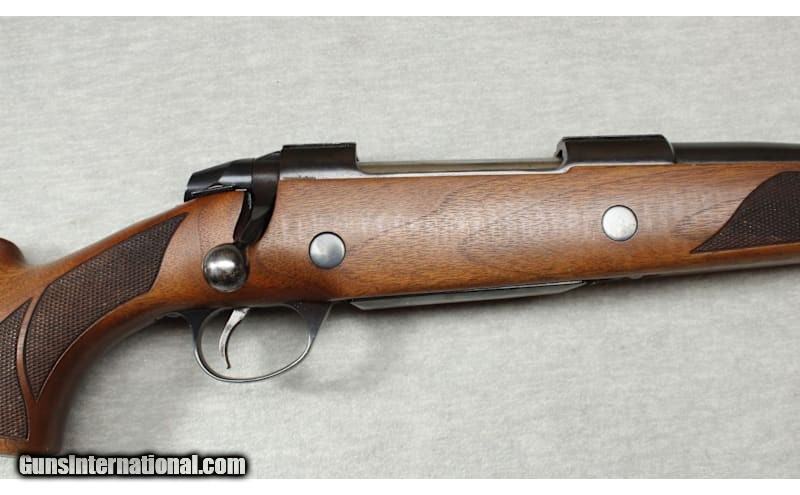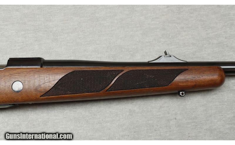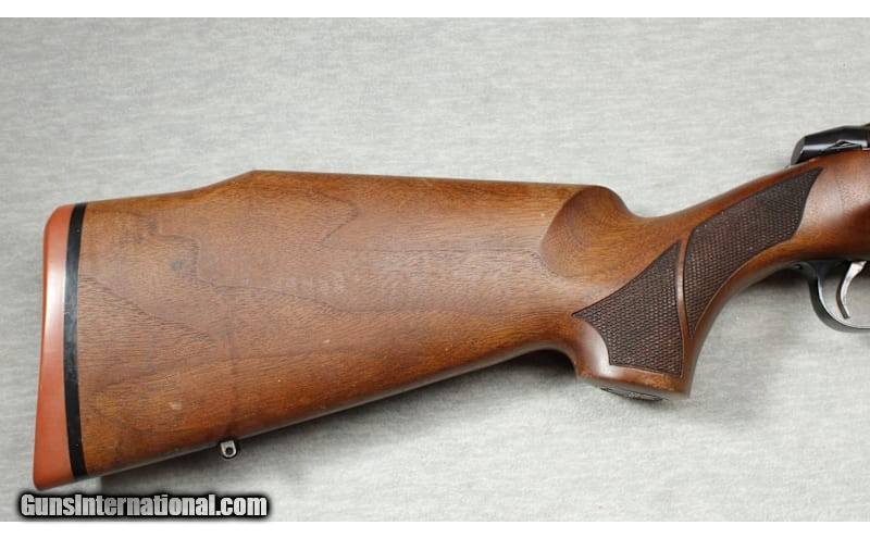 Description: Excellent condition, light finish wear, few small nicks & scratches. Bolt action magnum hunting rifle with 24" barrel, blued metal, smooth action & crisp trigger. Checkered natural finish hardwood stock with decorative grip cap, RH cheek rest, Sako factory recoil pad, and sling swivel mounts. 7mm Remington Magnum SOLD Chambers: Bolt action Metal Condition: Excellent Wood Condition: Excellent Bore Condition: Bright Barrels: 24 Triggers: Factory Stock Dimensions: 14" LOP Fore End: Checkered Butt Pad: Sako pad Sights: "Square notch rear, hooded bead front sights and receiver grooved for scope mounting Item Location: La Vista, NE |