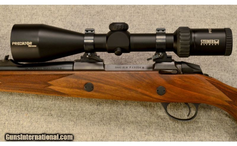 Description: This is a pre-owned Sako model 85 Bavarian in .30-06 Springfield with a Steiner Predator Xtreme riflescope on Talley mounts SOLD Caliber Info: .30-06 Metal Condition: Very good with a few small scratches Wood Condition: Very good with a few small scratches Bore Condition: Clean with bright lands Barrels: 22 Stock: Checkered high grade walnut with rosewood pistol grip cap Stock Dimensions: 14 1/2" LOP Fore End: Schnabel-style checkered high grade walnut with rosewood tip Butt Pad: Sako pad Weight: 9.25 with scope Sights: Steiner Predator Xtreme 3-12x56mm riflescope on Talley mounts Item Location: Glendale, AZ |