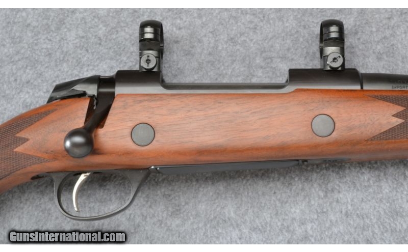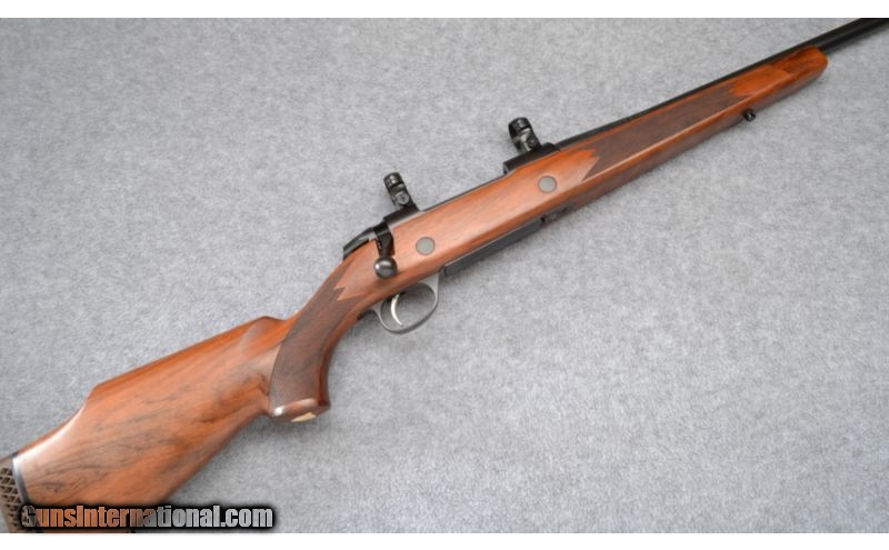 Description: Excellent throughout showing little to no use. Complete with Leupold rings. No box. SOLD Manufacturer: S/N D59XXX Caliber Info: .270 Win. Metal Condition: Excellent Wood Condition: Excellent Bore Condition: Excellent Barrels: 22 1/2 Triggers: Factory Stock: Checkered Walnut Pistol Grip Stock Dimensions: 14" LOP Fore End: Checkered Walnut with Contrasting Cap Butt Pad: Brown Vented Rubber Weight: 7 1/2 LB Sights: None - Leupold Rings Included Item Location: Wheeling, WV |
