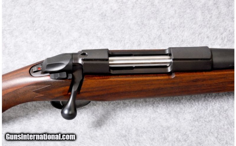 Description: SOLD Caliber Info: .308 Winchester. Metal Condition: Blued receiver, 2-position right-hand safety, cocking indicator, straight bolt handle, and left-side bolt release. Receiver has integral Sako scope bases. Wood Condition: Excellent. Bore Condition: Excellent. Barrels: 21" heavy fluted barrel with a barrel band sling stud. Triggers: Serrated. Stock: Dark, hand rubbed oil finish walnut stock with a checkered pistol grip, right-hand cheek piece, grip cap insert and sling stud. Stock Dimensions: LOP: 14 5/8". Fore End: Checkered fore end with a mahogany fore end tip. Butt Pad: Rubber recoil pad. Weight: 7 lbs. 4 oz. Sights: Ramped and hooded extra large white dot front sight and single standing leaf rear sight with a white post. Extras: Comes with the original box. Item Location: Kansas City, KS |