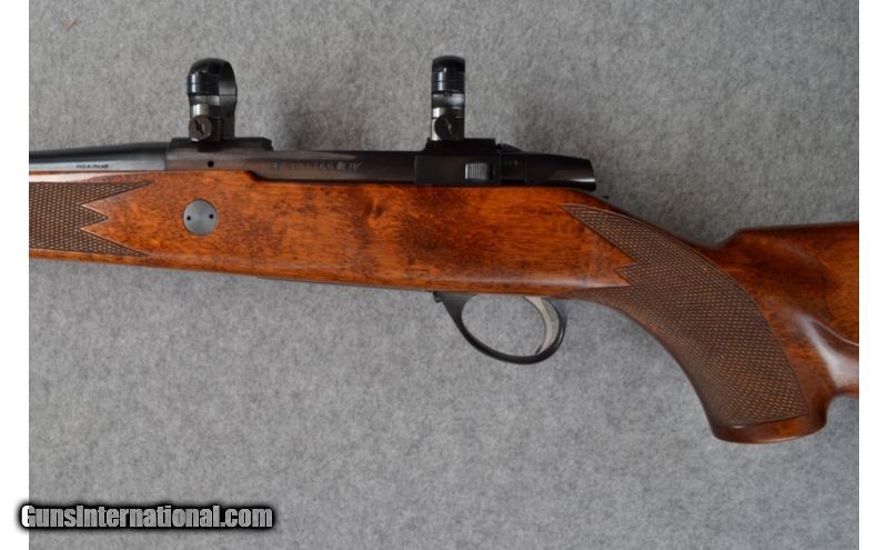 Description: SOLD Manufacturer: S/N 327766 Caliber Info: .308 WIN Metal Condition: Very good condition with slight bluing wear noted on barrel just forward of receiver. Wood Condition: Very good condition with several light handling marks. Bore Condition: Very Good Condition. Bright and shiny. Good rifling. No pitting or rust noted. Barrels: 23 Inches. Triggers: LOP - 14 1/2 Inches. Stock: Highly figured and checkered walnut, gloss finish. Monte Carlo cheekpiece. Butt Pad: Pachmayr White Line rubber recoil pad. Weight: 7 Lbs 8 Oz as shown Sights: No sights, but drilled and tapped for scope bases. Includes scope bases and rings as shown. Item Location: Lone Tree, CO |