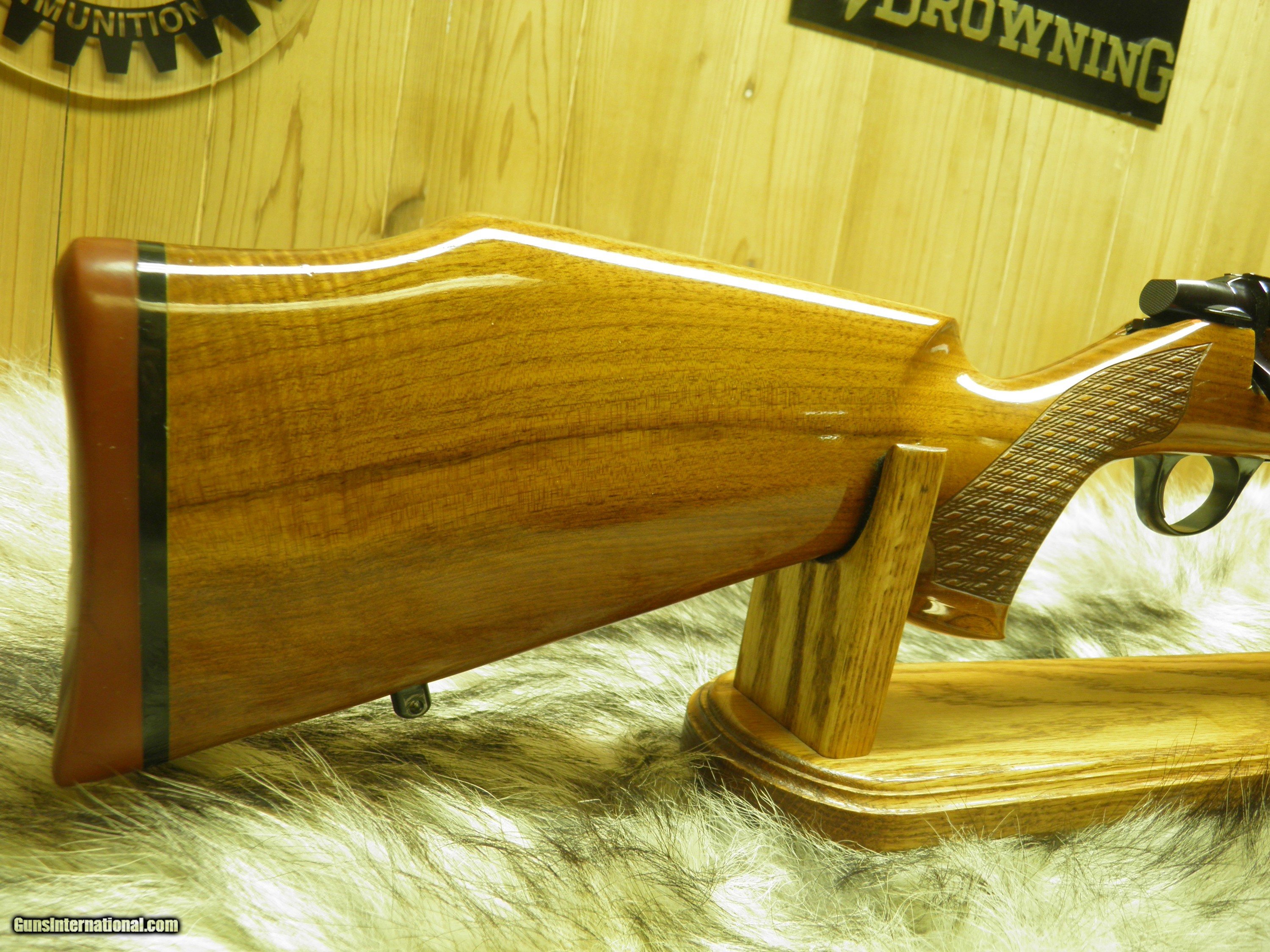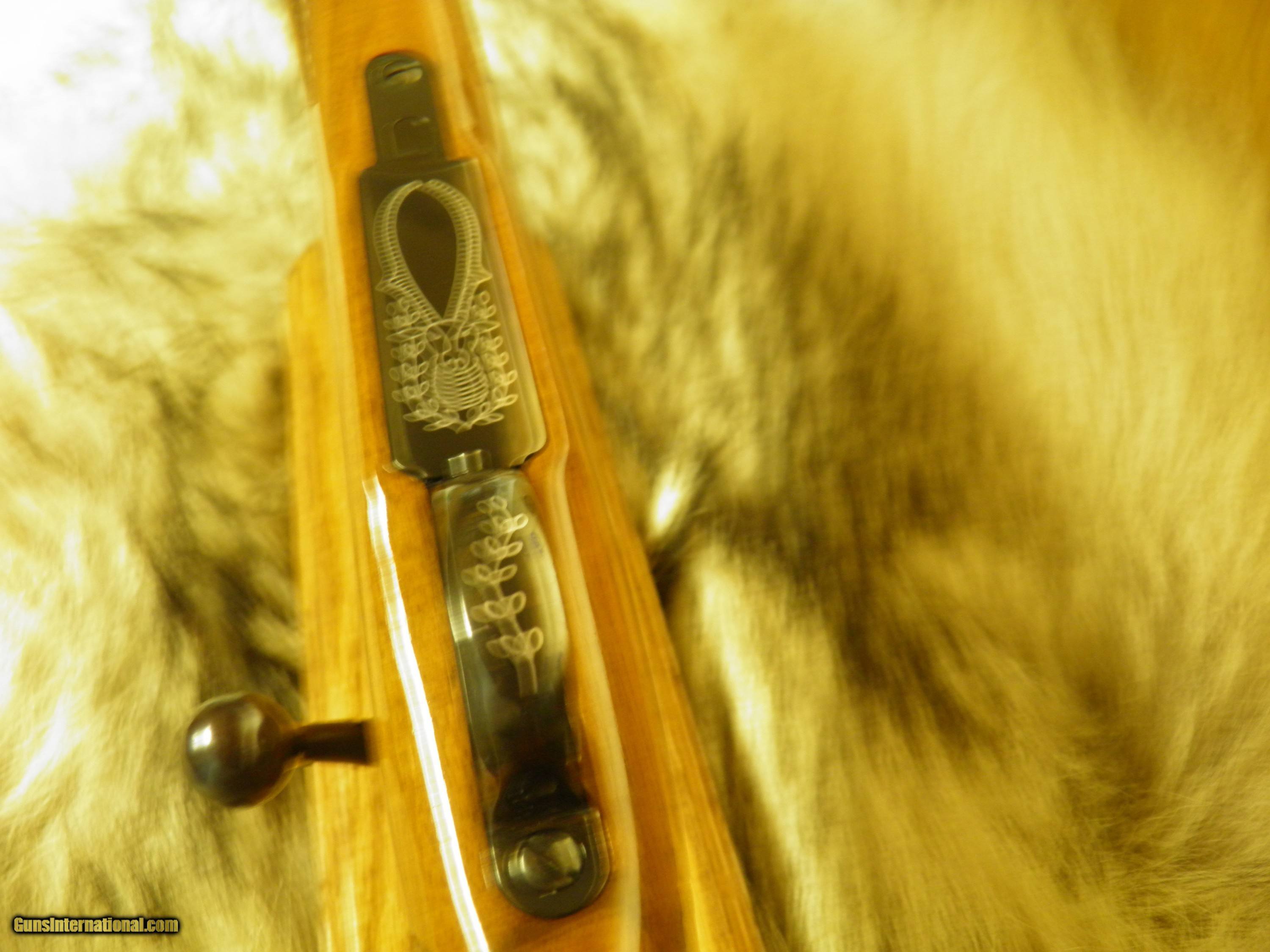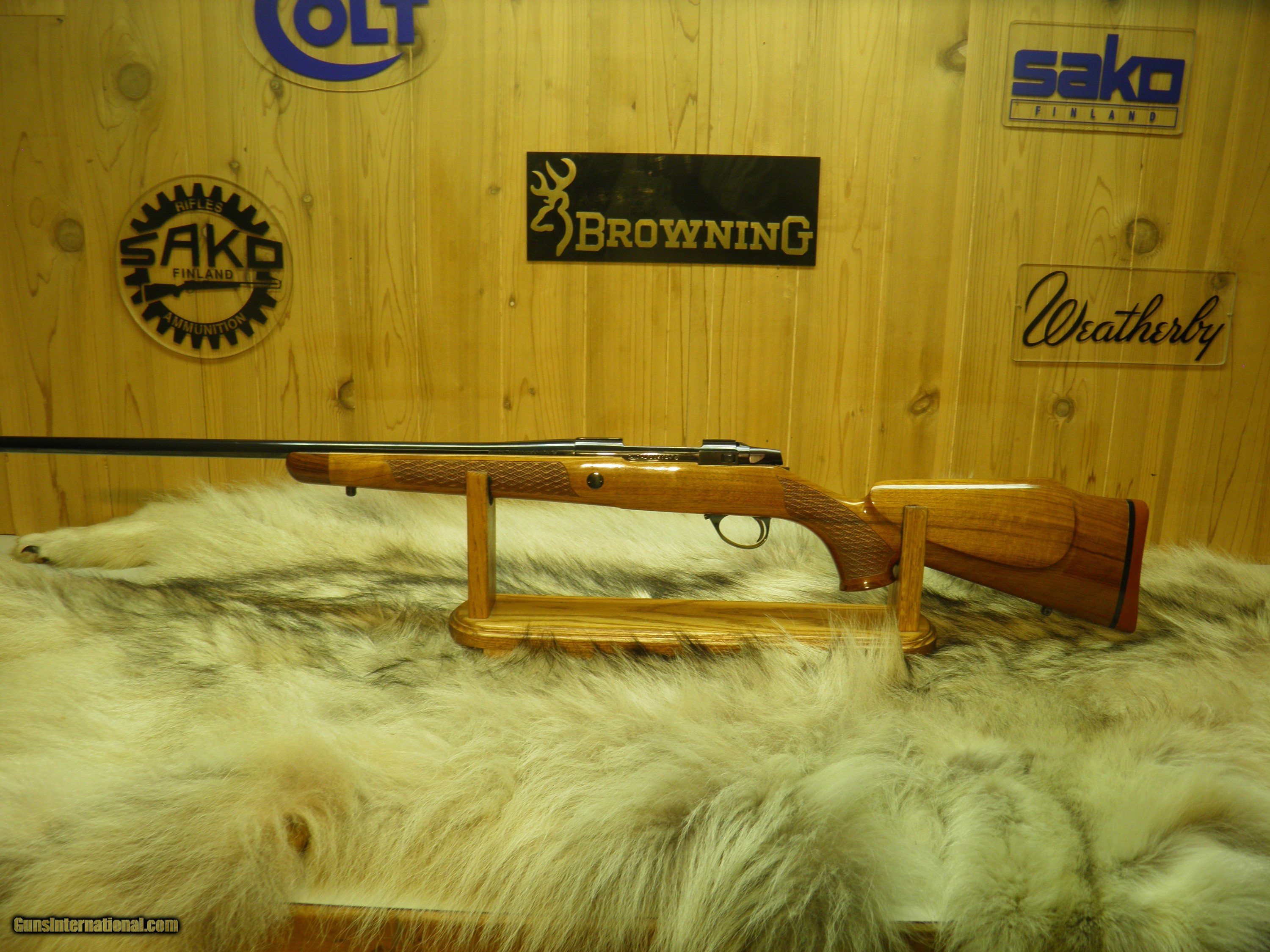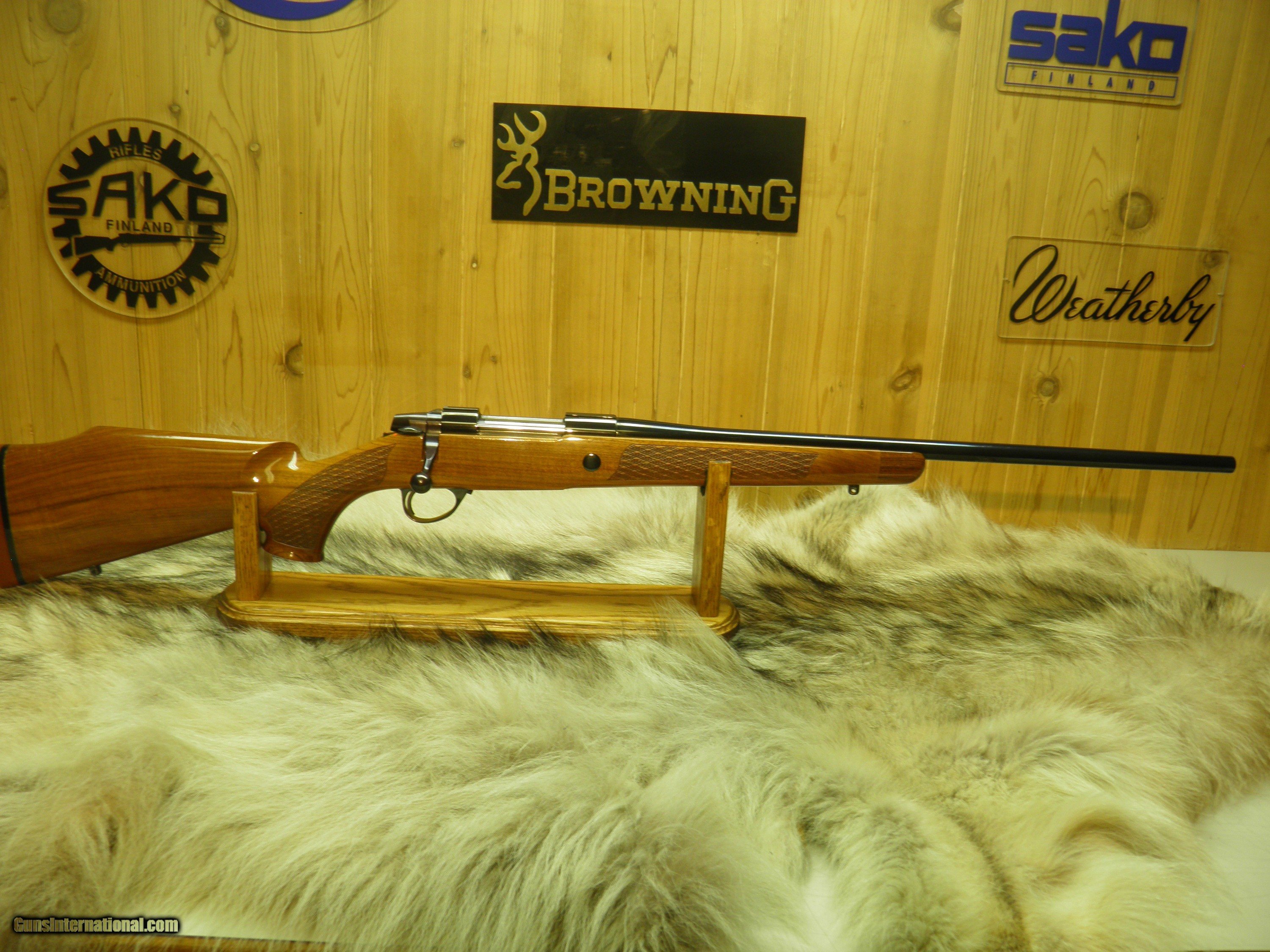Description: SAKO FORESTER MODEL AII DELUXE GRADE LIGHTWEIGHT MAF: 1988, BARREL LENGTH 221/2" WITH A 1 - 12" TWIST, OVERALL LENGTH 42", APPROX: WEIGHT 6 3/4 LBS, LENGTH OF PULL 13 3/4" ,MAGAZINE CAPACITY 5 ROUNDS, CLEAN AND CRISP FULLY ADJUSTABLE TRIGGER, WITH SLIDING THUMB SAFTEY, RECEIVER HAS INTEGRAL TAPPERED DOVETAIL RAILS FOR SCOPE RING MOUNTING, STEEL TRIGGER GUARD WITH HINDGED FLOOR PLATE, BOTH ARE ENGRAVED AND SILVER OVERLAID, MULTI- COLORED EUROPEAN WALNUT IN THE MONTE CARLO STYLE, WITH CHEEK-PIECE, PALM SWELL PISTOL GRIP, EXOTIC WOOD, FOREND TIP AND PISTOL GRIP CAP, WITH THE FORESTER TREE WOOD INLAY, BEAUTIFUL HAND-CUT SKIP-LINE DIAMOND CUT CHECKERING, ATTACHED SWIVEL STUDS, , WOOD FINISHED IN HIGH GLOSS, METAL SURFACES HAVE THE DELUXE HIGH LUSTER MIRROR POLIISH BLUEING. "CONDITION" BLUE 99.9%++, WOOD 98%++ A COUPLE SMALL HANDLING MARKS ON THE FOREARM, BORE AND CHAMBER ARE BRIGHT AND SHINNEY WITH SHARP PRONOUNCED RIFLING, BOLT FACE CLEAN AND CRISP, RIFLE WAS WELL CARED FOR, INCLUDES NEW PAIR OF LEUPOLD SCOPE RINGS $80.00 SAVINGS! SOLD |