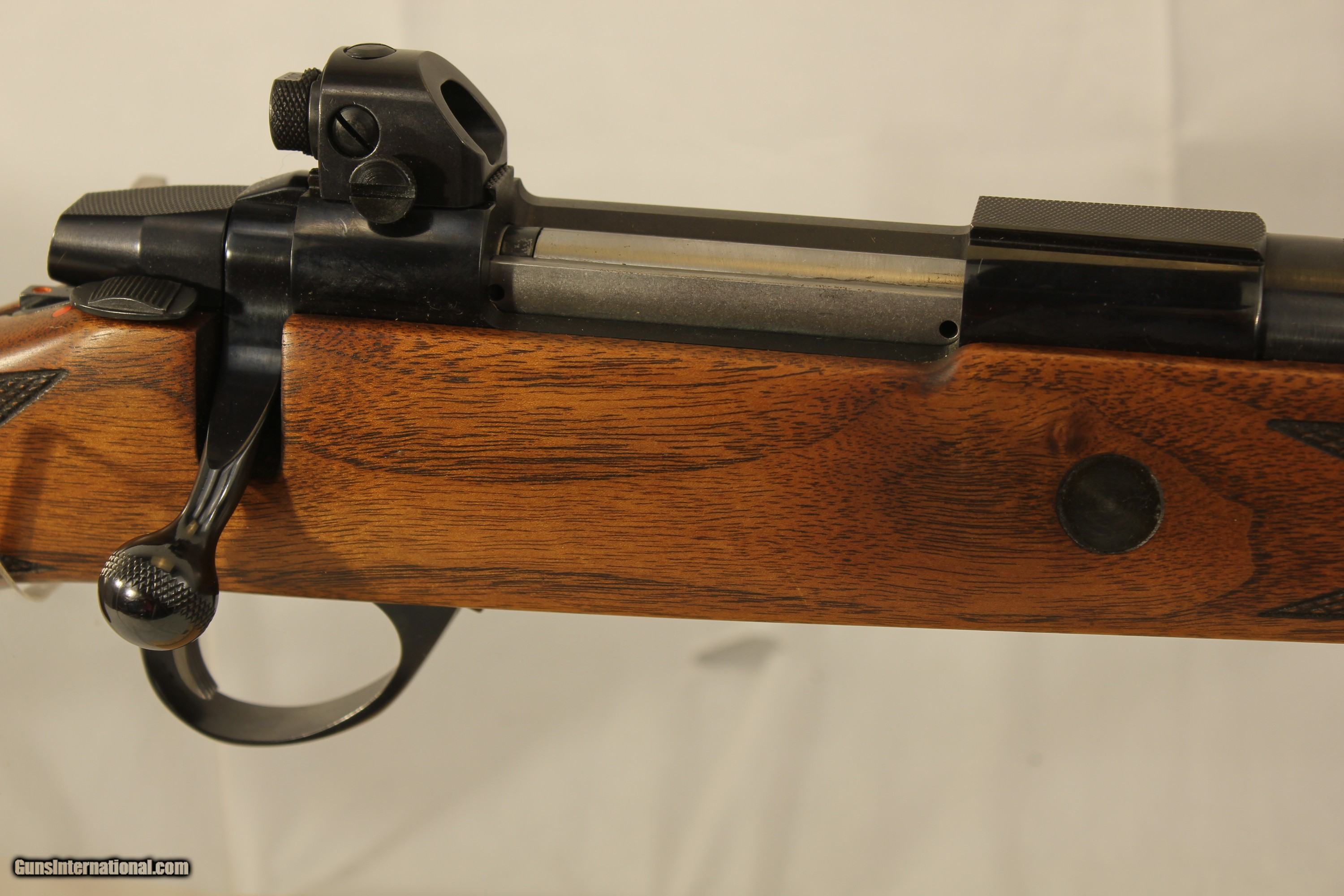 Description: This very nice clean Sako Model AII is in .308 Winchester caliber and is in excellent condition and has the absolute minimum of dings and scratched. It comes with a Sako peep sight mounted on the rail of the receiver. which is milled for Sako mounts. It has a hinged floor plate and a thumb safety for use with a scope. The barrel is 20 inches with a bright shiny bore with crisp rifling. The European Walnut stock has nice figure and the checkering is sharp. Shipping via Priority Mail $80.00 SOLD |