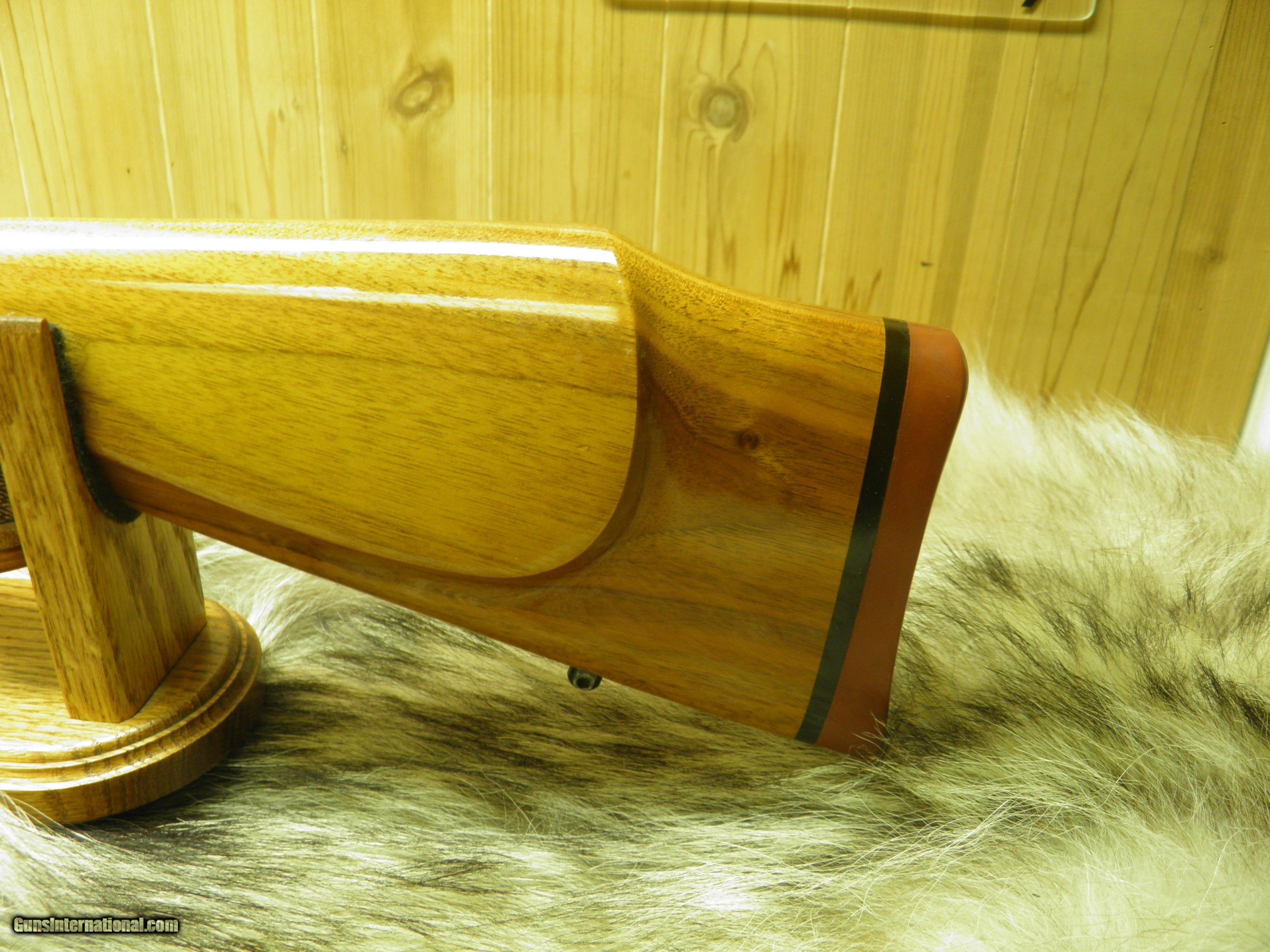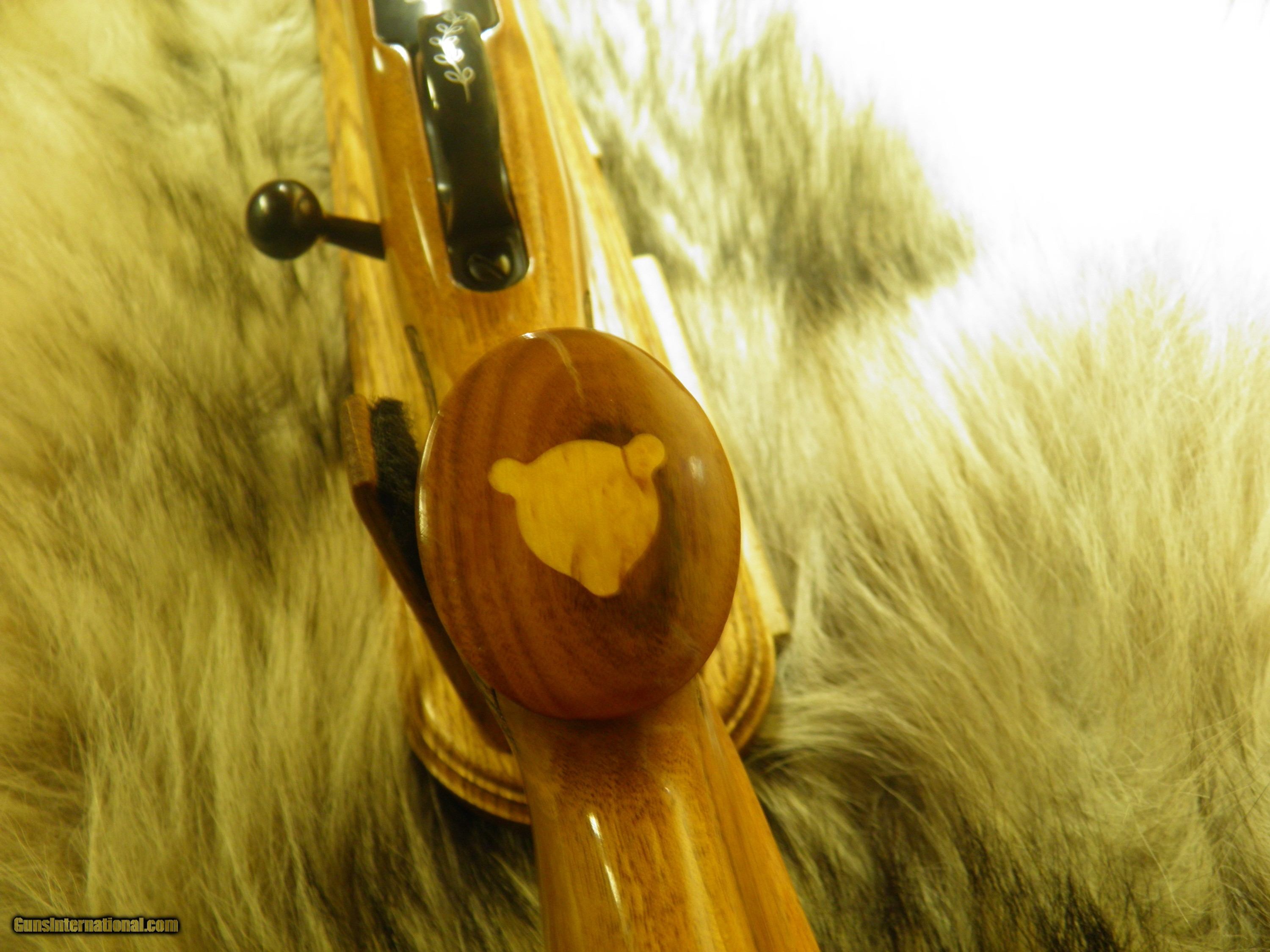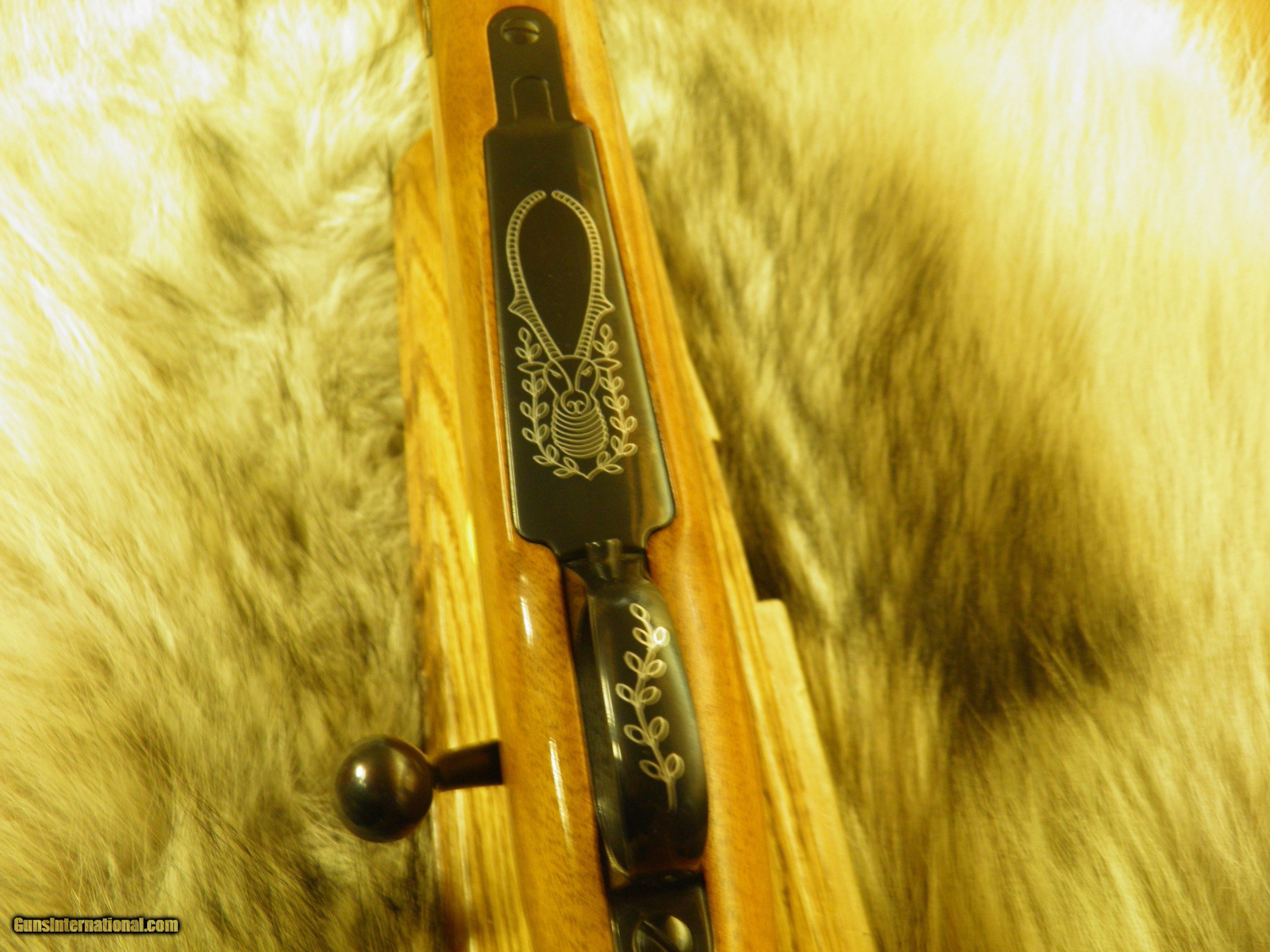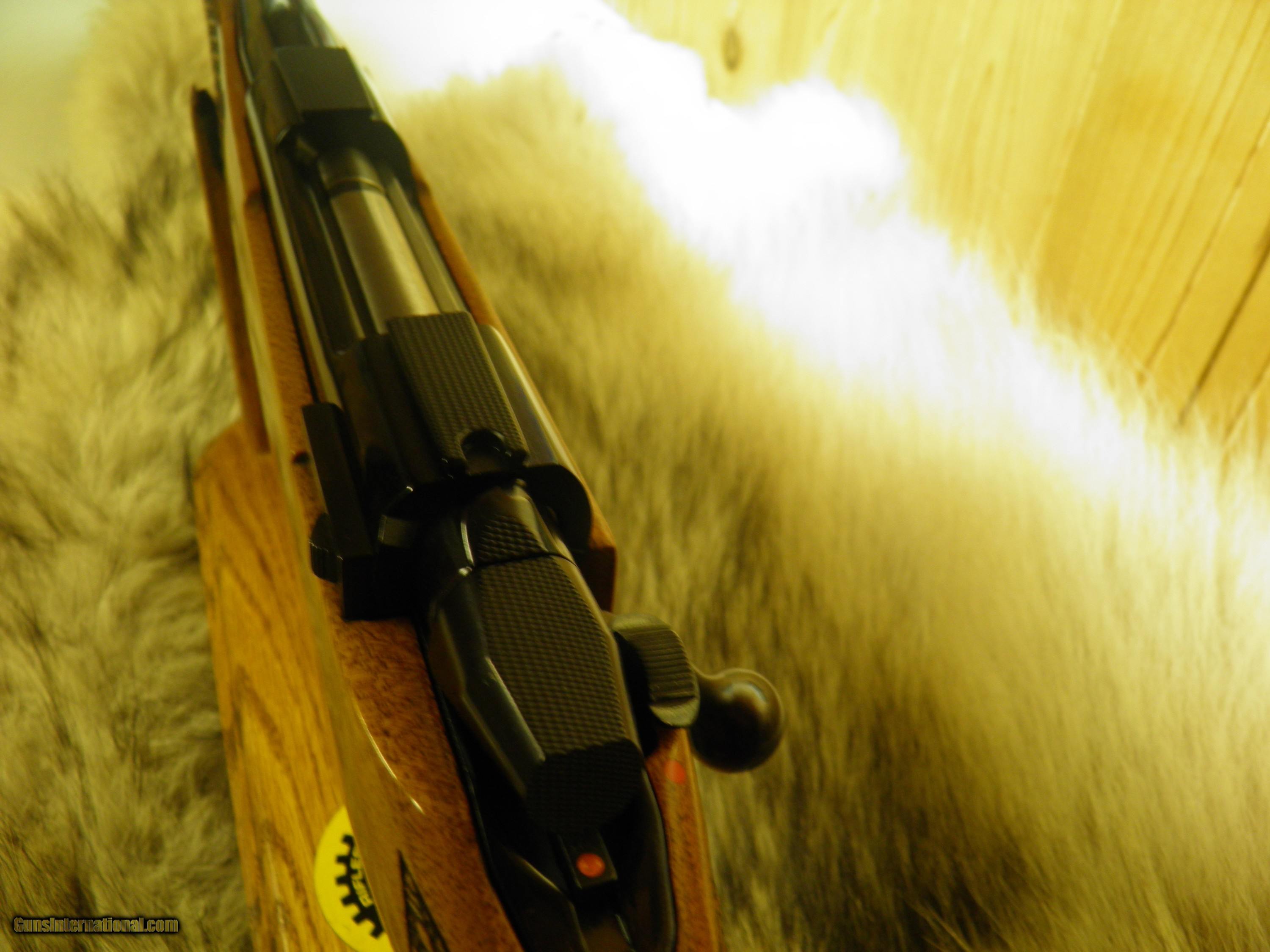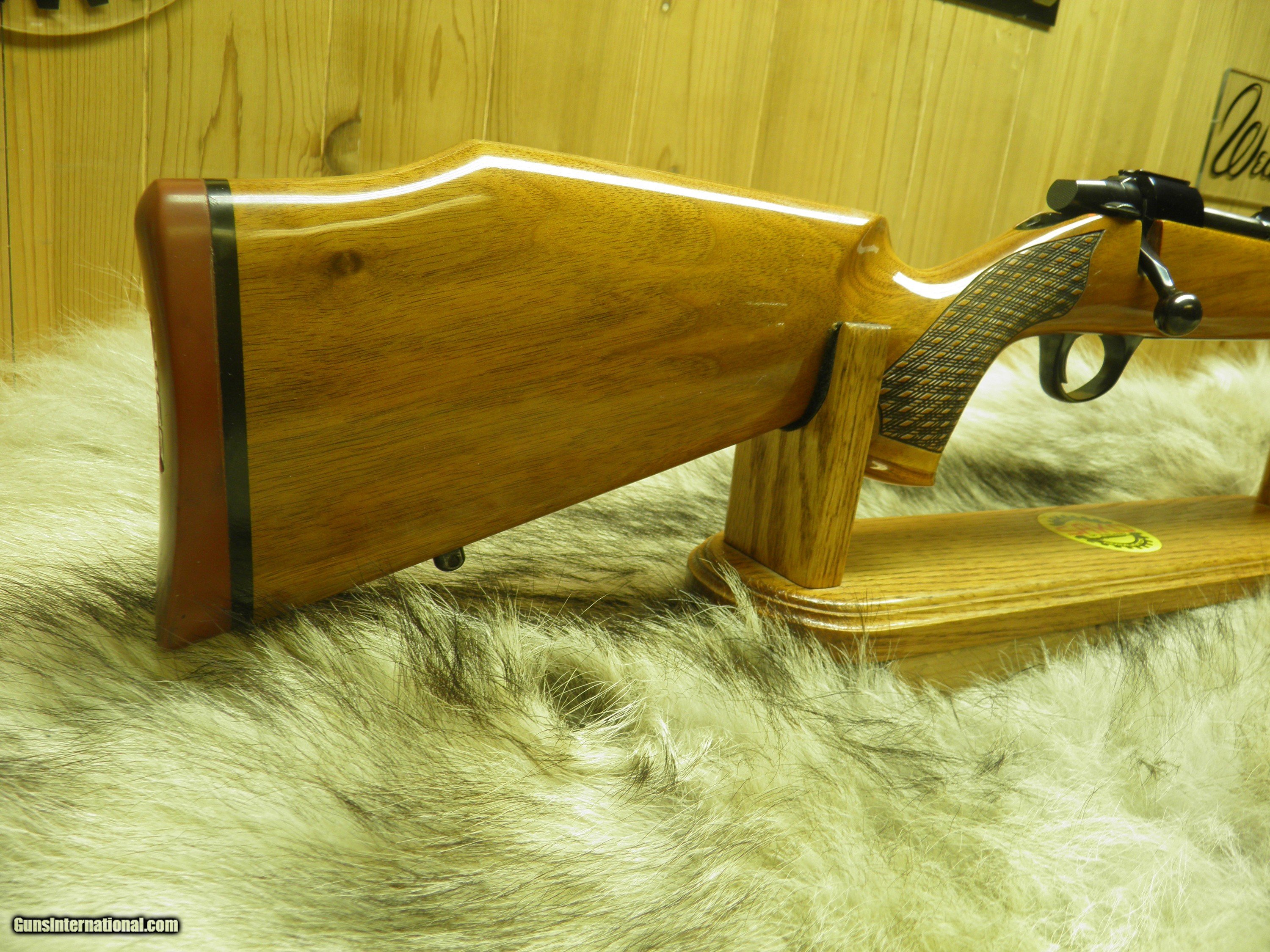 Description: SAKO MODEL AV FINNBEAR DELUXE CAL: 270, MANF:1985, BARREL LENGTH 22 1/2", WITH A 1 - 10" TWIST, LENGTH OF PULL 13 3/4" OVERALL LENGTH 43 1/2", APPROX: WEIGHT 7 1/2 LBS. MAGAZINE CAPACITY 4 ROUNDS, CLEAN AND CRISP ADJUSTABLE TRIGGER, WITH SLIDING THUMB SAFTEY, RECEIVER HAS INTEGRAL DOVE TAIL RAILS FOR SCOPE RING MOUNTING, NICE FIGURED EUROPEAN WALNUT FITTED WITH EXOTIC WOOD FOREND TIP AND GRIP CAP THAT HAS THE BEARS HEAD INLAY, MONTE-CARLO STYLE STOCK WITH PISTOL GRIP AND,SEMI-PALM SWELL, CHEECK-PIECE, BEAUTIFUL HAND-CUT SKIP-LINE DIAMOND CUT CHECKERING, FINISHED IN A DURABLE HIGH GLOSS, ATTCHED SWIVEL STUDS, AND A SAKO FACTORY RECOIL PAD. BOLT BODY AND GUIDE ARE HIGHLY POLISHED FOR SMOOTH AND EASE OPERATION, STEEL TRIGGER GUARD WITH HINDGED FLOORPLATE THAT ARE HAND ENGRAVED AND SILVER OVERLAID,ALL METAL SURFACES ARE HIGHLY POLISHED AND EXPERTLY BLUED, TO PROVIDE THE DEEPEST MOST BRILLIANTLY LUSTROUS MIRROR BLUE FINISH. "CONDITION" WOOD 99.%++ BLUE 99.9%+++ COUPLE VERY TINY HANDLING MARKS ON WOOD, BORE IS CLEAN BRIGHT AND SHINEY, WITH SHARP PRONOUNCED RIFLING, RIFLE APPEARS , THAT IT WAS WELL TAKEN CARE OF. COLLECTOR QUALITY, OR A VERY FINE HUNTING RIFLE , YOU MAKE THE CHOICE? SOLD |