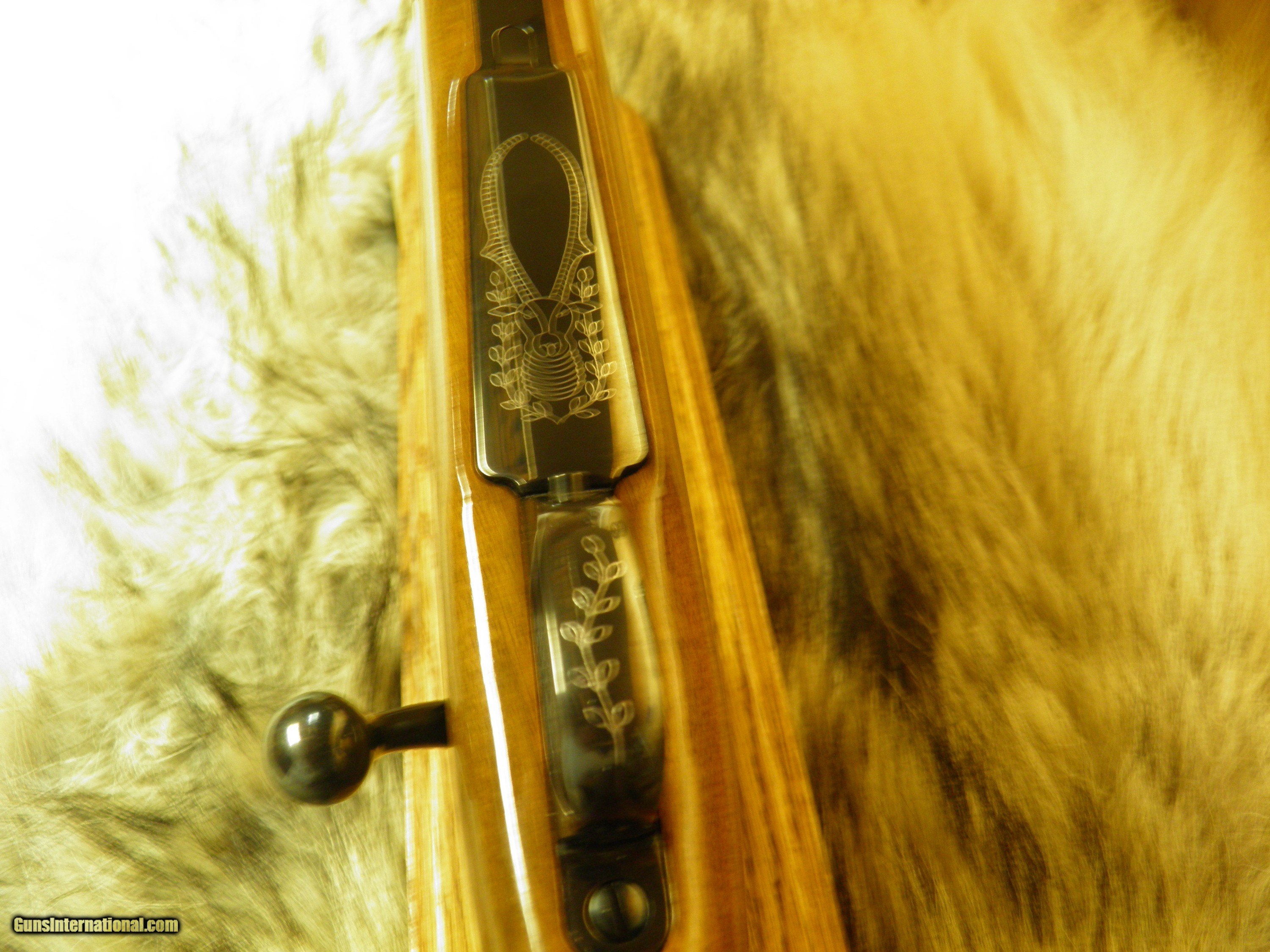 Description: Description: SAKO AV FINNBEAR DELUXE GRADE, IN 300 WIN. MAG., MANF: 1989, BARREL LENGTH 24" WITH A - 10" TWIST, OVERALL LENGTH 45", APPROXMENT WEIGHT 8 LBS, LENGTH OF PULL IS 13 3/4",MAGAZINE CAPACITY 4 ROUNDS, CLEAN AND CRISP ADJUSTABLE TRIGGER WITH SLIDING THUMB SAFTEY, INTEGRAL DOVETAIL RAILS FOR SCOPE RING MOUNTING, BOLT AND BOLT GUIDE ARE HIGHLY POLISHED, FOR SMOOTH AND EASE OPERATION OF LOADING AND EXTRACTION, STEEL TRIGGER GUARD WITH HINDGED FLOORPLATE ,THAT ARE HAND ENGRAVED AND SILVER OVER-LAID, BEAUTIFUL BLONDE EUROPEAN WALNUT WITH MONTE- CARLO, CHEEK-PIECE, PALM- SWELL PISTOL GRIP, ROSEWOOD FOREND TIP, AND GRIP CAP WITH BEARS HEAD INLAY, BEAUTIFUL HAND CUT, SKIP LINE DIAMOND CHECKERING, ATTACHED SWIVEL STUDS, STOCK FINISHED IN A HIGH GLOSS POLYURETHANE, METAL SURFACES ARE POLISHED TO A HIGH GLOSS AND EXPERTLY BLUED TO PROVIDE THE DEEPEST MOST BRILLIANTY LUSTROUS MIRROR BLUE FINISH. "CONDITION" 100% NEW AND UNFIRED IN FACTORY BOX, WITH SWIVELS AND PAPER WORK. SOLD |