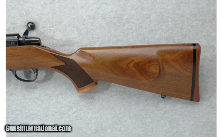 Description: SOLD Caliber Info: .270 Win. Chambers: Hinged floorplate. Metal Condition: Excellent Wood Condition: Excellent Bore Condition: Excellent Barrels: 23 inches. Stock: Checkered walnut pistol grip with a raised cheekpiece and maple cap. Stock Dimensions: LOP 13 1/2 inches. Fore End: Checkered walnut. Butt Pad: Sako rubber pad. Weight: 8 lbs. 3 oz. Sights: Integral scope mount base. No iron sights. Item Location: Richfield, WI |