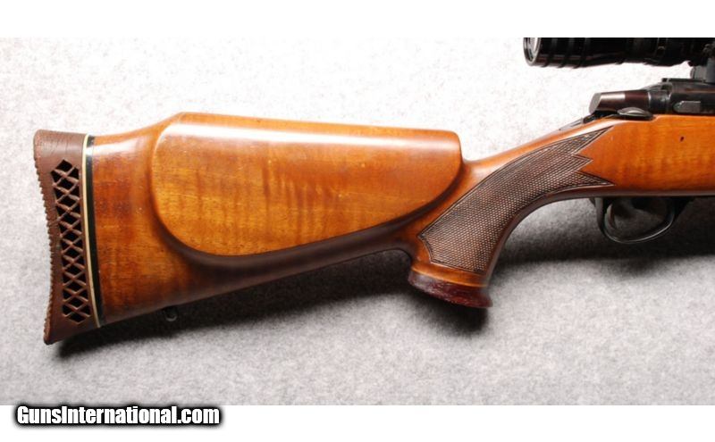 Description: SOLD Caliber Info: 25-06 REM Metal Condition: Handling marks small scratches Wood Condition: Handling marks scratches small indentations Bore Condition: Very good. Barrels: 22 Inches with muzzle brake Triggers: Factory original, Stock: European blond walnut left handed Stock Dimensions: LOP - 13 1/2 Fore End: Rosewood cap and tip. Butt Pad: After market brown rubber pad starting to flake Weight: 9 Lbs. Sights: Tasco 4x12 scope Item Location: Lacey, WA |