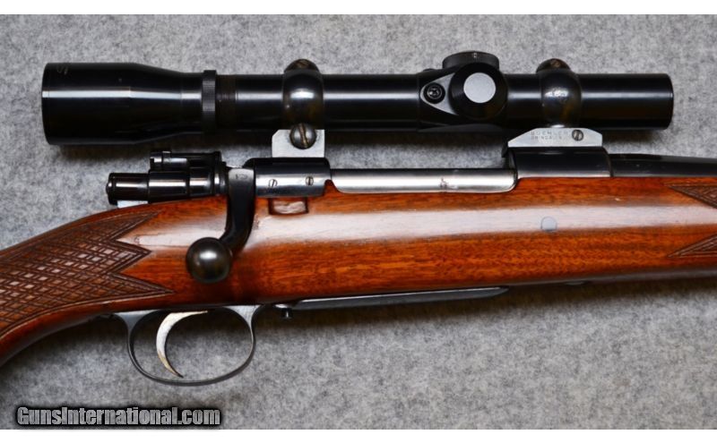 Description: • Firearms are subject to pending sales. • Replies to emails may take 24-72 hours to respond to (excluding weekends). • Although we strive for accuracy, we are not responsible for pictorial, editorial or typographical errors. The pictures provided are the actual pictures of the gun that is for sale, not a stock photo! PUT THE GUN ON YOUR CABELA'S CLUB VISA AND EARN POINTS TOWARDS YOUR NEXT PURCHASE! DON'T FORGET WE DO HAVE A LAYAWAY PROGRAM!Made by and for John J. Sharkey 6-9-61 engraved of floor plate and J. Sharkey 6-9-61 etched on bolt release SOLD Manufacturer: 1961 Caliber Info: .375 Holland & Holland Magnum Chambers: Fixed hinged floor plate magazine Metal Condition: Very good with light to medium handling and wear marks Wood Condition: Very good with light to medium handling marks Bore Condition: Very good bright shinny rifling with light wear marks Barrels: 21 inch Triggers: Single action Stock: One piece gloss deluxe Monte Carlo Walnut with black capped skip checkered pistol grip and sling studs Stock Dimensions: LOP - 13 7/8 inch Fore End: Gloss deluxe walnut Mannlicher with skip checkered hand hold Butt Pad: Pachmayr dark brown ventilated butt pad Weight: 8 pound 6 ounce Sights: With disabled sights and mounted Bushnell Scope Chief 3X scope Extras: With no box and no extras Item Location: Hammond, IN |