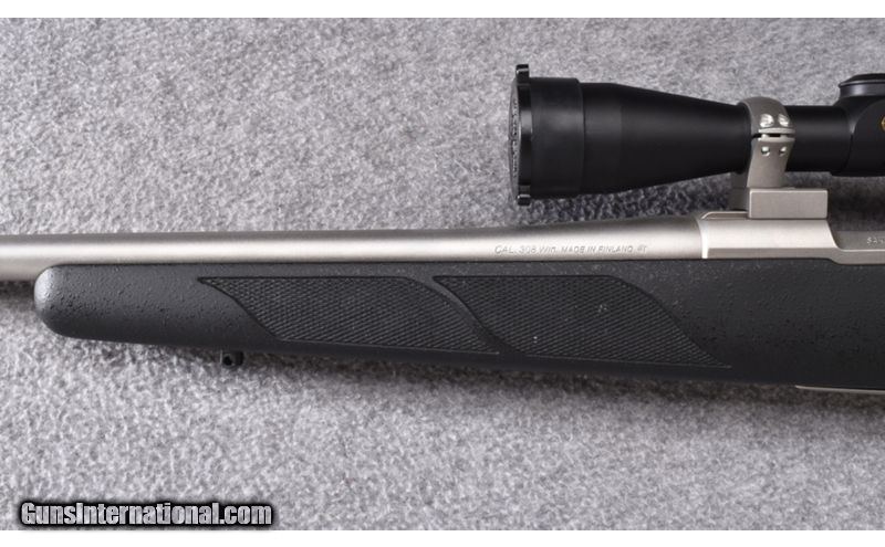 Description: This Sako III is in excellent overall condition showing little use or wear. There are a couple scuffs on top of barrel where scope cap has rubbed. Bottom of butt pad has tape or some shiny material over top and bottom to help protect it. Barrel is free floated. Inside of action is extremely clean and appears unfired. .308 Winchester SOLD Metal Condition: Excellent Bore Condition: Excellent Barrels: 22" Matte Stainless Triggers: Factory Stock Dimensions: 13 3/8" LOP Fore End: Textured & Checkered Black Synthetic Stock with Right Hand Palm Swell & Pistol Grip Cap Butt Pad: Textured Black Decelerator Weight: 8.75 Lb. Sights: Leupold Vari-X III 2.5-8 Scope Item Location: Wheeling |