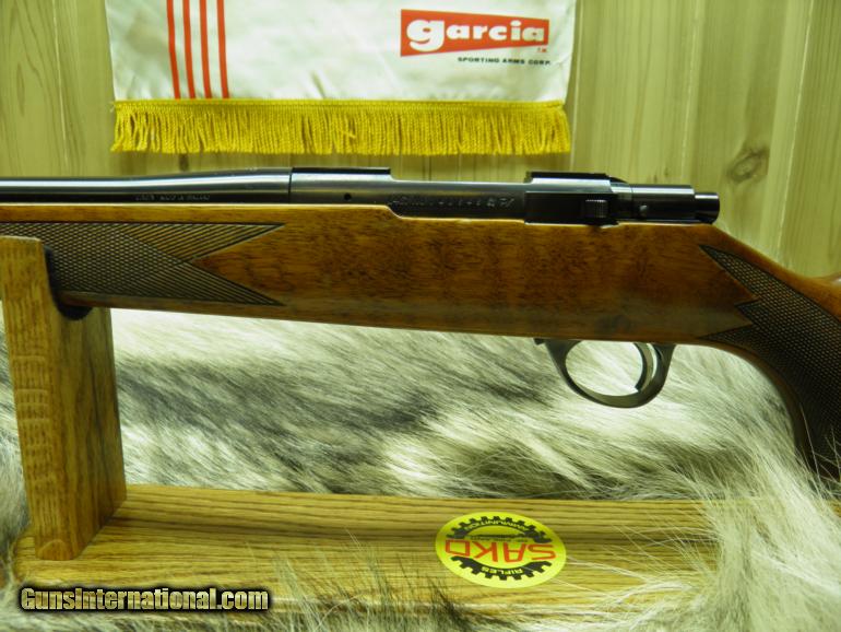 Description: .SAKO MODEL L461 VIXE SPORTER CAL. 223 MFG: 1974 BARREL LENGTH 23 1/2" WITH A 1-13" TWIST,APPROX. WEIGHT 6 1/4 LBS, OVERALL LENGTH IS 42", LENGTH OF PULL 13 3/4", MAGAZINE CAPACITY CAPACITY 5 ROUNDS, ADJUSTABLE TRIGGER WITH THUMB SAFTEY,RECEIVER HAS TAPERED DOVETAIL RAILS FOR SCOPE RING MOUNTING, STEEL TRIGGER GUARD WITH HINGED FLOORPLATE FOR QUICK UNLOADING. "CONDITION" METAL 99.5% WOOD 99%+ COUPLE SMALL HANDLING MARKS, BORE IS BRIGHT CLEAN AND SHINNEY WITH SHARP PRONOUNCED RIFLING, THAT LEADS ME TO BELIEVE, THAT ITS HAS ONLY SEEN A COUPLE OF BOXES OF SHELLS TRU IT, WELL MAINTAINED RIFLE! SOLD |